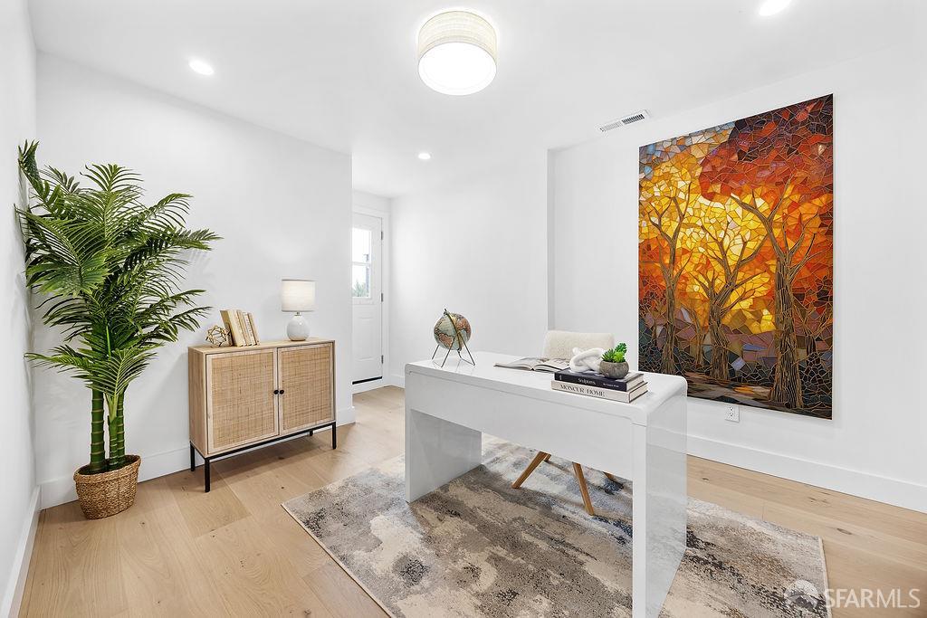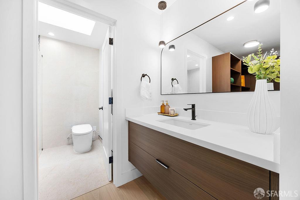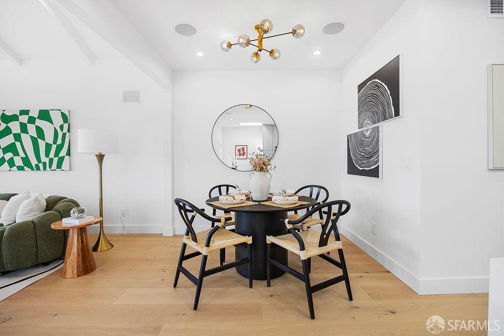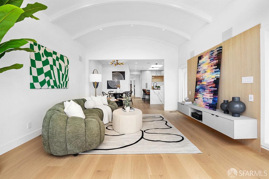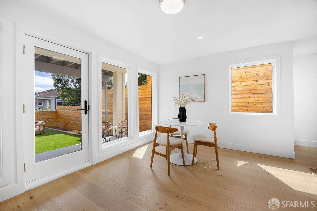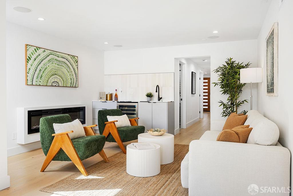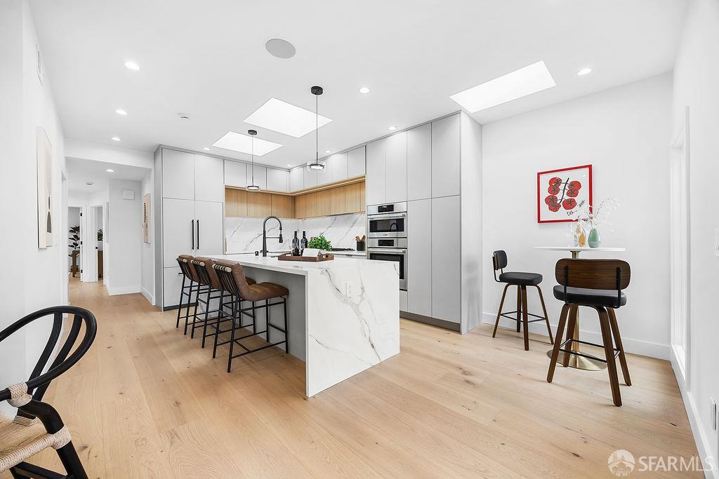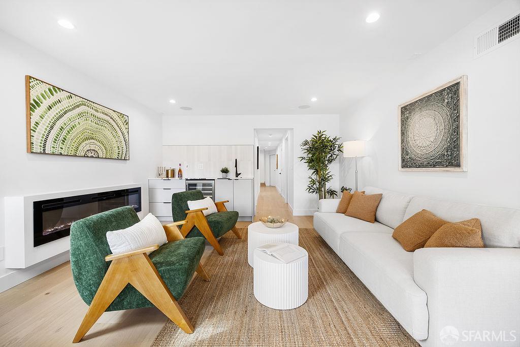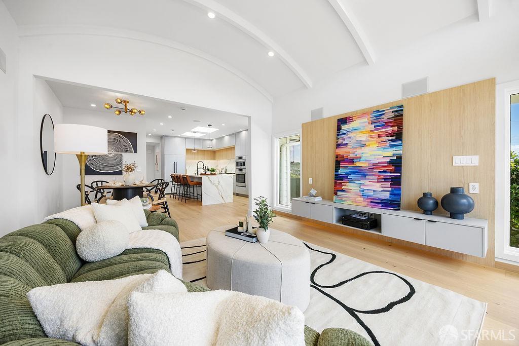 Newly reimagined with a full-scale renovation, this exceptional 4-bedroom, 4-bath home offers a seamless blend of modern design, functional living, and breathtaking panoramic city views. Thoughtfully redesigned with an open, light-filled layout, the home showcases wide-plank oak flooring, clean architectural lines, and curated high-end finishes throughout. The main living level is anchored by an expansive living and dining area with dramatic floor-to-ceiling folding glass doors that open to sweeping views of the city hills and skyline, creating a true indoor-outdoor experience. The chef’s kitchen is a true centerpiece, featuring high-end appliances including a Bosch gas cooktop, double ovens, dishwasher, and built-in refrigerator. A striking waterfall island, quartz countertops with full-height backsplash, and a two-tier cabinetry system provide both elevated design and abundant storage, ideal for everyday living and entertaining alike. This level includes well-appointed bedrooms, highlighted by a spacious primary suite designed as a private retreat. Enjoy a walk-in closet and a spa-inspired bathroom featuring a modern wet-room design complete with a soaking tub and oversized shower. Additional bedrooms offer flexibility for family, guests, or a home office. The lower level provides exceptional versatility with a large family or recreation room, perfect for media, entertaining, or extended living. With direct access to the backyard, this space creates a seamless indoor-outdoor flow. An additional bedroom and full bath, along with a dedicated laundry area and interior garage access, make this level ideal for guests or multi-generational living. The newly landscaped backyard features clean-lined fencing, low-maintenance turf, and a covered patio, perfect for relaxing, entertaining, or enjoying the home’s elevated setting and surrounding views. A rare opportunity to own a fully renovated home that combines modern luxury, flexible living space, and iconic San Francisco views.