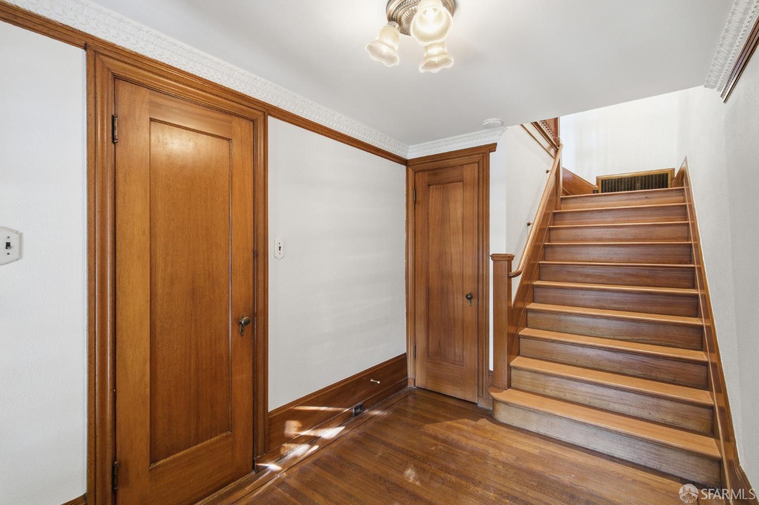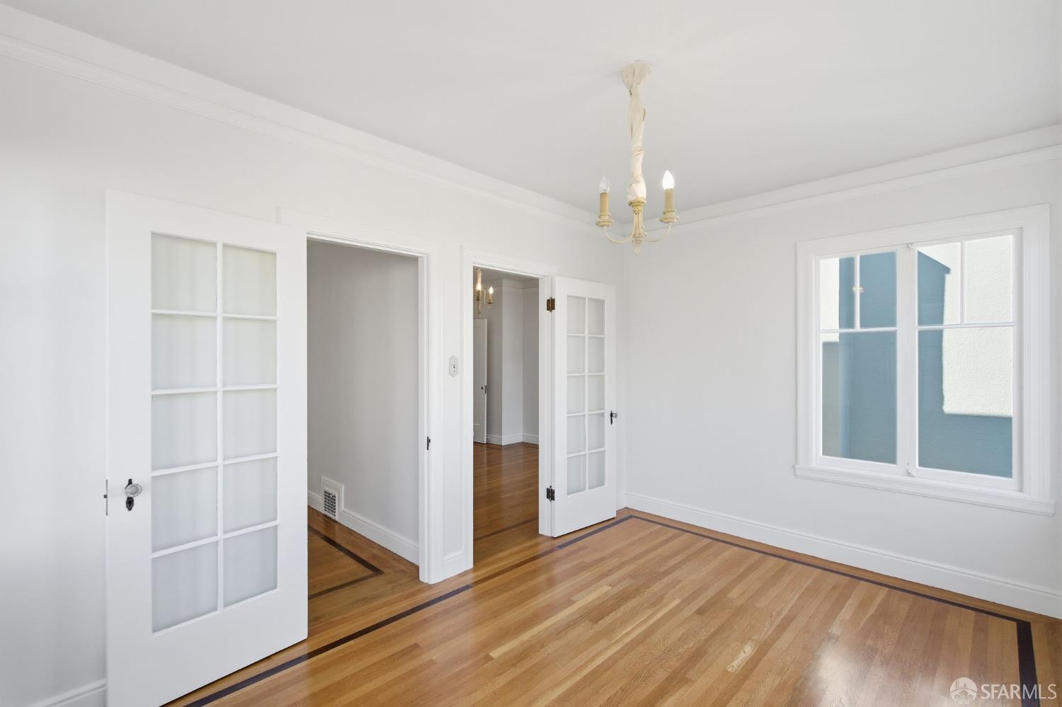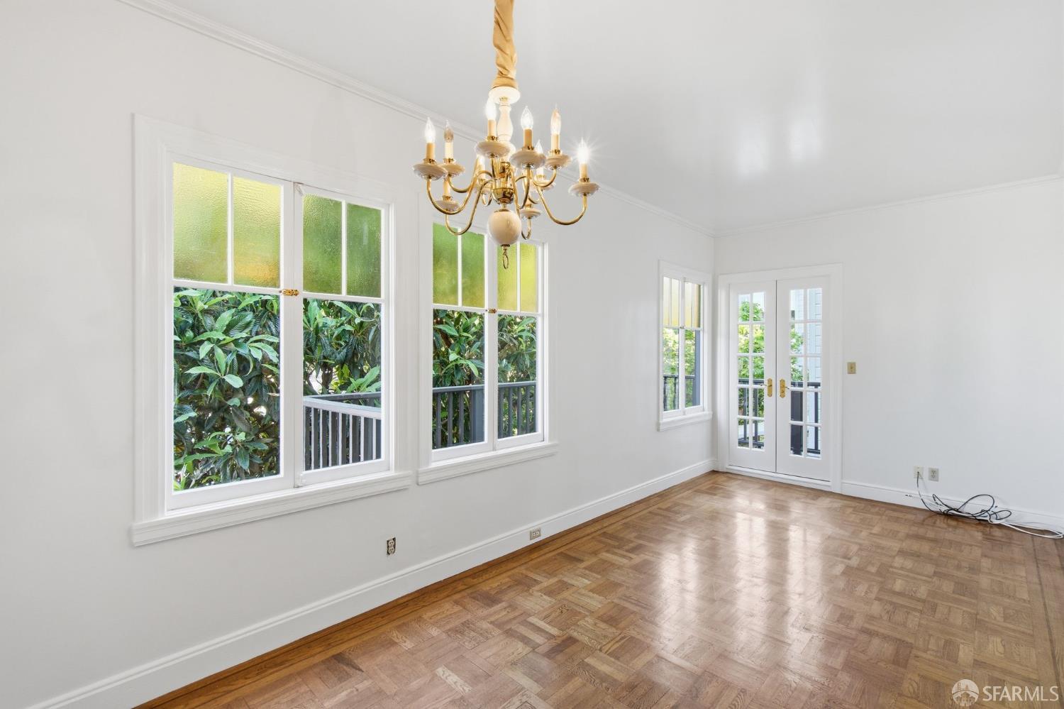 Incredible opportunity to transform this classic 1920s Mediterranean residence into your dream home. Ideally located across from the Presidio, this gracious three-level home offers timeless elegance, generous proportions, and exceptional potential. The property also provides exceptional proximity to the Presidio National Park’s renowned hiking trails, The Palace of Fine Arts, and sweeping views of the Golden Gate Bridge and San Francisco Bay. The main level features a grand formal entry, leading to beautifully scaled living, dining, and breakfast rooms. Both dining spaces provide direct access to a walk-out deck, creating seamless indoor-outdoor flow-perfect for everyday living and entertaining. The formal dining room is ideal for memorable gatherings and special occasions. The spacious kitchen offers ample room for chefs of all levels. A stunning grand staircase leads to the upper level, adding to the home’s classic architectural appeal. Upstairs, the top floor features three large, light-filled bedrooms. A charming pop-out bonus room provides a cozy and intimate retreat, ideal for relaxing or reading. The oversized primary suite includes an en-suite bathroom and three closets-one of which is a walk-in with a dedicated seating area, perfect for a vanity or dressing space. This level also includes a full second bathroom and three additional hall closets for ample storage. The lower level presents a versatile in-law studio apartment with direct access to the garden, offering flexibility for guests, extended family, or rental income. An oversized garage with high ceilings accommodates one or more vehicles and provides abundant storage space. This is a trust sale and is being sold AS-IS.