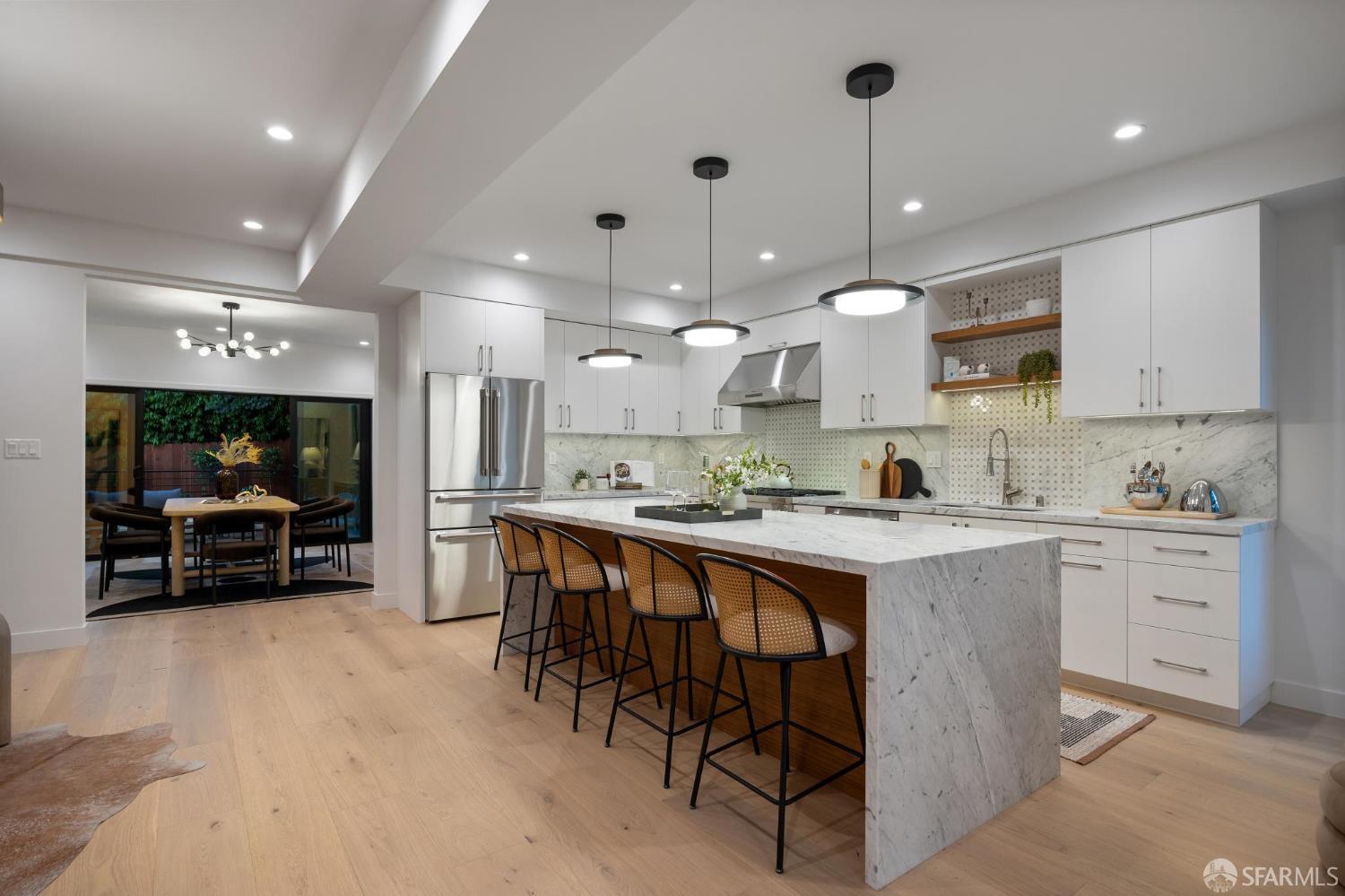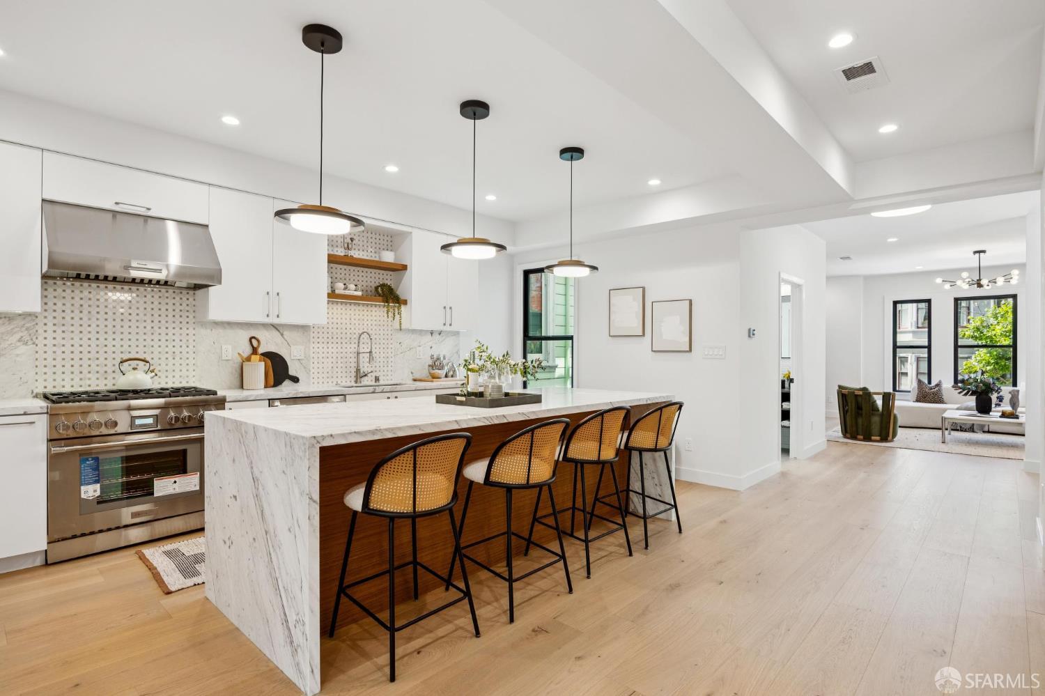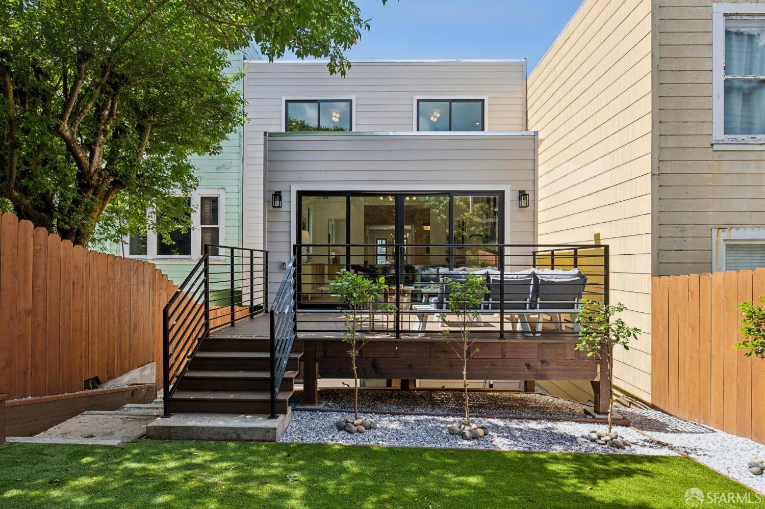Recently remodeled and expanded 4 bedroom, 3.5 bath single-family residence in the highly desirable Lone Mountain neighborhood. Thoughtfully redesigned with impressive scale and refined finishes, this exceptional home offers both elegance and comfort across a well-conceived floor plan. The main level showcases an expansive living area with high ceilings, formal living and dining rooms, and a stunning open kitchen centered around an oversized island with natural Statuario marble waterfall counters. Designed for both everyday living and entertaining, the kitchen also features custom cabinetry, open shelving, under-cabinet lighting, a pantry closet, a casual sitting area, and premium Thermador appliances. Two large fireplaces enhance the warmth and character of the home. Large sliding doors off the dining room open to a beautiful deck and yard, creating seamless indoor-outdoor living. The upper level is illuminated by a bright skylight and offers the coveted layout of three bedrooms and two baths on one level, along with a convenient laundry closet. The spacious primary suite includes a walk-in closet, dual vanity, soaking tub, and separate shower with rain shower head. The lower level features an additional generous ensuite bedroom or flexible living space with a large walk-in closet, ideal for guests, extended family, office, or media use. Newer systems, windows, and roof complete this turnkey offering. Ideally situated near the University of San Francisco, Rossi Playground, Golden Gate Park, the de Young Museum, California Academy of Sciences, Conservatory of Flowers, and the vibrant Clement Street corridor with its popular dining, shopping, and neighborhood amenities, this is a rare opportunity to own a beautifully upgraded home in one of San Francisco’s most established residential enclaves.