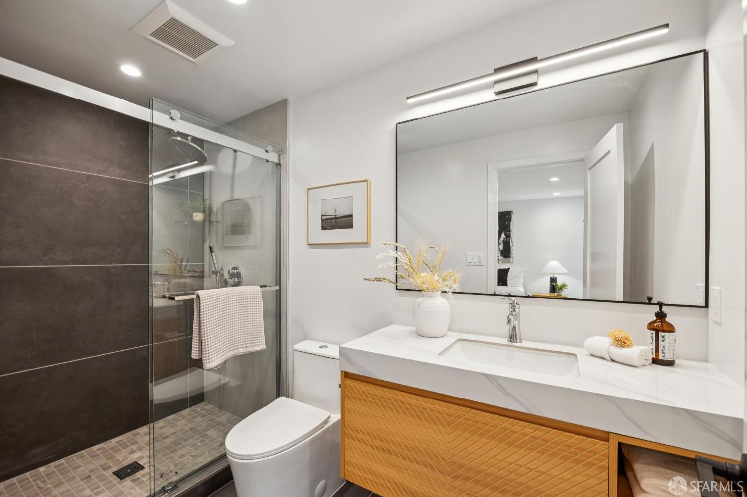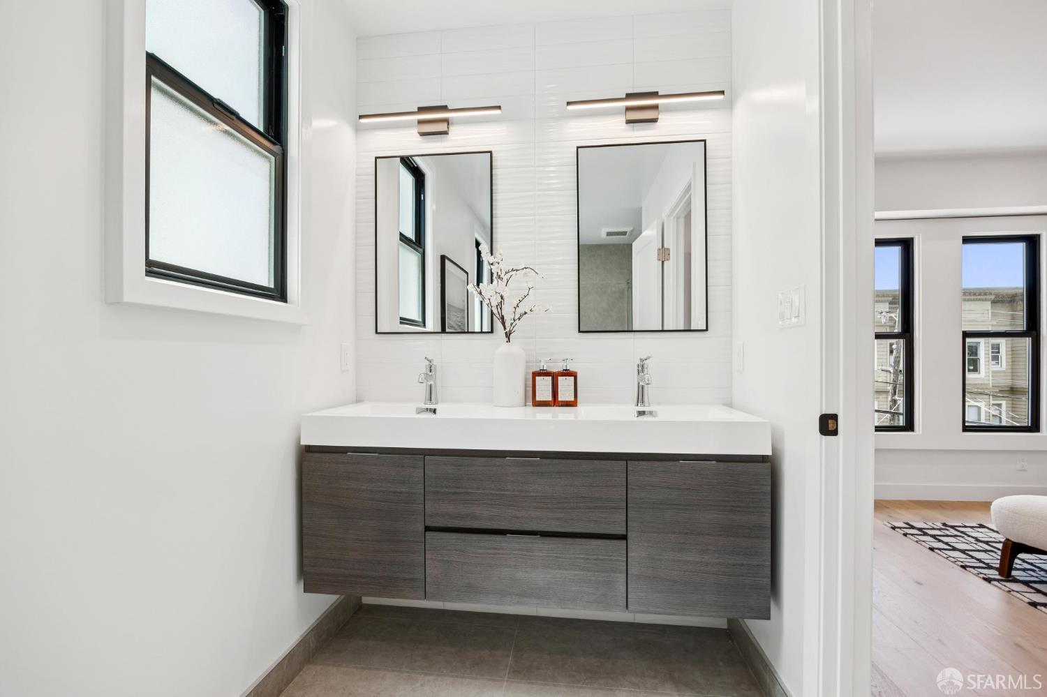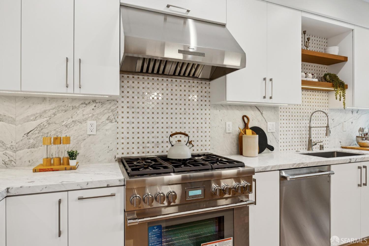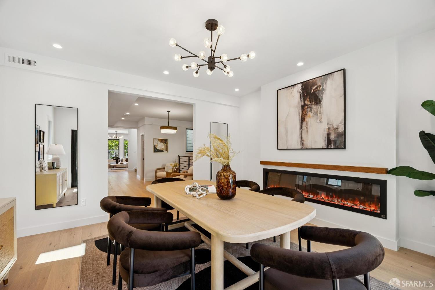 Recently remodeled and expanded 4 bedroom, 3.5 bath single-family residence in the highly desirable Lone Mountain neighborhood. Thoughtfully redesigned with impressive scale and refined finishes, this exceptional home offers both elegance and comfort across a well-conceived floor plan. The main level showcases an expansive living area with high ceilings, formal living and dining rooms, and a stunning open kitchen centered around an oversized island with natural Statuario marble waterfall counters. Designed for both everyday living and entertaining, the kitchen also features custom cabinetry, open shelving, under-cabinet lighting, a pantry closet, a casual sitting area, and premium Thermador appliances. Two large fireplaces enhance the warmth and character of the home. Large sliding doors off the dining room open to a beautiful deck and yard, creating seamless indoor-outdoor living. The upper level is illuminated by a bright skylight and offers the coveted layout of three bedrooms and two baths on one level, along with a convenient laundry closet. The spacious primary suite includes a walk-in closet, dual vanity, soaking tub, and separate shower with rain shower head. The lower level features an additional generous ensuite bedroom or flexible living space with a large walk-in closet, ideal for guests, extended family, office, or media use. Newer systems, windows, and roof complete this turnkey offering. Ideally situated near the University of San Francisco, Rossi Playground, Golden Gate Park, the de Young Museum, California Academy of Sciences, Conservatory of Flowers, and the vibrant Clement Street corridor with its popular dining, shopping, and neighborhood amenities, this is a rare opportunity to own a beautifully upgraded home in one of San Francisco’s most established residential enclaves.