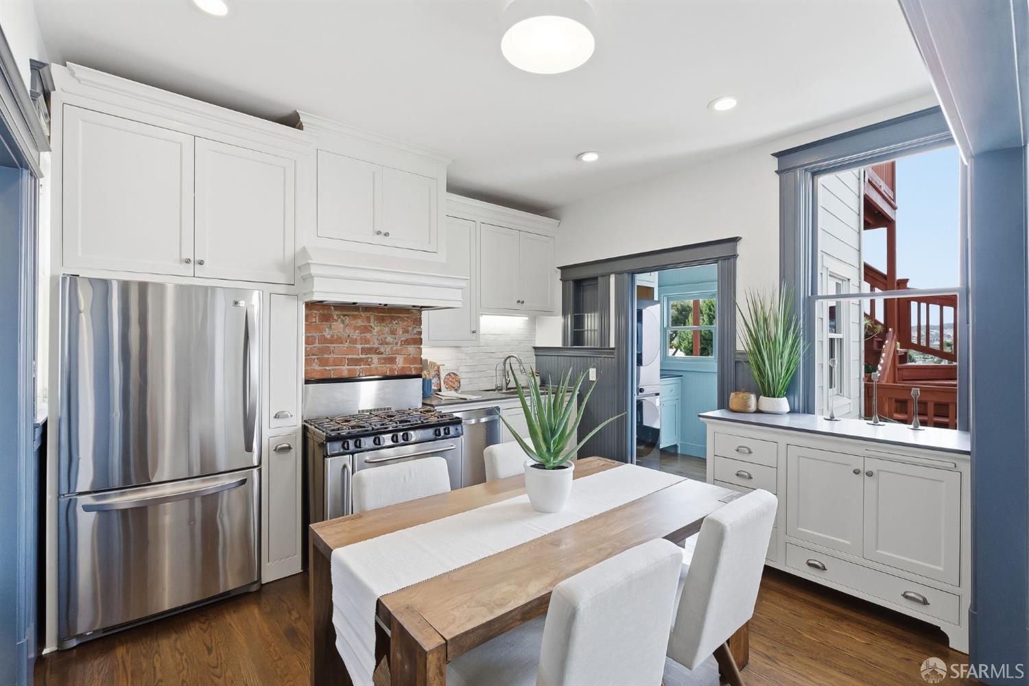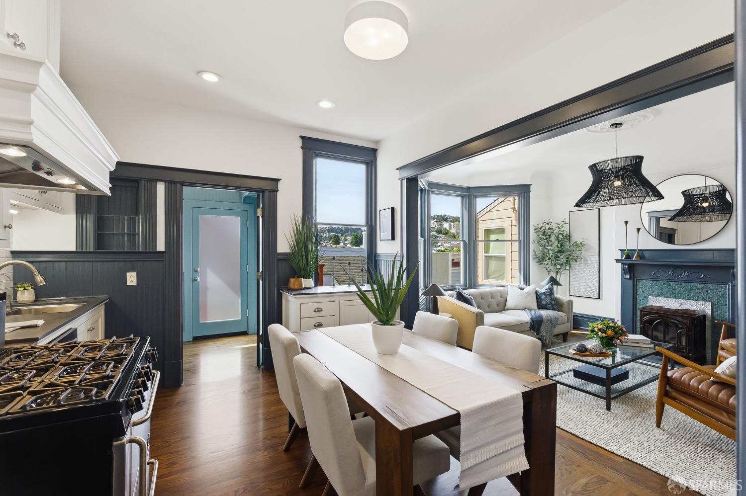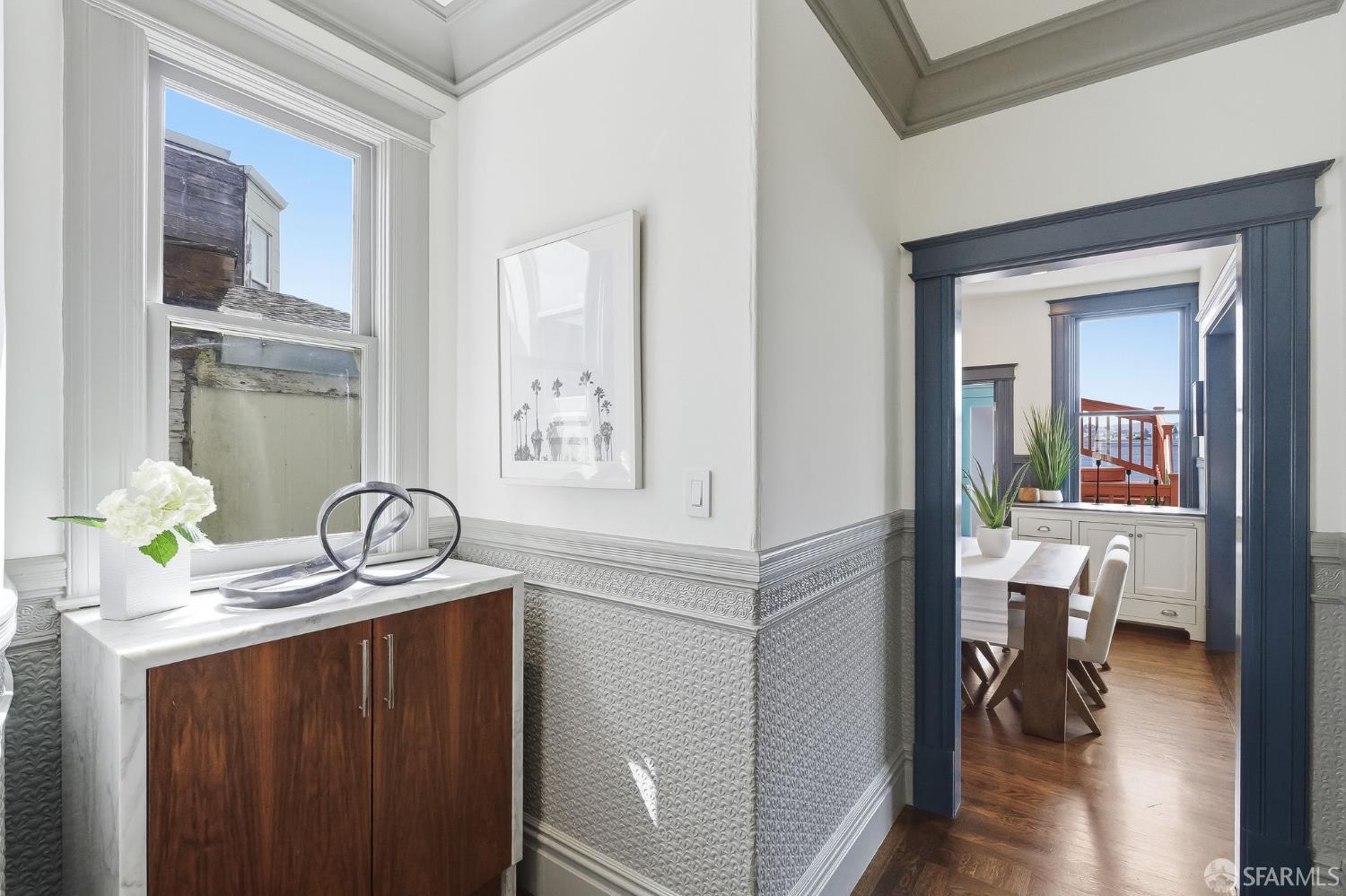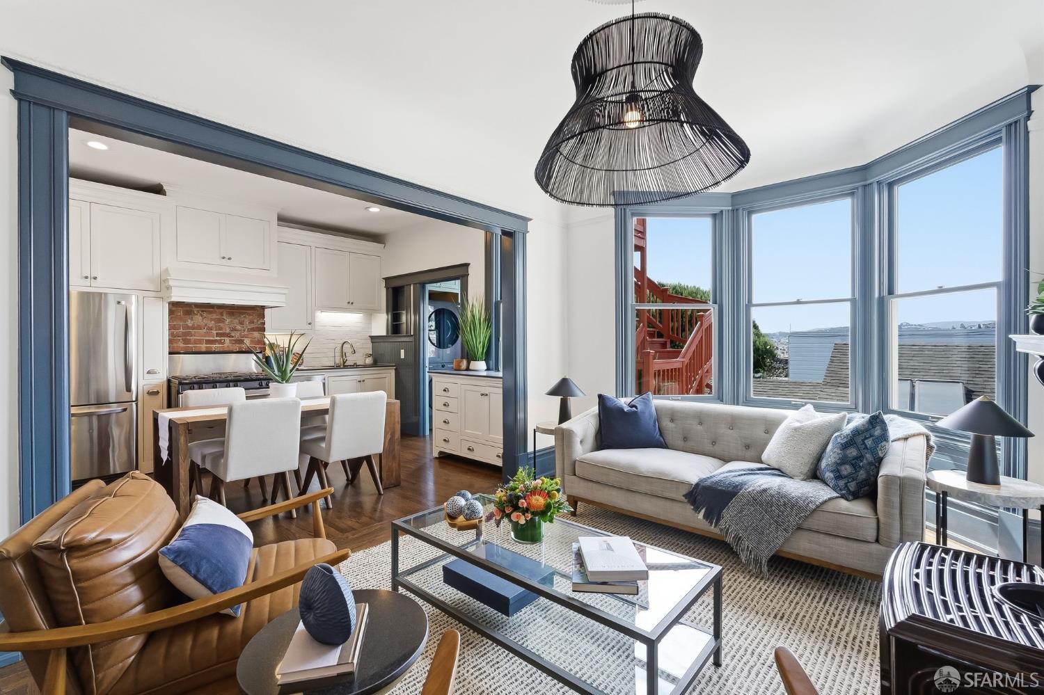 This stunning Edwardian condo in the heart of Noe Valley perfectly blends timeless period charm with modern sophistication. Step inside to discover a thoughtfully remodeled kitchen that seamlessly flows into the dining and living areas, creating an inviting space for both daily life and entertaining. The home’s classic details are truly captivating: soaring high ceilings, Fleur-De-Lis wainscoting, picture railings, extra-wide crown moulding in the entryway and hallway, intricate ceiling medallions, and custom beadboard accents in the laundry room. As you enter the home and walk up the elegant staircase, you’ll find three spacious bedrooms to the right and a beautifully updated bathroom down the hall. The bathroom is a true retreat, featuring a double sink vanity with a classic marble top and plenty of room to unwind. This home has been lovingly updated to meet modern standards while preserving its authentic Edwardian character. This property offers a true Noe Valley vibe when you gaze out from the home to take in a spectacular city view of the rolling San Francisco hills. A daily reminder of the beauty and allure of this iconic city. And when you’re ready for a little fresh air, step into the shared backyard, a serene and charming space perfect for relaxing with a morning coffee or catching up with neighbors in the afternoon sun. In addition there is a large deeded storage room in the basement with a ton of shared space as well. To offer a fresh look, the unit was recently painted, the floors refinished and the back deck and stairs stained. Parking is secured, leased and just around the corner. And the location? Simply unbeatable! With the highest walkability score, this home is just steps away from the vibrant Noe Valley village, where you’ll find an array of cafes, shops, restaurants, grocery stores, and boutiques. Transportation options are abundant, making it easy to navigate the city, while proximity to parks and highways ensures convenience for every lifestyle. Just steps from the J Church streetcar! Do you even need a car?? Families will appreciate the added bonus of lottery preference at Alvarado Elementary School, a highly regarded community school. This home offers not just a place to live, but a chance to embrace the quintessential Noe Valley lifestyle–charming, connected, and full of opportunity. Don’t miss the chance to make this extraordinary property your own, a slice of history wrapped up in modern-day sophistication.