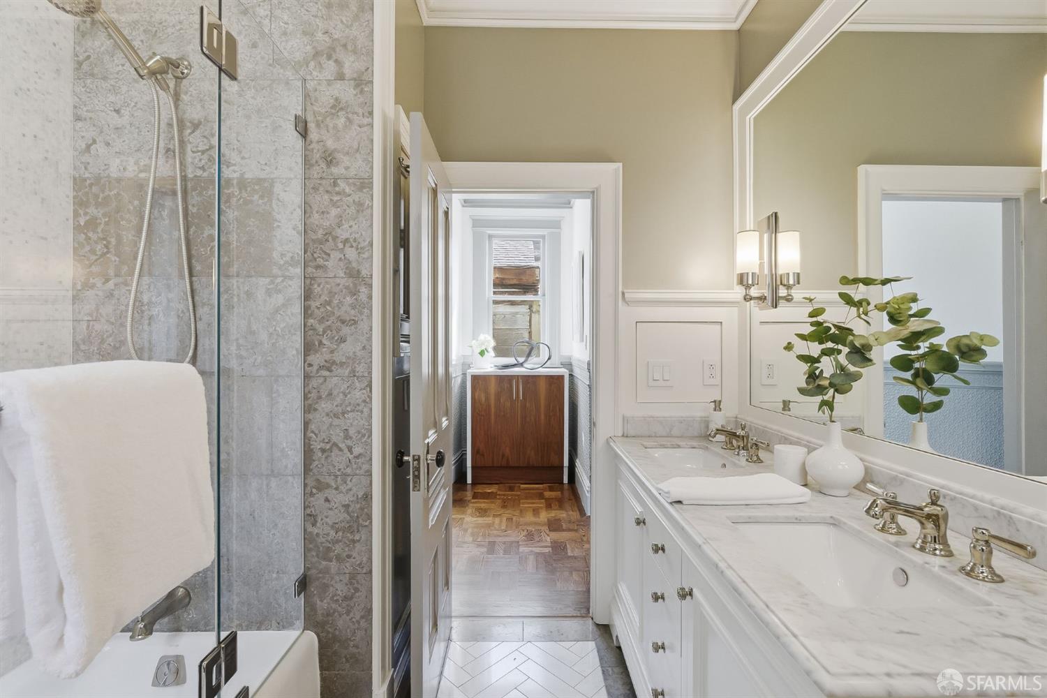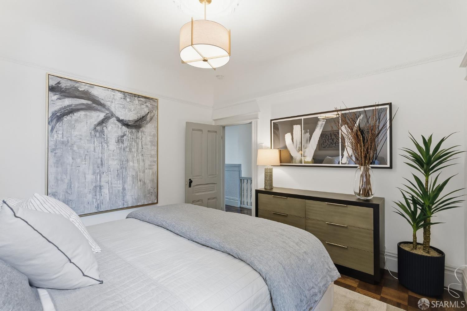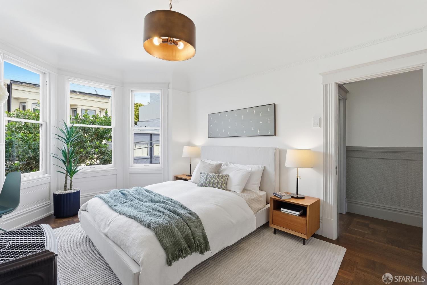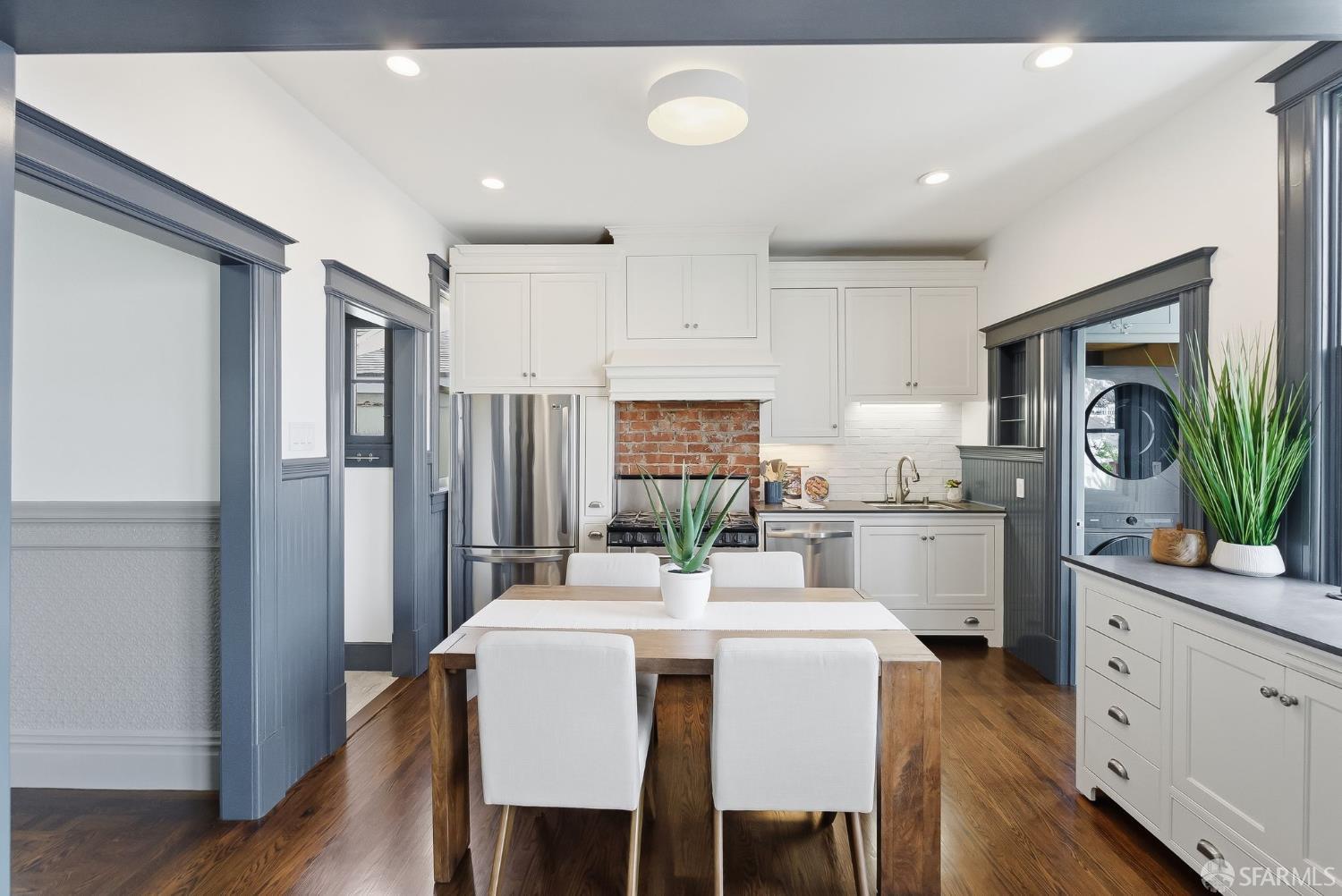 This stunning Edwardian condo in the heart of Noe Valley perfectly blends timeless period charm with modern sophistication. Step inside to discover a thoughtfully remodeled kitchen that seamlessly flows into the dining and living areas, creating an inviting space for both daily life and entertaining. The home’s classic details are truly captivating: soaring high ceilings, Fleur-De-Lis wainscoting, picture railings, extra-wide crown moulding in the entryway and hallway, intricate ceiling medallions, and custom beadboard accents in the laundry room. As you enter the home and walk up the elegant staircase, you’ll find three spacious bedrooms to the right and a beautifully updated bathroom down the hall. The bathroom is a true retreat, featuring a double sink vanity with a classic marble top and plenty of room to unwind. This home has been lovingly updated to meet modern standards while preserving its authentic Edwardian character. This property offers a true Noe Valley vibe when you gaze out from the home to take in a spectacular city view of the rolling San Francisco hills. A daily reminder of the beauty and allure of this iconic city. And when you’re ready for a little fresh air, step into the shared backyard, a serene and charming space perfect for relaxing with a morning coffee or catching up with neighbors in the afternoon sun. In addition there is a large deeded storage room in the basement with a ton of shared space as well. To offer a fresh look, the unit was recently painted, the floors refinished and the back deck and stairs stained. Parking is secured, leased and just around the corner. And the location? Simply unbeatable! With the highest walkability score, this home is just steps away from the vibrant Noe Valley village, where you’ll find an array of cafes, shops, restaurants, grocery stores, and boutiques. Transportation options are abundant, making it easy to navigate the city, while proximity to parks and highways ensures convenience for every lifestyle. Just steps from the J Church streetcar! Do you even need a car?? Families will appreciate the added bonus of lottery preference at Alvarado Elementary School, a highly regarded community school. This home offers not just a place to live, but a chance to embrace the quintessential Noe Valley lifestyle–charming, connected, and full of opportunity. Don’t miss the chance to make this extraordinary property your own, a slice of history wrapped up in modern-day sophistication.