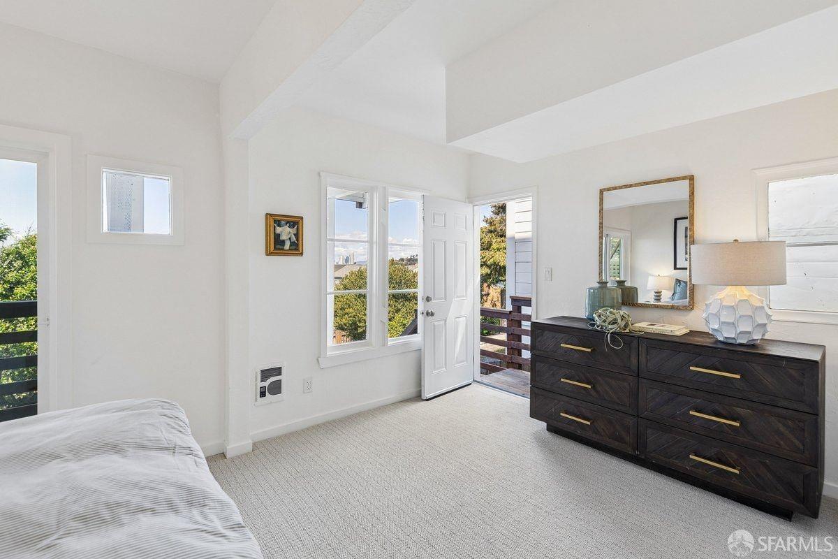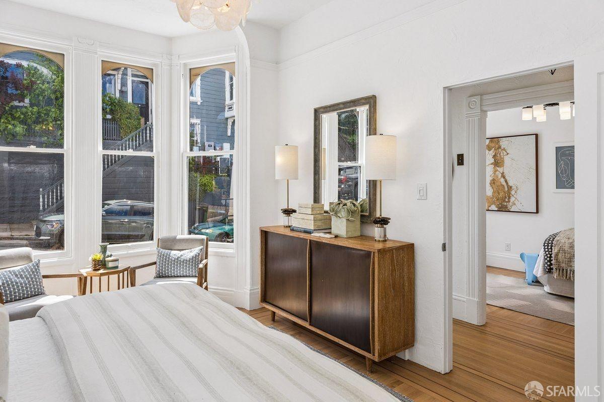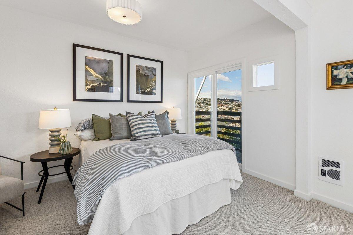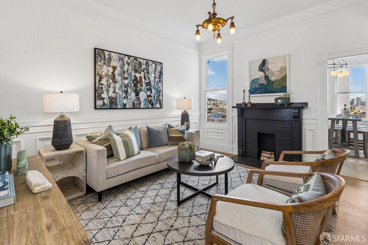 Set on a quiet one-way street in one of Bernal Heights’ most sought-after enclaves, 57 Montezuma stands out for its sweeping downtown and bridge-to-bridge views, and great scale, a combination rarely found at this price point! The main level is the true differentiator–a classic double parlor living and dining room flows into a family room, creating three distinct living areas on one level, a rare find. An updated kitchen w/ phenomenal views, sunroom and walk-out deck anchors the space. Configure the main level as three living areas plus a bedroom, or as living and dining rooms with two upstairs bedrooms. Period details include soaring ceilings, hardwood floors with mahogany inlay, pocket doors, picture rail moldings and fireplace. Downstairs, the primary suite takes in city views and opens to a walk-out deck, full bath w/ ensuite and hallway access is adjacent to an additional bedroom. A den offers flexible space for a media room or creative use. Enjoy the flagstone patio and roses in the yard. A bonus attic space w/ 2 skylights has fantastic potential. Move right in, then dare to dream–there’s real opportunity here to expand on the views & create your vision. Ideally located near Mission Street, Valencia & Noe Valley, w/ access to transit & north Bernal’s warmer microclimate.