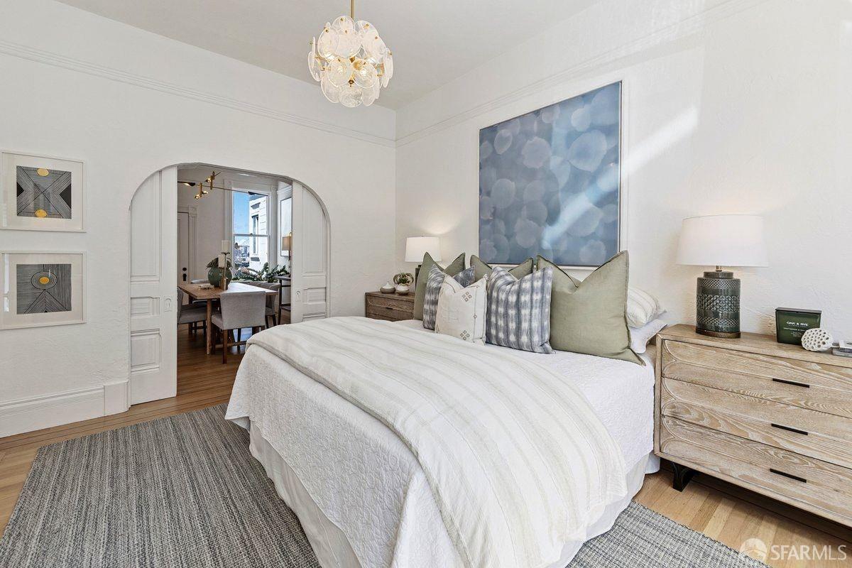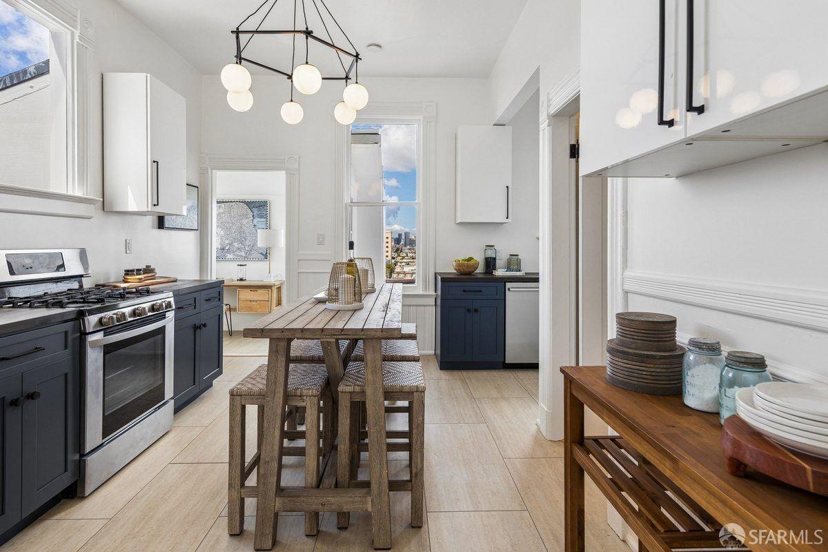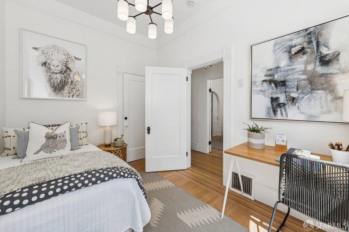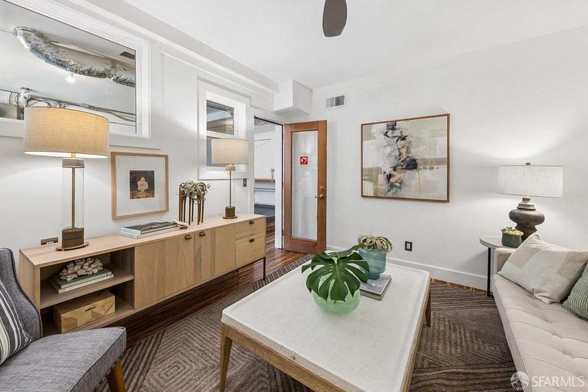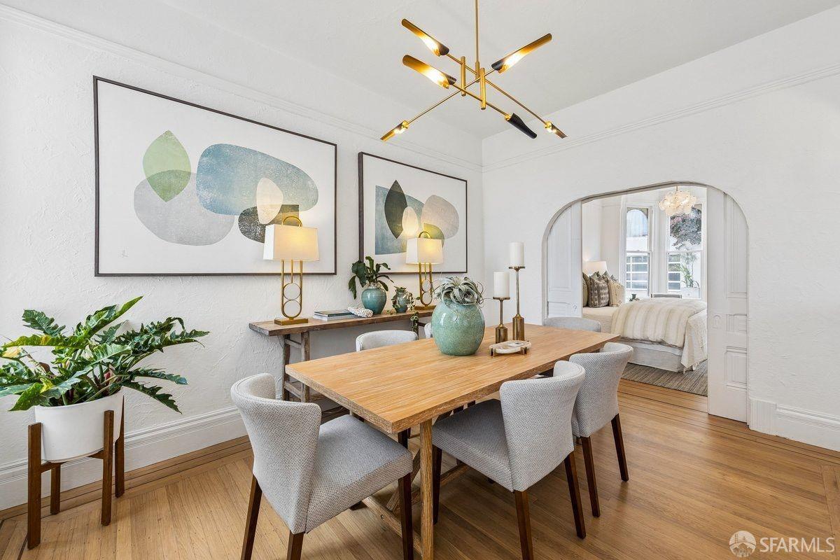 Set on a quiet one-way street in one of Bernal Heights’ most sought-after enclaves, 57 Montezuma stands out for its sweeping downtown and bridge-to-bridge views, and great scale, a combination rarely found at this price point! The main level is the true differentiator–a classic double parlor living and dining room flows into a family room, creating three distinct living areas on one level, a rare find. An updated kitchen w/ phenomenal views, sunroom and walk-out deck anchors the space. Configure the main level as three living areas plus a bedroom, or as living and dining rooms with two upstairs bedrooms. Period details include soaring ceilings, hardwood floors with mahogany inlay, pocket doors, picture rail moldings and fireplace. Downstairs, the primary suite takes in city views and opens to a walk-out deck, full bath w/ ensuite and hallway access is adjacent to an additional bedroom. A den offers flexible space for a media room or creative use. Enjoy the flagstone patio and roses in the yard. A bonus attic space w/ 2 skylights has fantastic potential. Move right in, then dare to dream–there’s real opportunity here to expand on the views & create your vision. Ideally located near Mission Street, Valencia & Noe Valley, w/ access to transit & north Bernal’s warmer microclimate.