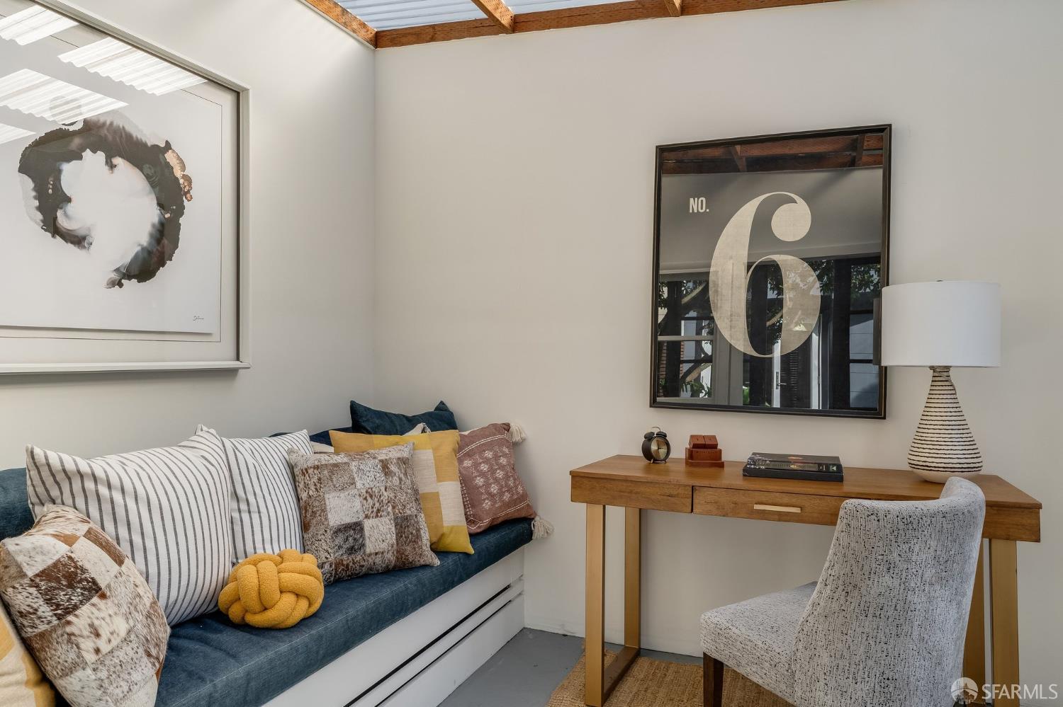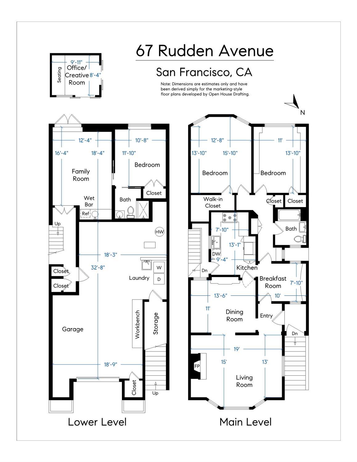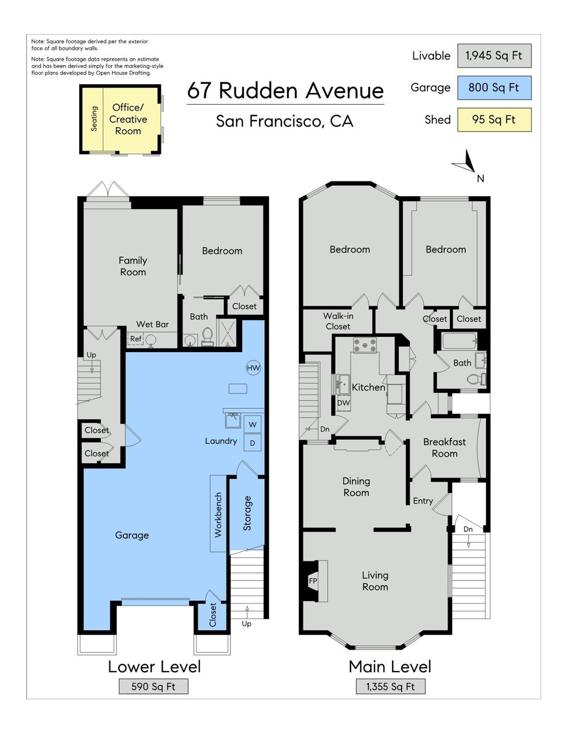 Classic Marina style elegance meets modern comfort at 67 Rudden Avenue. This beautifully remodeled Mission Terrace home offers a versatile two-level floor plan with timeless architectural details and inviting living spaces throughout. The main level features a spacious and light-filled living room, anchored by a classic center fireplace with elegant detailing, barrel ceiling, hill views, and beautiful parquet floors. Period charm and details continue with lovely moldings in the formal dining room accented by a built-in hutch and additional parquet floors. The beautiful and light-filled remodeled kitchen, with an adjoining breakfast room with custom built-in shelving, is ideal for both everyday living and effortless entertaining. Two spacious bedrooms are located in the rear of the home with outlooks to the beautiful garden. A tastefully renovated bathroom completes this level. The lower level expands the home’s flexibility with a generous family room with a wet bar/kitchenette, and a large primary with a full bath. The beautifully landscaped yard is accessed on this level and includes a detached bonus space, ideal as a home office, yoga studio, or creative escape. Two lovely patio areas add to the beautiful space and make the backyard a peaceful and relaxing environment. Two car garage with amazing storage and another space for a small car in the driveway completes this beautiful Mission Terrace home. Minutes from the amazing Balboa Park, shops and restaurants of Mission Street, Glen Park, transportation, including BART, MUNI and freeways 101 and 280.