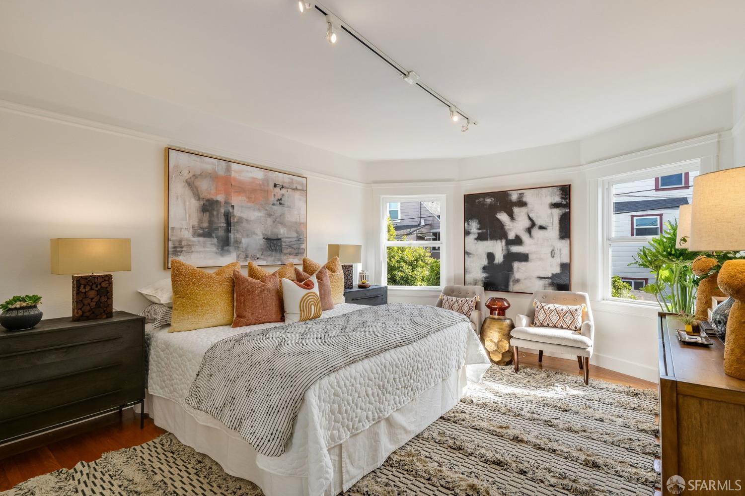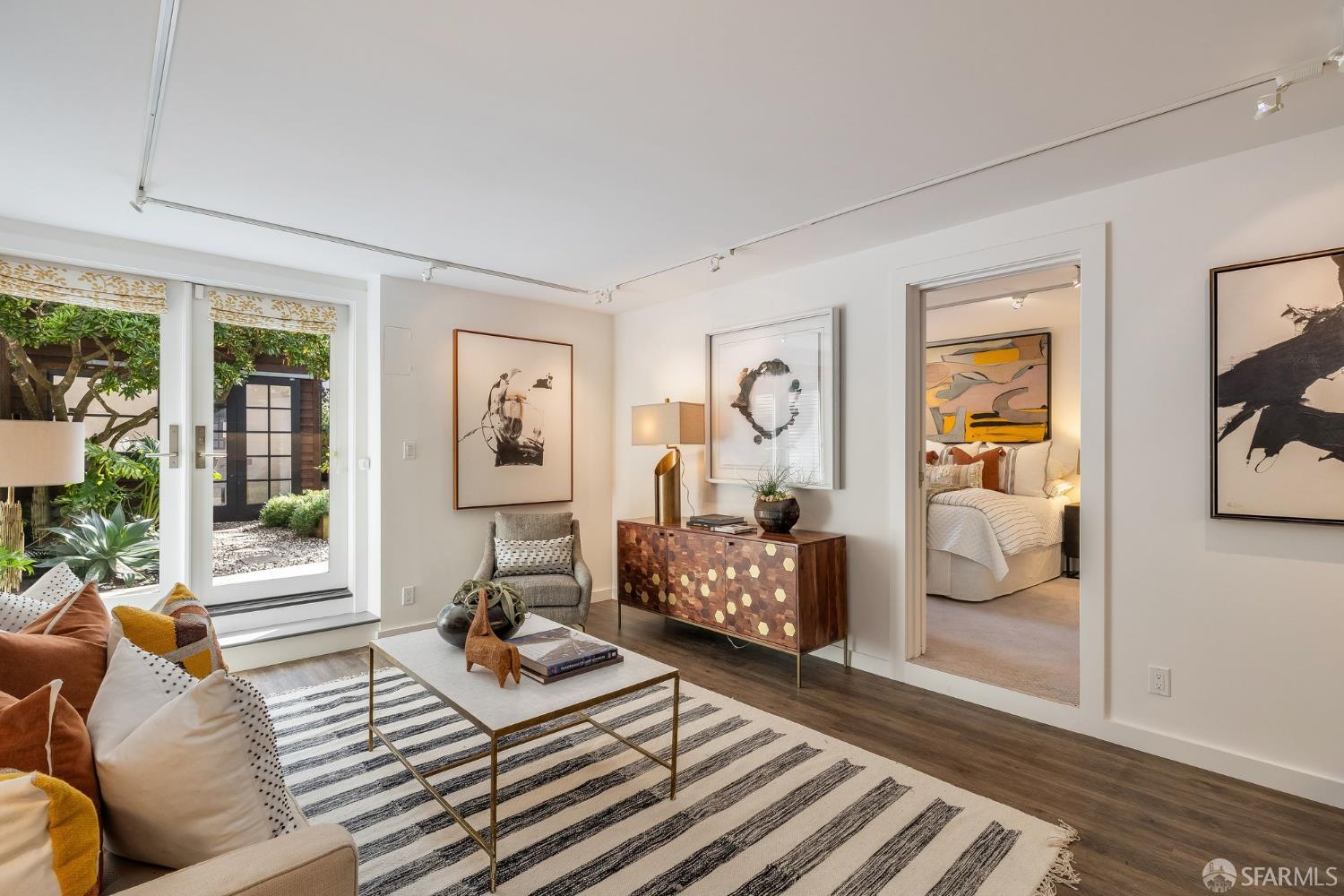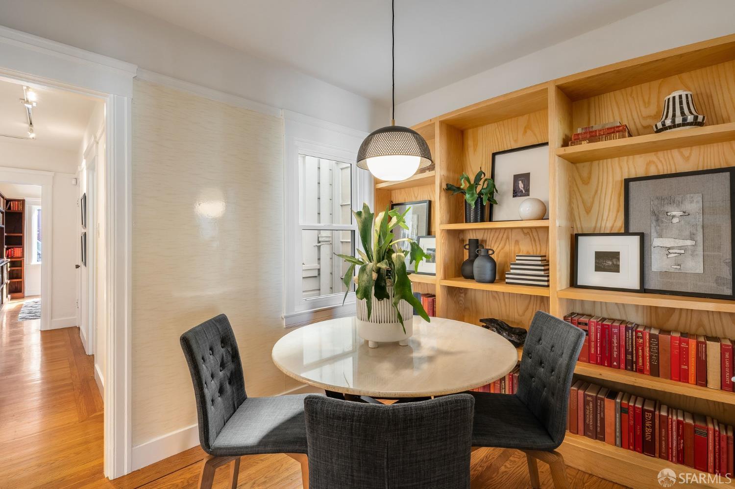 Classic Marina style elegance meets modern comfort at 67 Rudden Avenue. This beautifully remodeled Mission Terrace home offers a versatile two-level floor plan with timeless architectural details and inviting living spaces throughout. The main level features a spacious and light-filled living room, anchored by a classic center fireplace with elegant detailing, barrel ceiling, hill views, and beautiful parquet floors. Period charm and details continue with lovely moldings in the formal dining room accented by a built-in hutch and additional parquet floors. The beautiful and light-filled remodeled kitchen, with an adjoining breakfast room with custom built-in shelving, is ideal for both everyday living and effortless entertaining. Two spacious bedrooms are located in the rear of the home with outlooks to the beautiful garden. A tastefully renovated bathroom completes this level. The lower level expands the home’s flexibility with a generous family room with a wet bar/kitchenette, and a large primary with a full bath. The beautifully landscaped yard is accessed on this level and includes a detached bonus space, ideal as a home office, yoga studio, or creative escape. Two lovely patio areas add to the beautiful space and make the backyard a peaceful and relaxing environment. Two car garage with amazing storage and another space for a small car in the driveway completes this beautiful Mission Terrace home. Minutes from the amazing Balboa Park, shops and restaurants of Mission Street, Glen Park, transportation, including BART, MUNI and freeways 101 and 280.