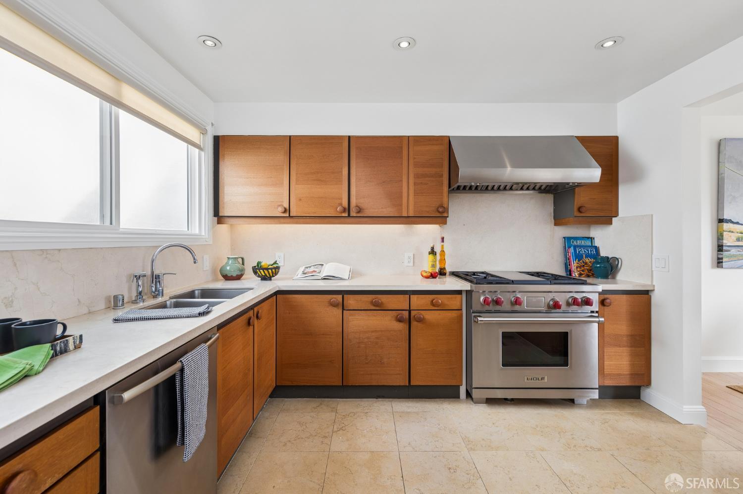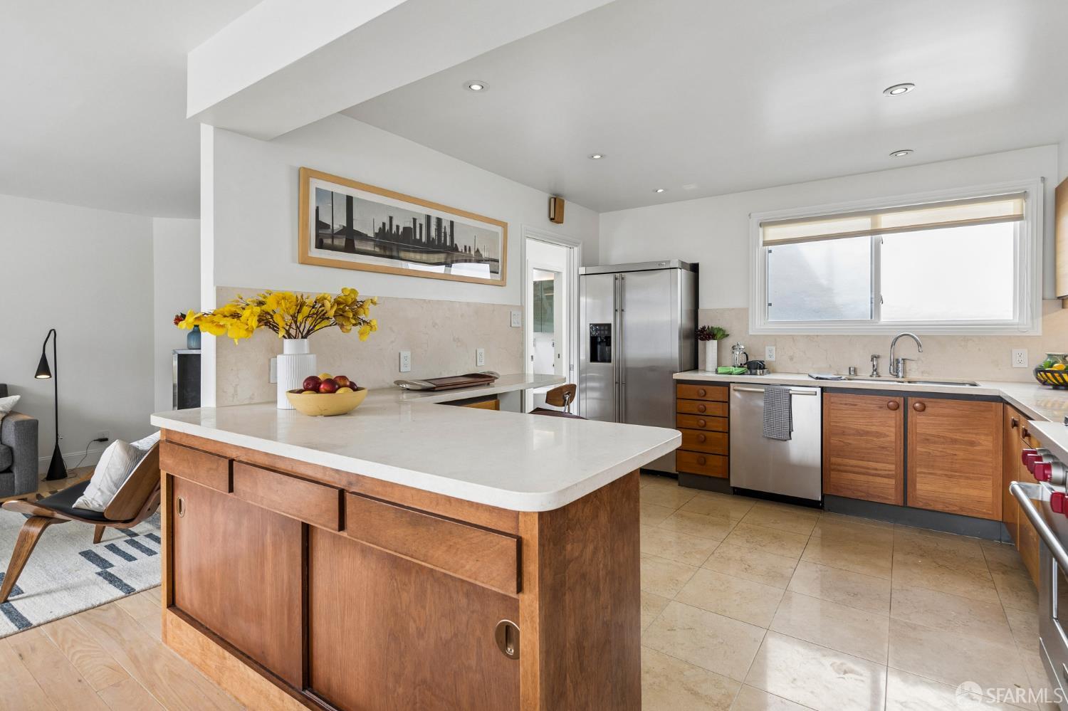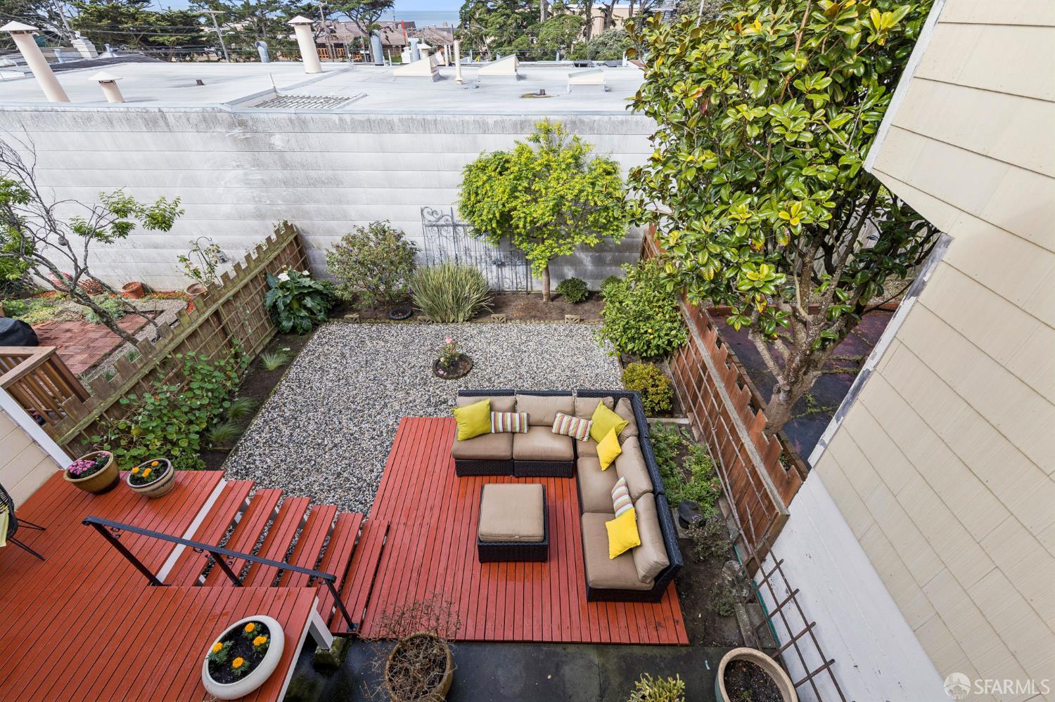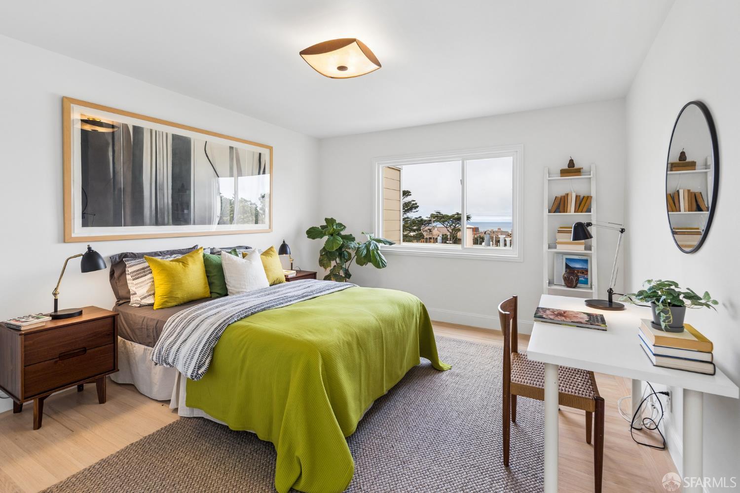 Sweet, well maintained Central Sunset home in same family for many decades. Updated kitchen with Wolf range and gorgeous Mid Century custom cabinetry. Spacious, contemporary bathroom with Japanese soaking tub. Two bedrooms on main level with ocean views. Hardwood floors, wood burning fireplace, double paned windows, solar panels. Large family room on lower level. 2 car tandem garage with sliding doors that spill out onto a deck and lovely back garden. Washer/dryer on garage level. Much heart and soul. Many possibilities. Walk to local Farmers Market!