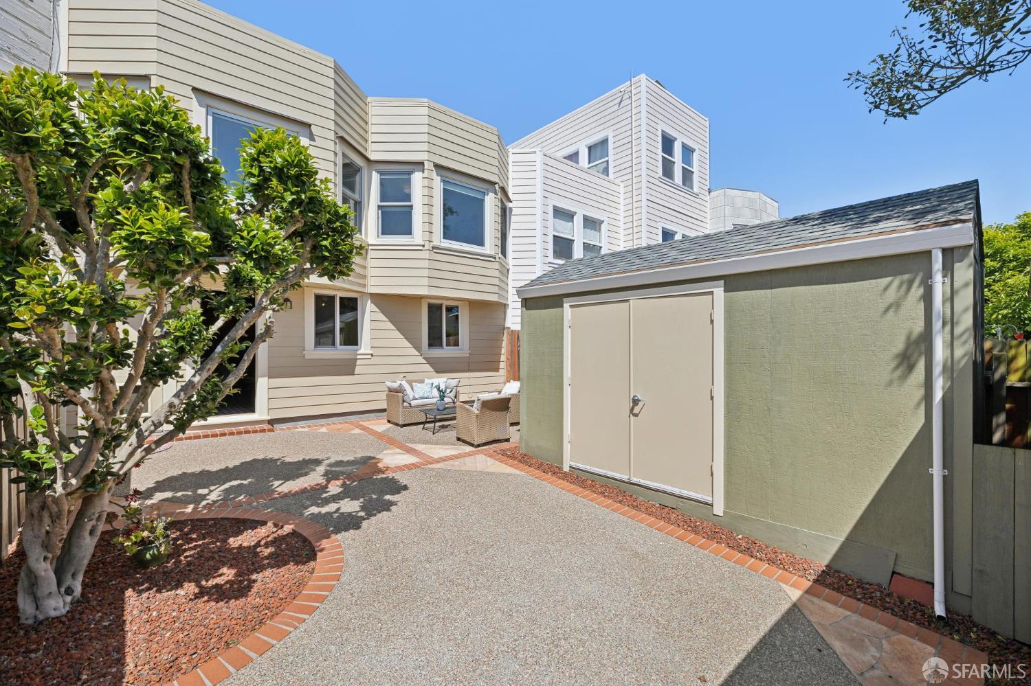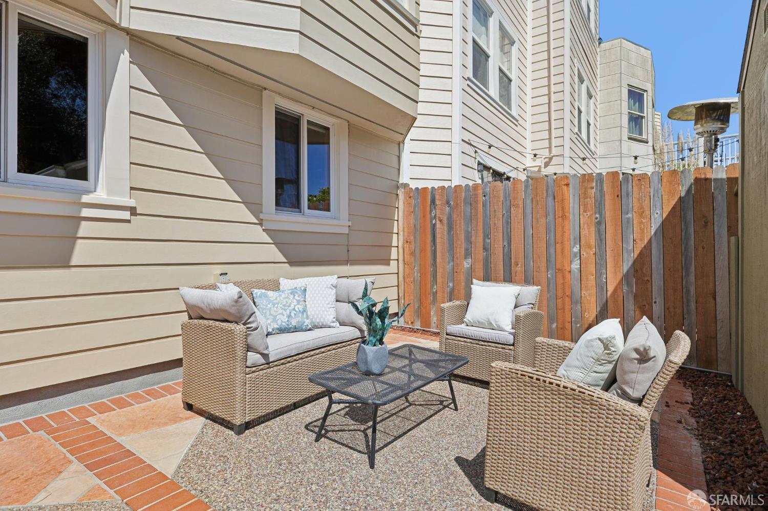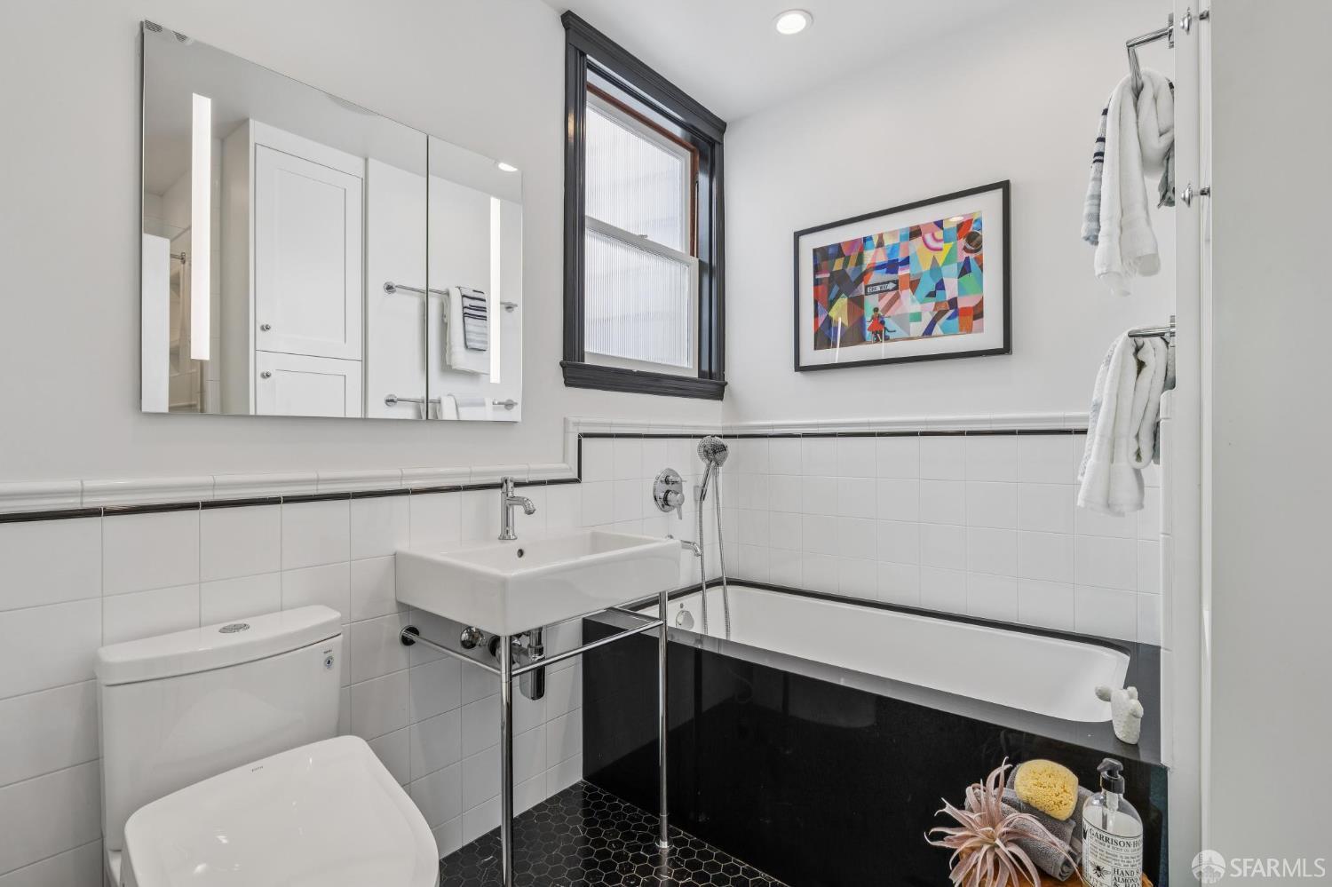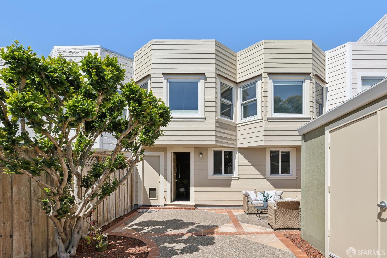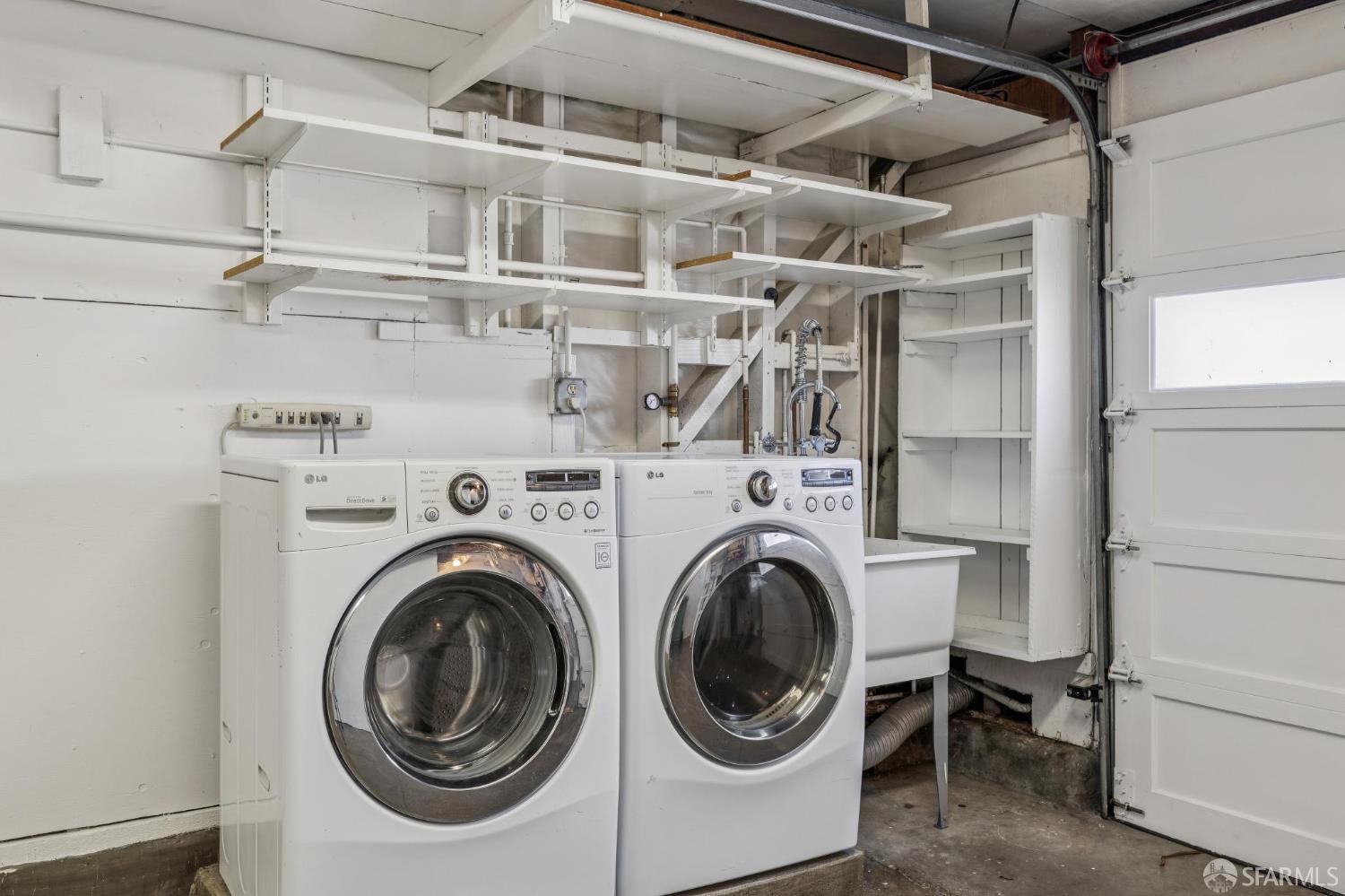 Classic 1930’s Parkside home blending timeless charm with modern upgrades. Filled with natural light, this residence features parquet hardwood floors in the entry and formal rooms. The living room offers coved ceilings, a gas fireplace, and an elegant arched front window. The dining room opens to a patio, ideal for indoor-outdoor entertaining. The remodeled kitchen includes a built-in refrigerator, Viking gas range, quartz counters, and a breakfast area with custom bench. The remodeled main bath has a soaking tub and walk-in shower with floor-to-ceiling tile. Two bedrooms overlook the garden. The lower level features a rich knotty pine family room which is en-suite to a bathroom with designer tile, walk-in shower and modern finishes. Additionally, there is a bonus guest room. The rear yard includes a brick and concrete patio and two custom sheds. A one-car garage with storage completes this exceptional home. Ideally located near Pine Lake Park, Taraval shops, Ocean Beach, and transit.