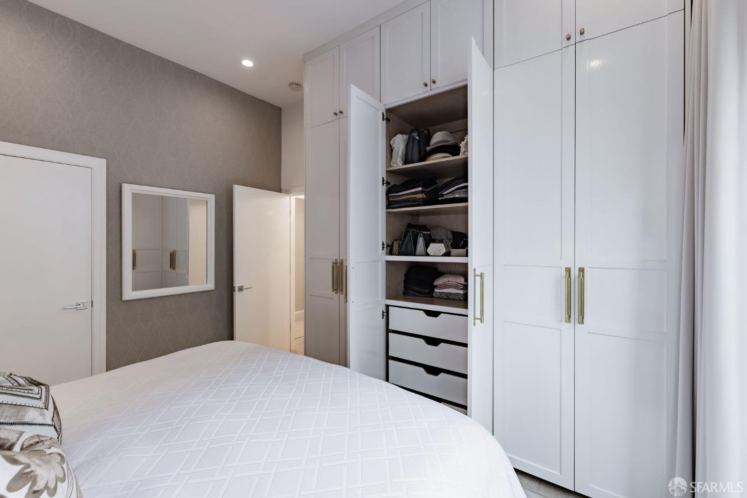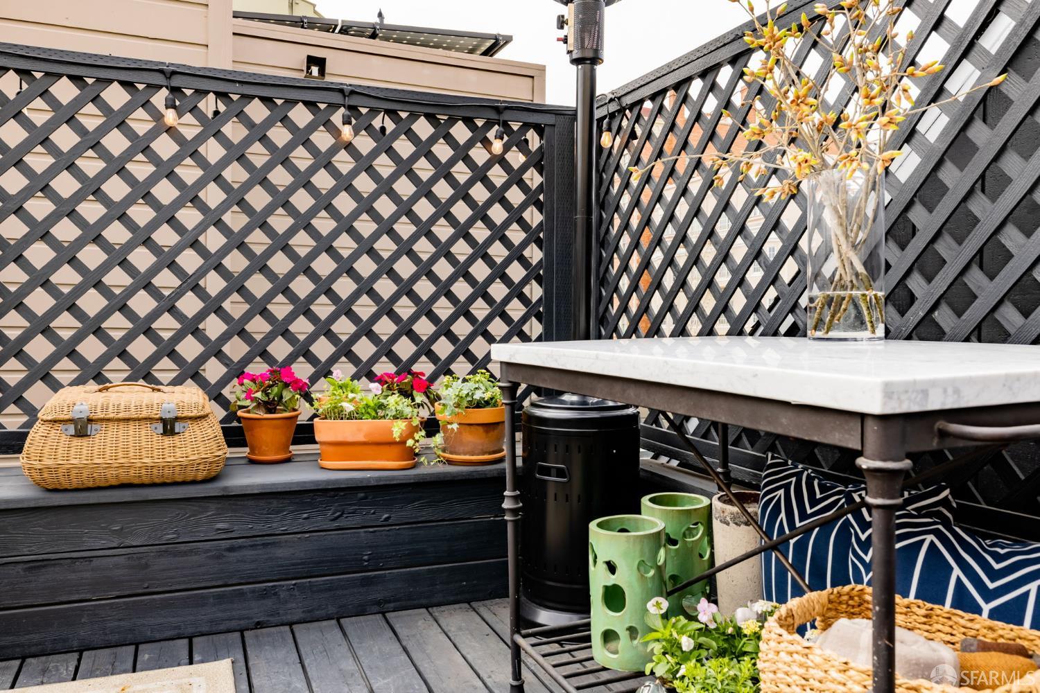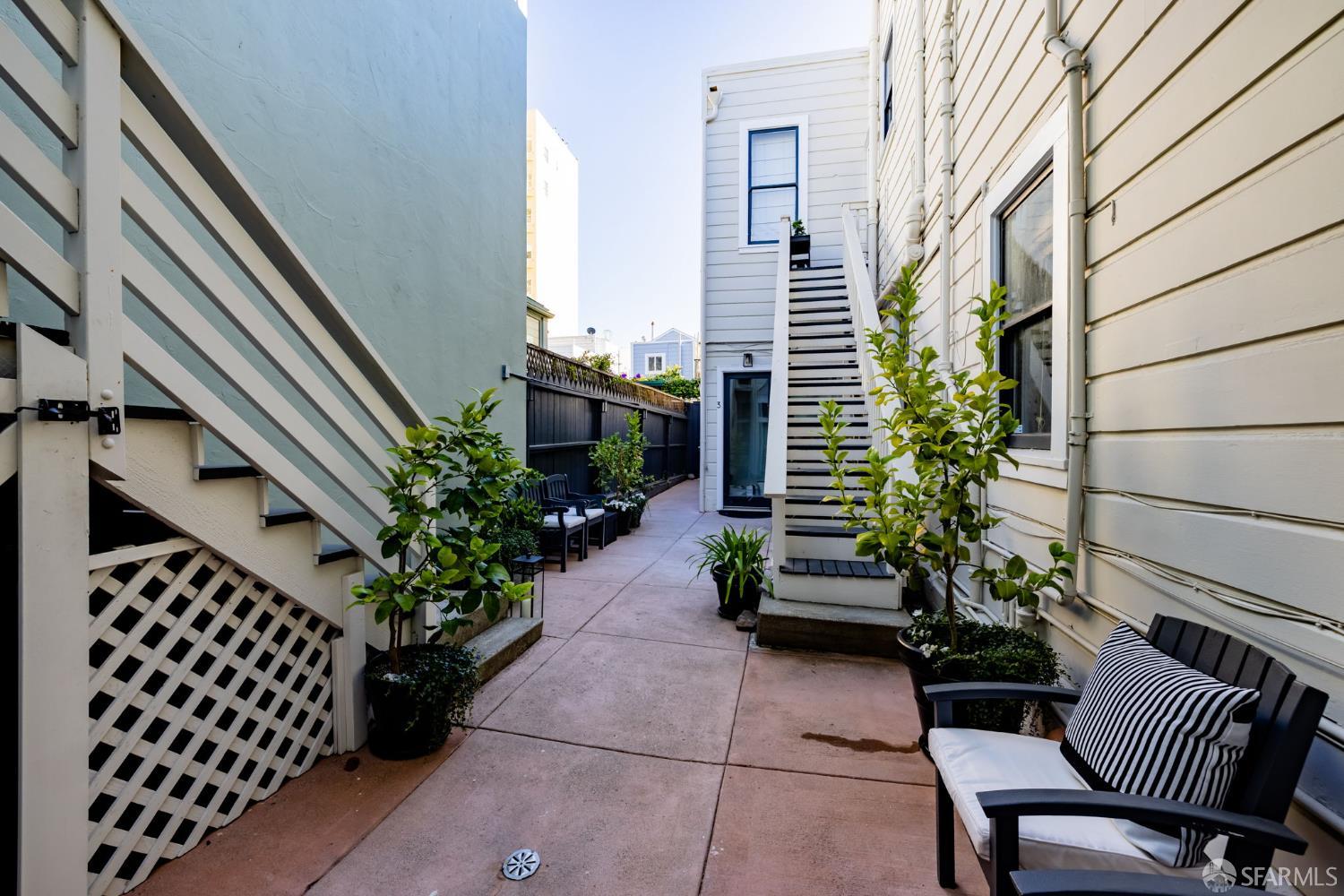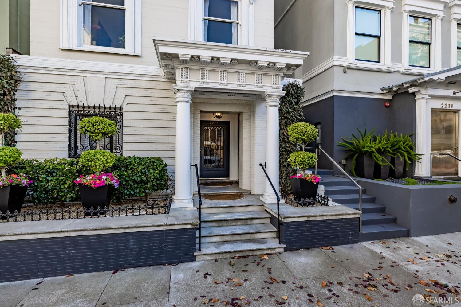 This stunning, pent level condo in prime Pacific Heights is truly one of a kind. Flooded with both natural light and old San Francisco charm, this home benefitted from an elegant, down-to-the-studs 2017 remodel and now boasts wide plank white oak floors, all new cabinets, countertops and appliances, and new windows throughout. The main level of this gorgeous home includes the primary bedroom with double closets and private patio (the first of two private outdoor spaces), remodeled bath with travertine walls and floors, living/dining room complete with fireplace and cathedral ceilings, and chef’s kitchen with Bertazzoni gas range, new faucet by Hansgrohe and imported English cabinet pulls, in unit washer and dryer. Upstairs is your light and bright lofted second bedroom with custom under-stair storage casework, an office nook, and access to your private roof deck, which includes a heater and a marble island. Separate storage and a third shared common patio complete this exquisite residence.