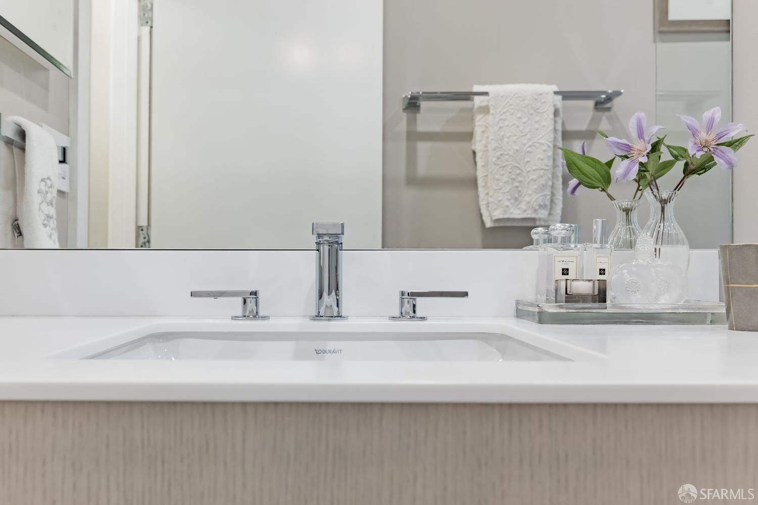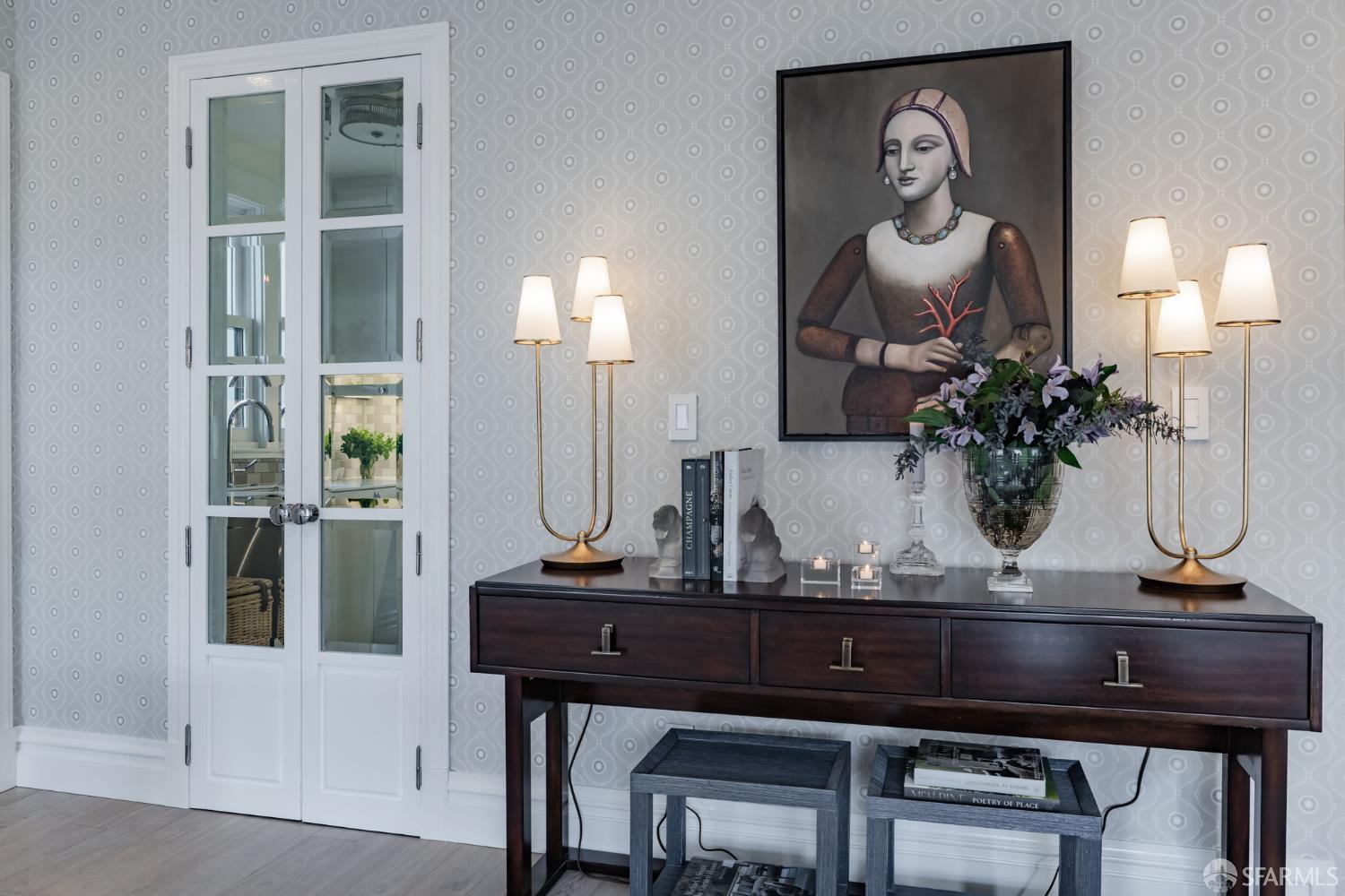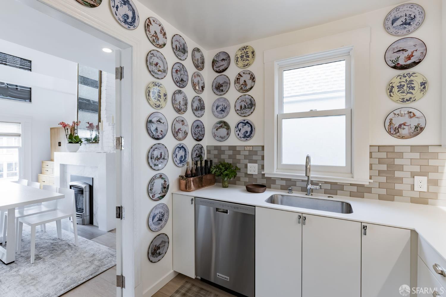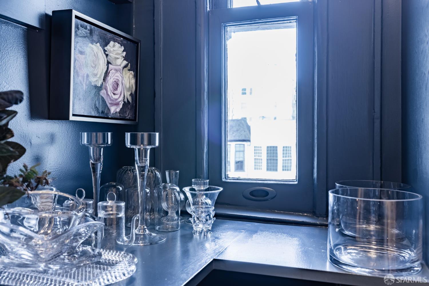 This stunning, pent level condo in prime Pacific Heights is truly one of a kind. Flooded with both natural light and old San Francisco charm, this home benefitted from an elegant, down-to-the-studs 2017 remodel and now boasts wide plank white oak floors, all new cabinets, countertops and appliances, and new windows throughout. The main level of this gorgeous home includes the primary bedroom with double closets and private patio (the first of two private outdoor spaces), remodeled bath with travertine walls and floors, living/dining room complete with fireplace and cathedral ceilings, and chef’s kitchen with Bertazzoni gas range, new faucet by Hansgrohe and imported English cabinet pulls, in unit washer and dryer. Upstairs is your light and bright lofted second bedroom with custom under-stair storage casework, an office nook, and access to your private roof deck, which includes a heater and a marble island. Separate storage and a third shared common patio complete this exquisite residence.