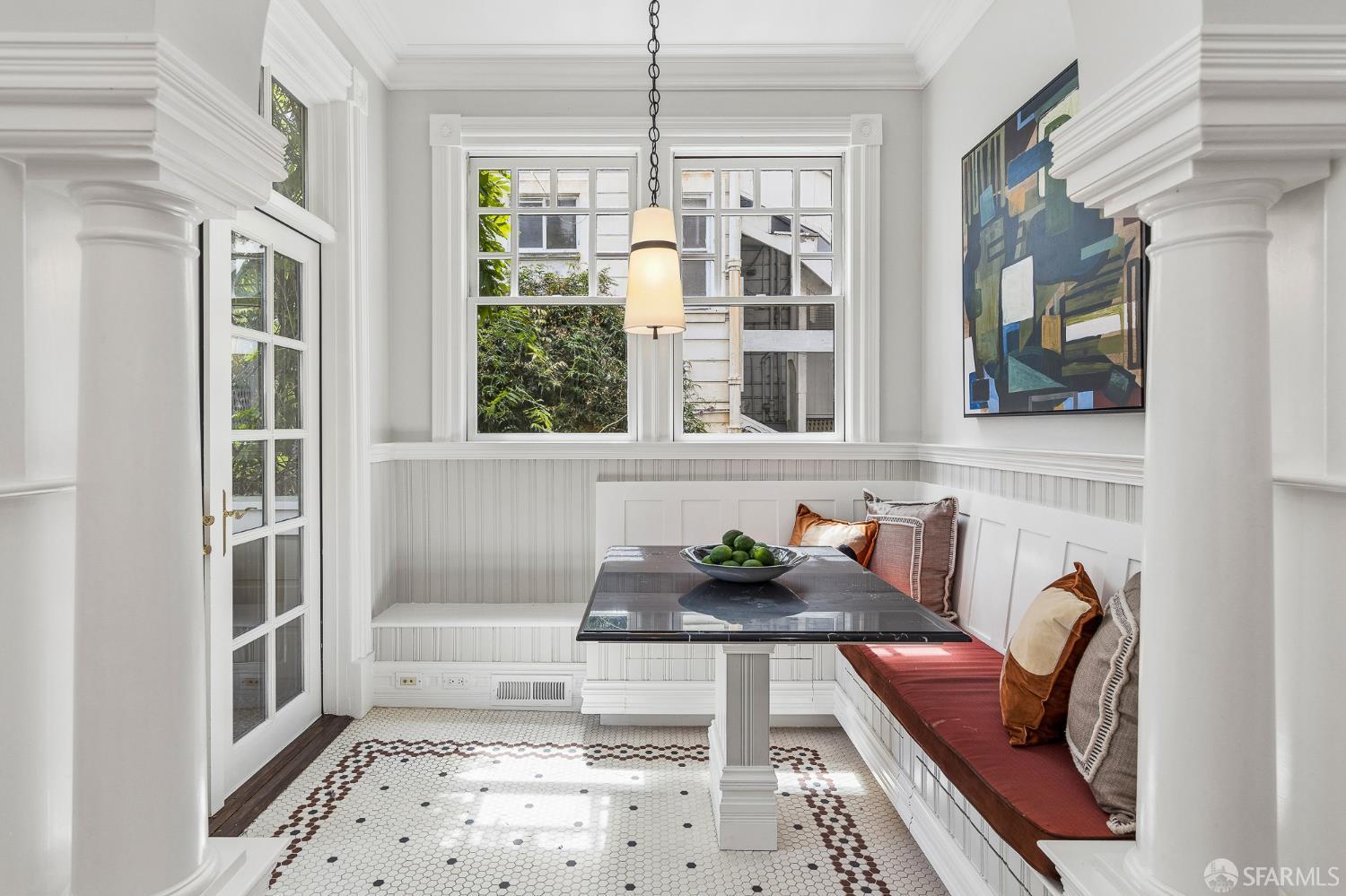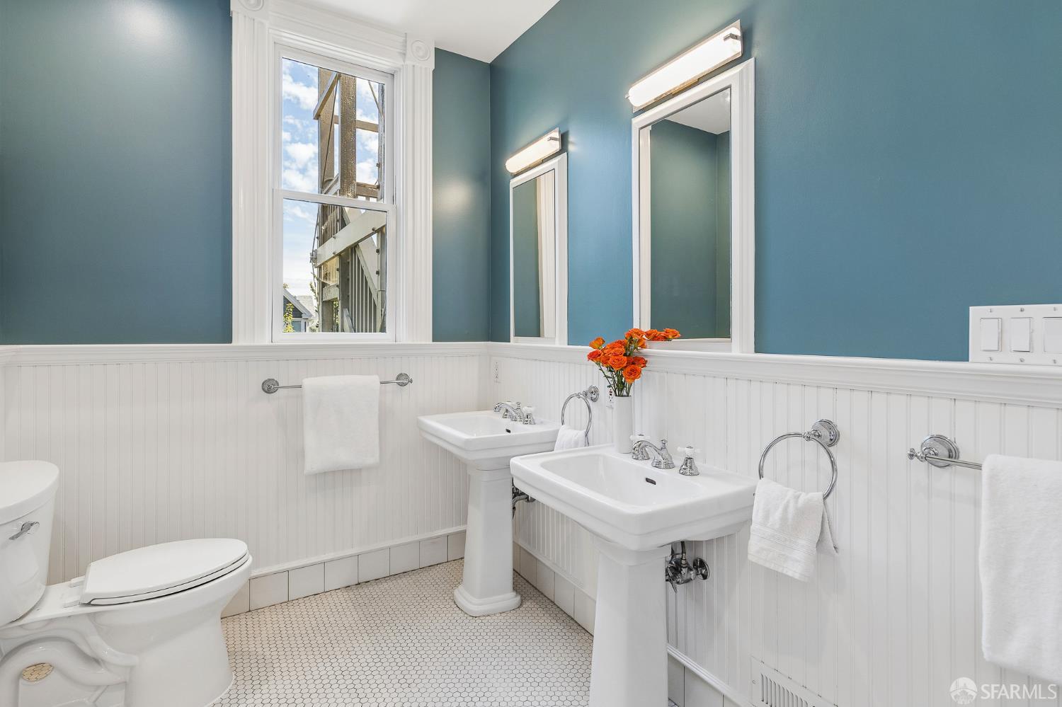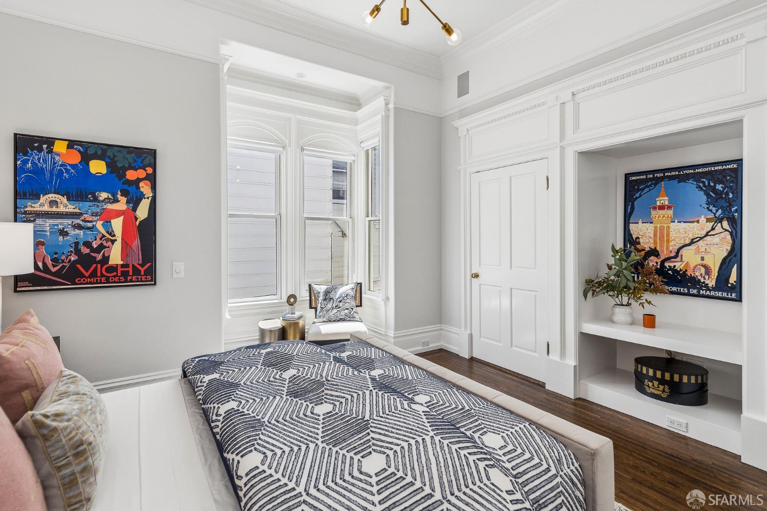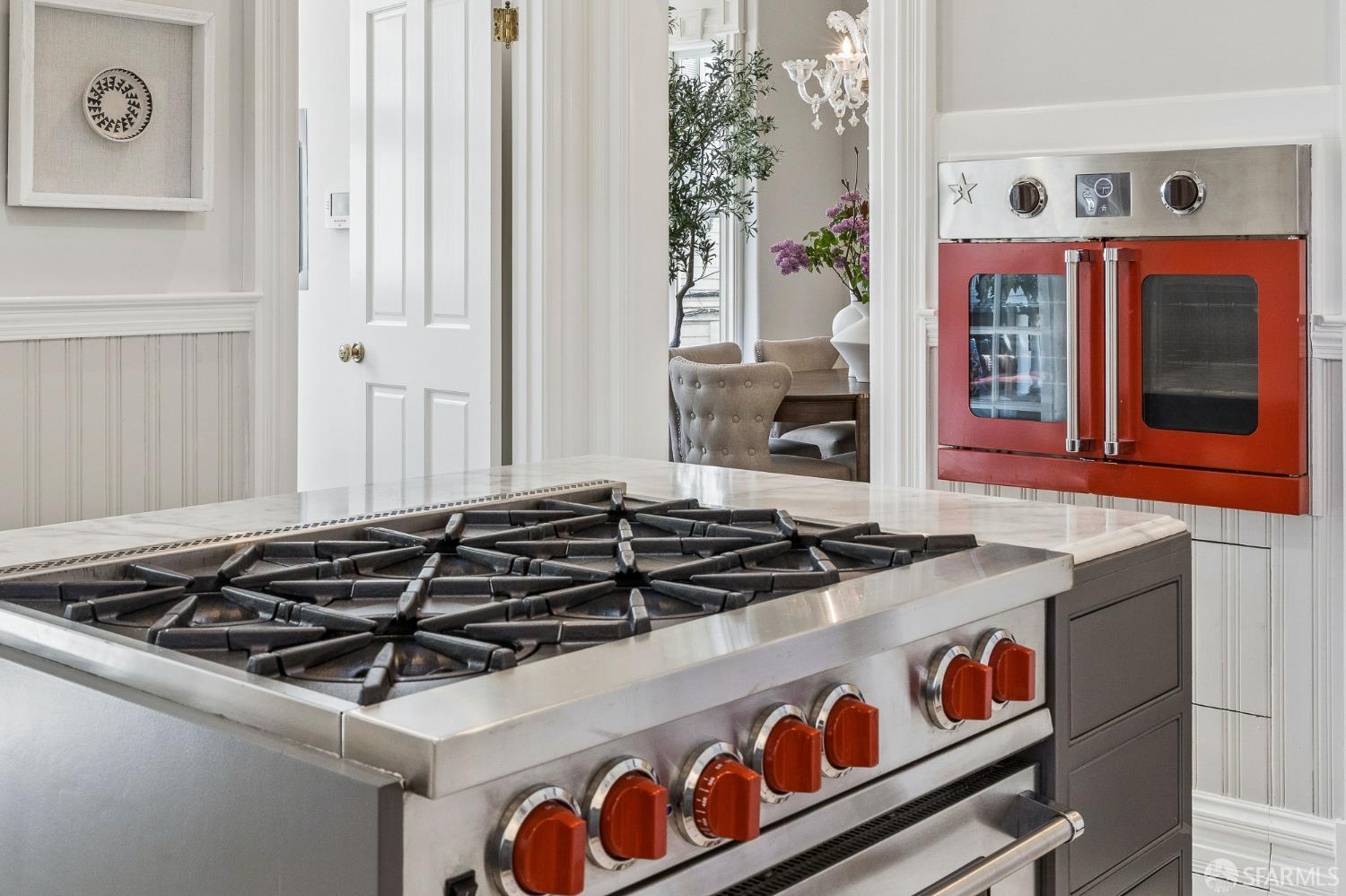 What can be more San Franciscan than a majestic Victorian home, with an inviting garden, on a beautiful tree-lined street, in the immediate vicinity of many of the vibrant cafes and restaurants that define our extraordinary City? 249 Fair Oaks is a fully detached 19th century architectural masterpiece that has been lovingly restored and remodeled to the delight of its 21st century stewards. The graceful Victorian home is a celebration of aesthetic pleasure that carefully balances the charm and refinement of what is old, with the utility and functionality of what is new. To live in this home is to be constantly reminded of the joy that craftsmanship, art, and beauty offer us; contributing mightily to our inner peace, power, and pleasure. With 3 bedrooms and 2.5 bathrooms, voluminous public rooms, all on an irregular 32′ x 117′ lot, the home abounds in unique features and amenities. The Victorian era bay windows, grand staircase, quiet veranda, ornate fireplaces, endless architectural detail, and intricately adorned dining room chandelier, blend seamlessly with the modern chef’s kitchen, featuring a BlueStar Range and wall oven, Sub-Zero refrigerator, marble counters, center island, breakfast room, and more. The gated side driveway leads to a full garage / basement that will delight motor heads”, cyclists, and all those with lots of life’s good stuff” who dream of having the storage space to keep, collect, and display it! Mature shade trees grace the whimsical east garden, adding to the privacy, serenity, and allure of this San Francisco oasis. The stoutly built rear staircase leads all the way up from the garden level to the roof level, from which views of the downtown skyline and Bay Bridge serve as a constant reminder that 1849 marked but one of the many Gold Rushes that have brought artists, visionaries, disruptors, and entrepreneurs to the shores of our beloved City, generation after generation.
