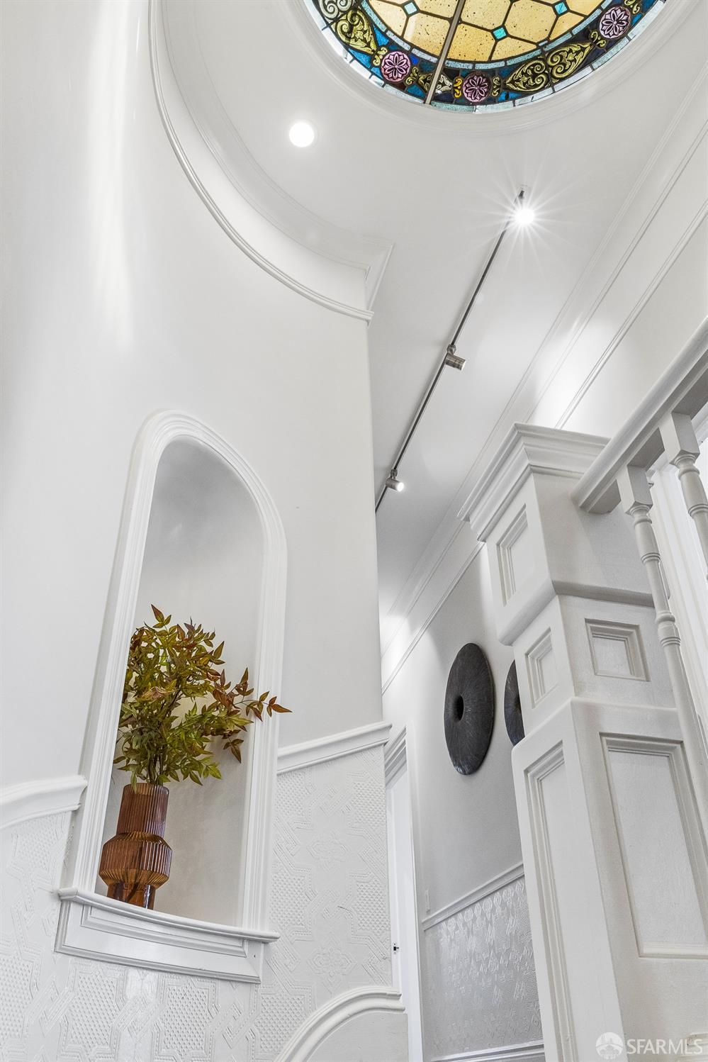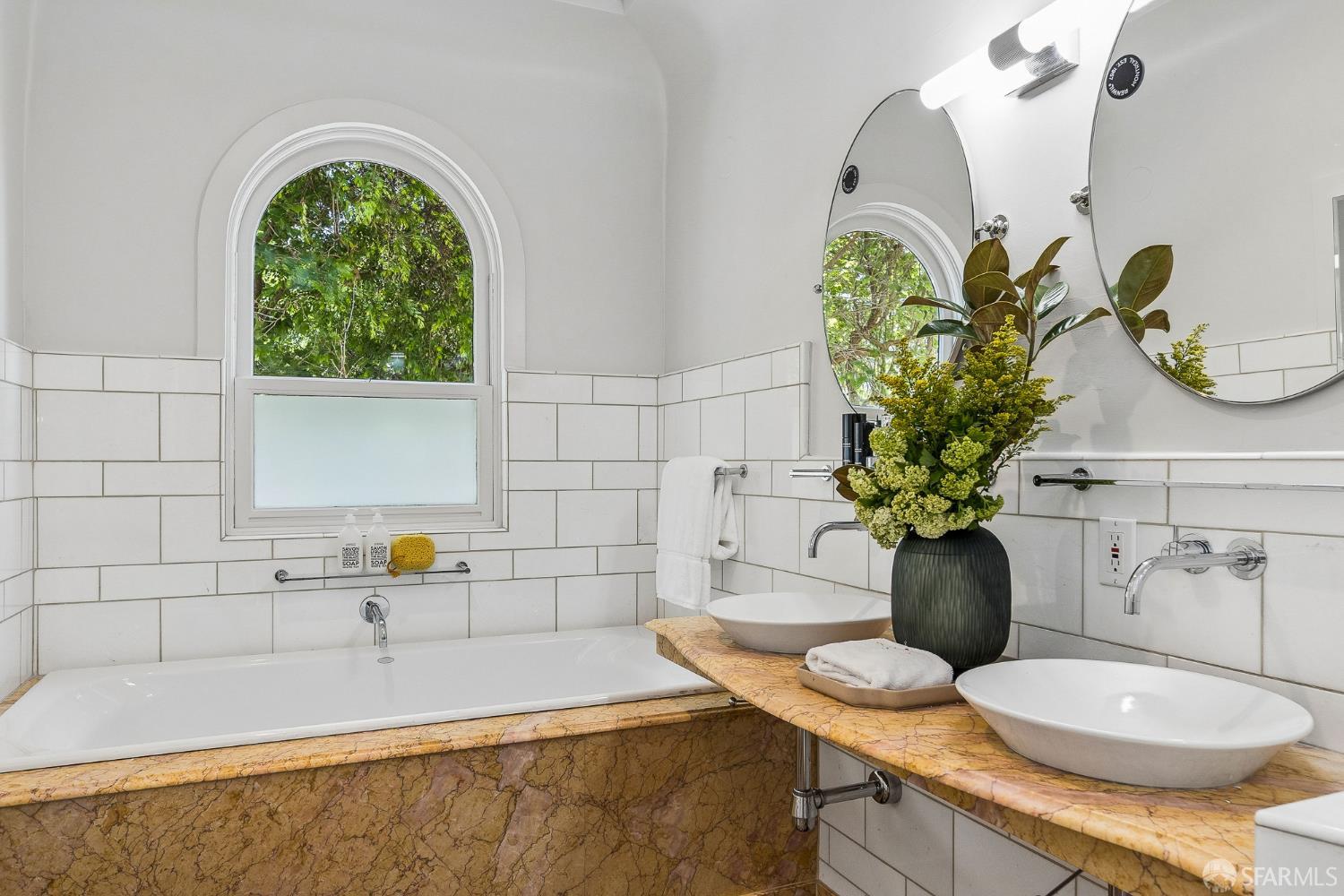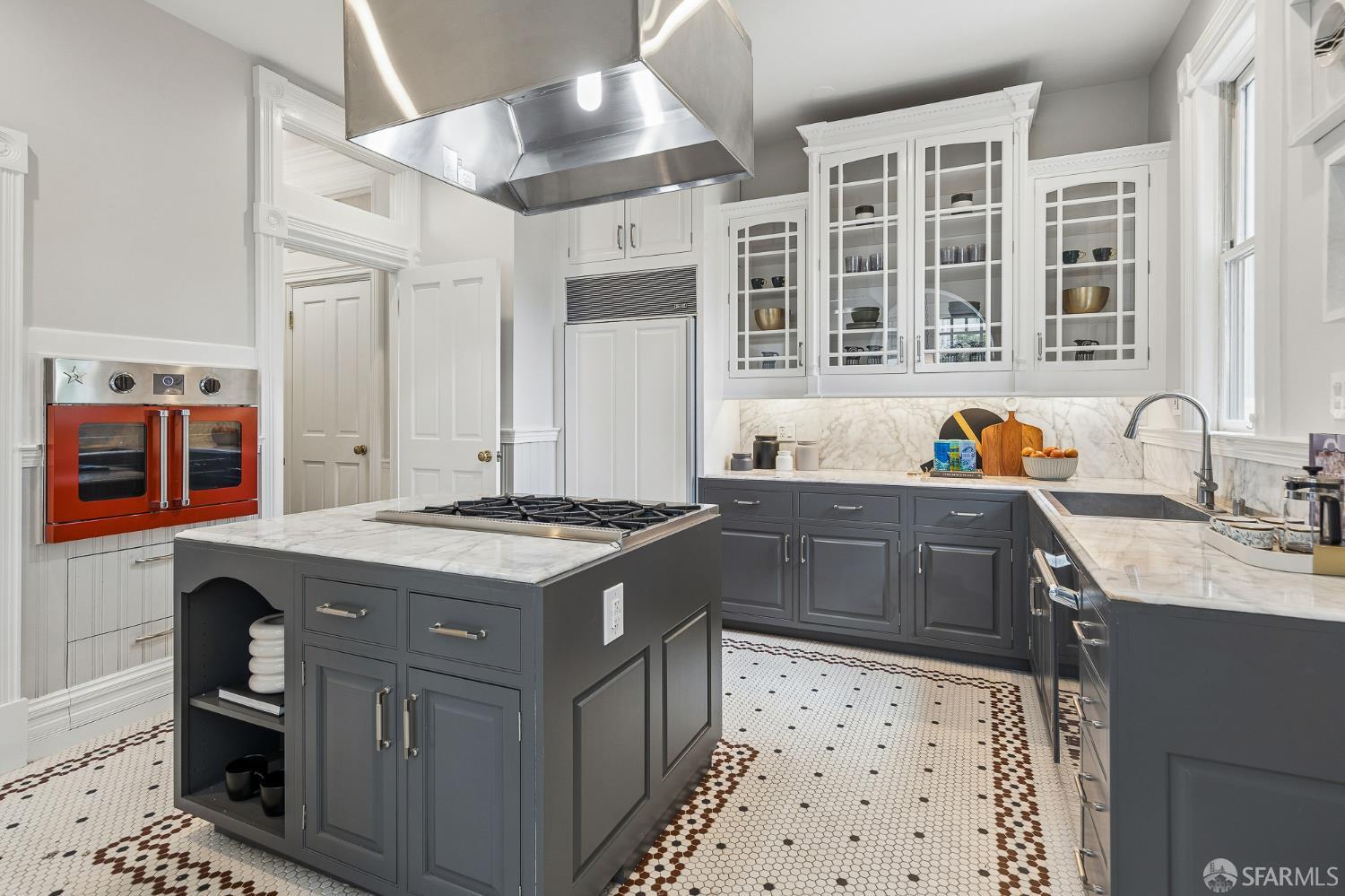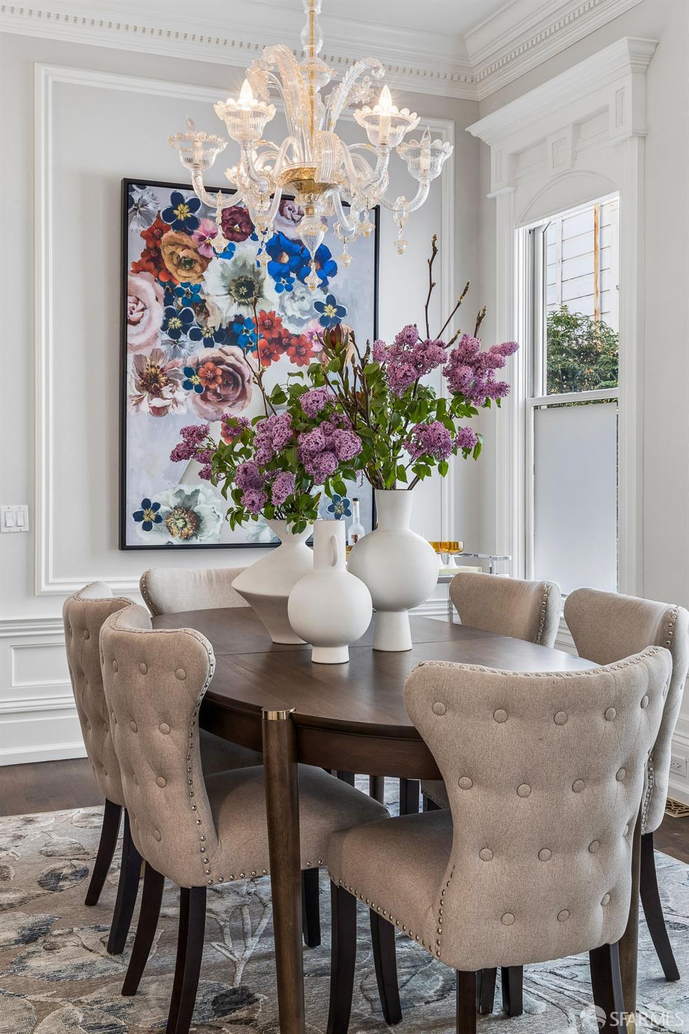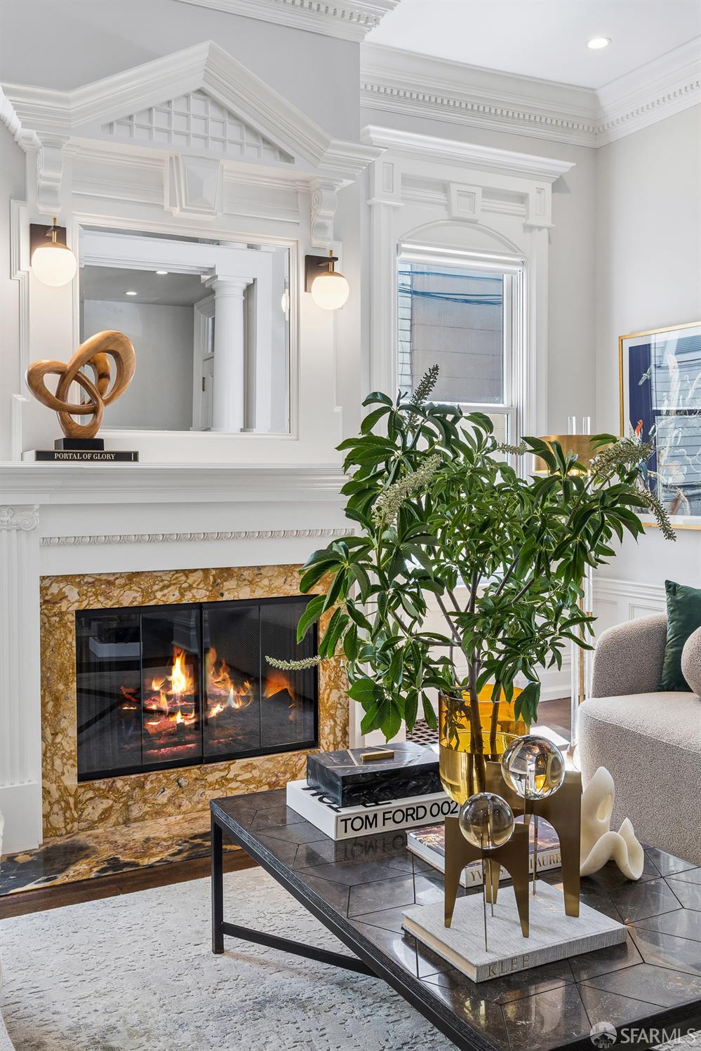 What can be more San Franciscan than a majestic Victorian home, with an inviting garden, on a beautiful tree-lined street, in the immediate vicinity of many of the vibrant cafes and restaurants that define our extraordinary City? 249 Fair Oaks is a fully detached 19th century architectural masterpiece that has been lovingly restored and remodeled to the delight of its 21st century stewards. The graceful Victorian home is a celebration of aesthetic pleasure that carefully balances the charm and refinement of what is old, with the utility and functionality of what is new. To live in this home is to be constantly reminded of the joy that craftsmanship, art, and beauty offer us; contributing mightily to our inner peace, power, and pleasure. With 3 bedrooms and 2.5 bathrooms, voluminous public rooms, all on an irregular 32′ x 117′ lot, the home abounds in unique features and amenities. The Victorian era bay windows, grand staircase, quiet veranda, ornate fireplaces, endless architectural detail, and intricately adorned dining room chandelier, blend seamlessly with the modern chef’s kitchen, featuring a BlueStar Range and wall oven, Sub-Zero refrigerator, marble counters, center island, breakfast room, and more. The gated side driveway leads to a full garage / basement that will delight motor heads”, cyclists, and all those with lots of life’s good stuff” who dream of having the storage space to keep, collect, and display it! Mature shade trees grace the whimsical east garden, adding to the privacy, serenity, and allure of this San Francisco oasis. The stoutly built rear staircase leads all the way up from the garden level to the roof level, from which views of the downtown skyline and Bay Bridge serve as a constant reminder that 1849 marked but one of the many Gold Rushes that have brought artists, visionaries, disruptors, and entrepreneurs to the shores of our beloved City, generation after generation.