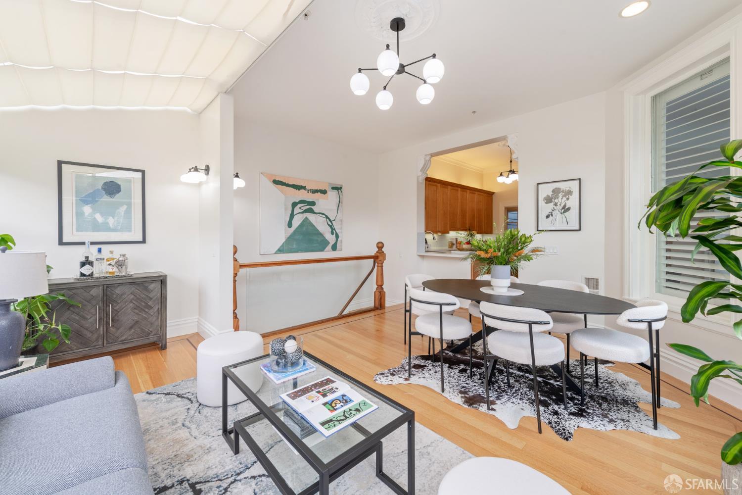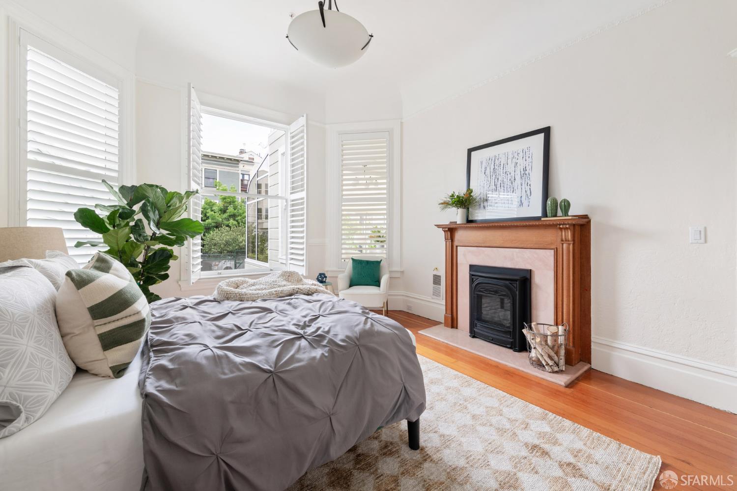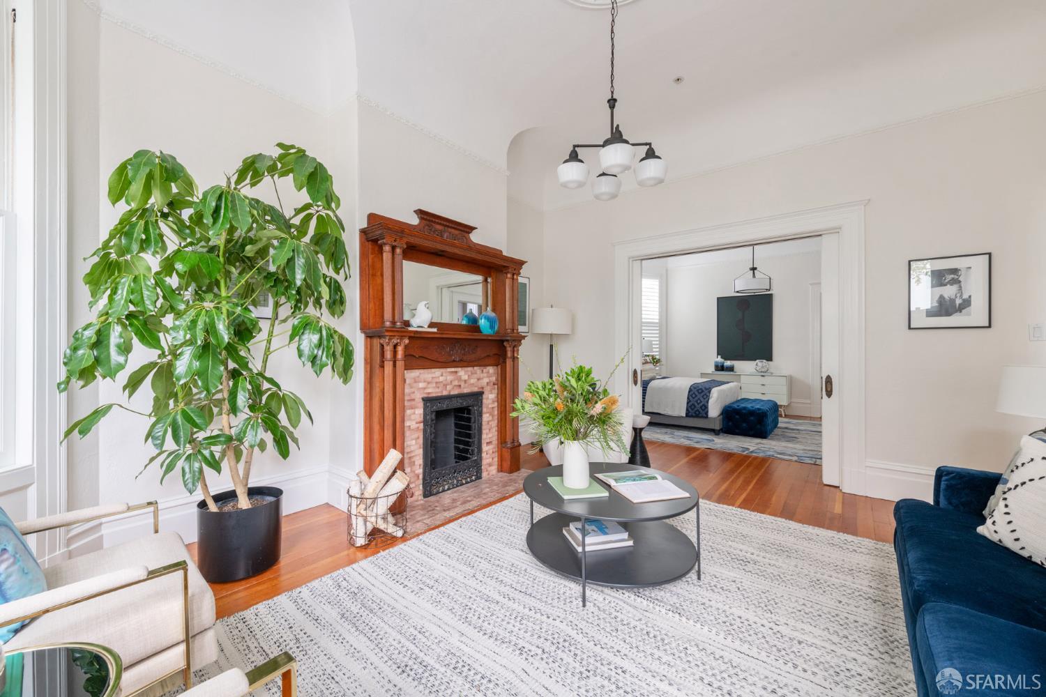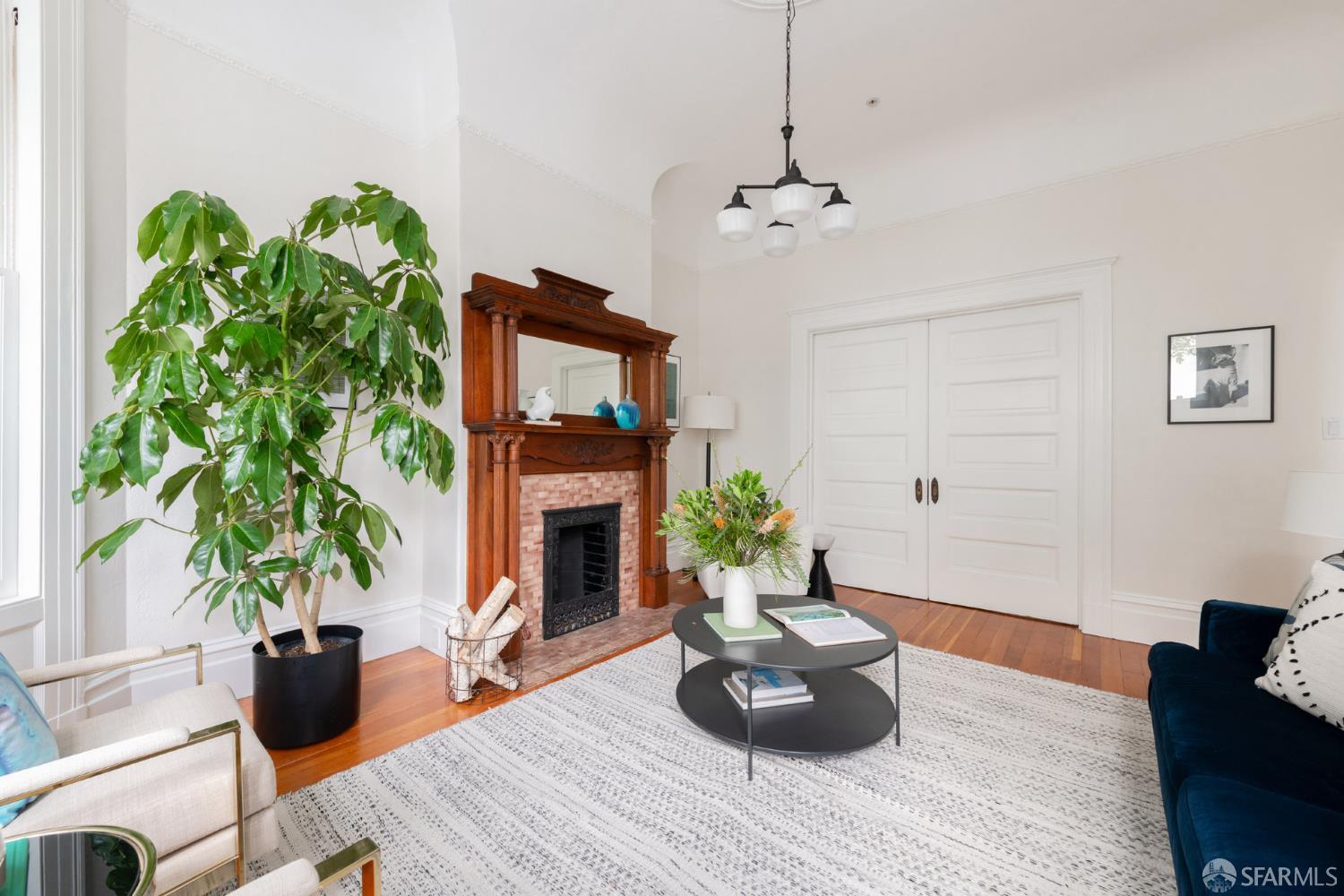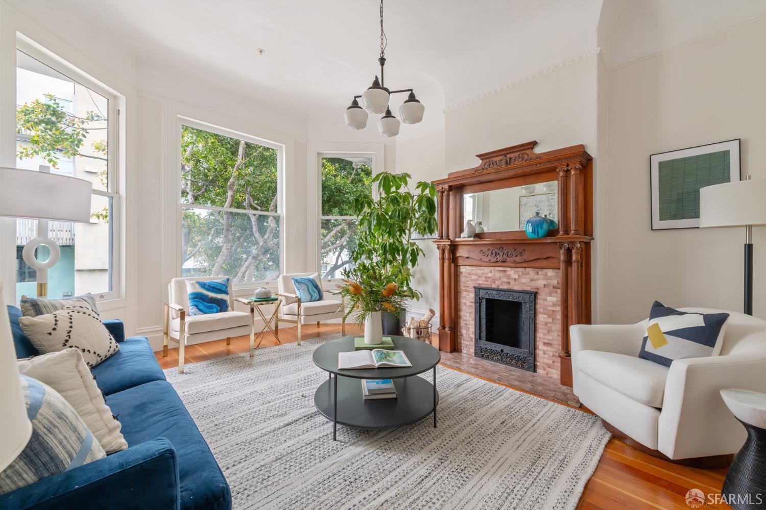 Set within a Victorian in the heart of Hayes Valley, this expansive condo lives like a single-family home, offering 2,961 square feet of light-filled living space across two full levels. Timeless architectural detail, thoughtful updates, and an exceptional sense of scale define the home throughout. Soaring 12+ foot ceilings, rich period craftsmanship, and beautifully preserved hardwood floors create a warm and elegant backdrop. A grand double parlor welcomes you with impressive proportions and abundant natural light ideal for both entertaining and everyday living. The updated kitchen features custom cabinetry and blends seamlessly with the home’s historic character. The residence offers 4 spacious bedrooms and 2 bathrooms, including a distinctive octagonal primary suite with a gas fireplace, walk-in closet, and sunny south-facing windows. At the rear of the home, a stunning glass atrium room overlooks the garden and quiet Lily Alley, offering rare privacy with unobstructed outlooks an ideal space for relaxing or working from home. The upper level is fully finished and provides exceptional flexibility, with ample space for a home office, media room, gym, or additional guest accommodations making the home feel even more expansive and versatile. Additional highlights include deeded, gated off-street parking and a well-maintained, boutique 3-unit HOA with long-term owners. Ideally located with easy access to public transportation, major commuting routes, and the vibrant shops and restaurants of Hayes Valley, this is a rare opportunity to own a truly special San Francisco home.