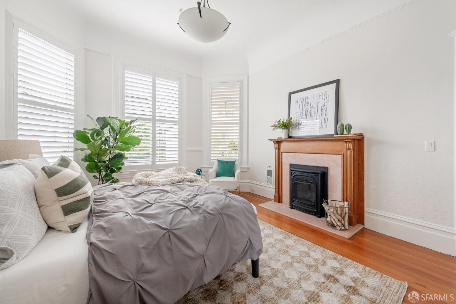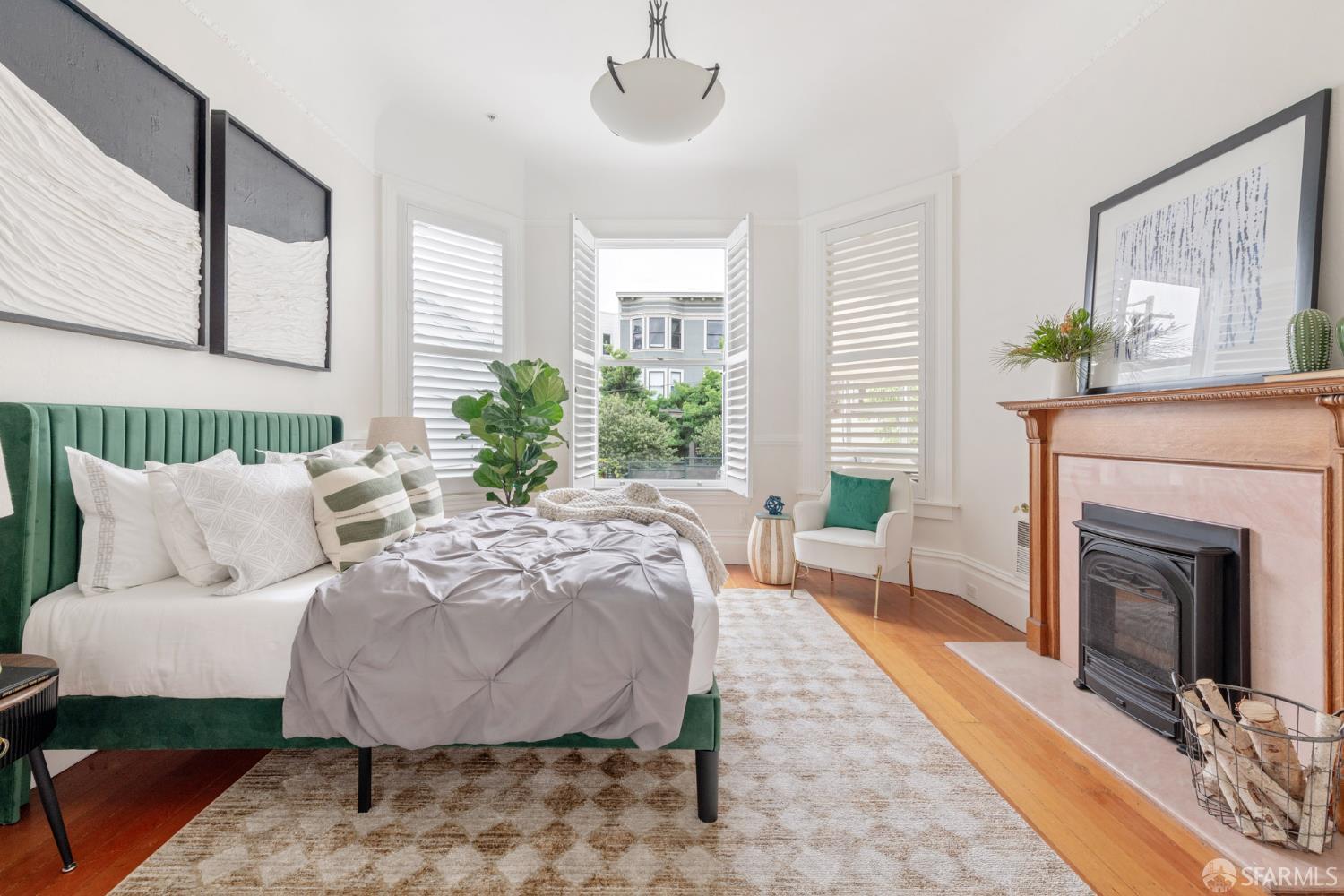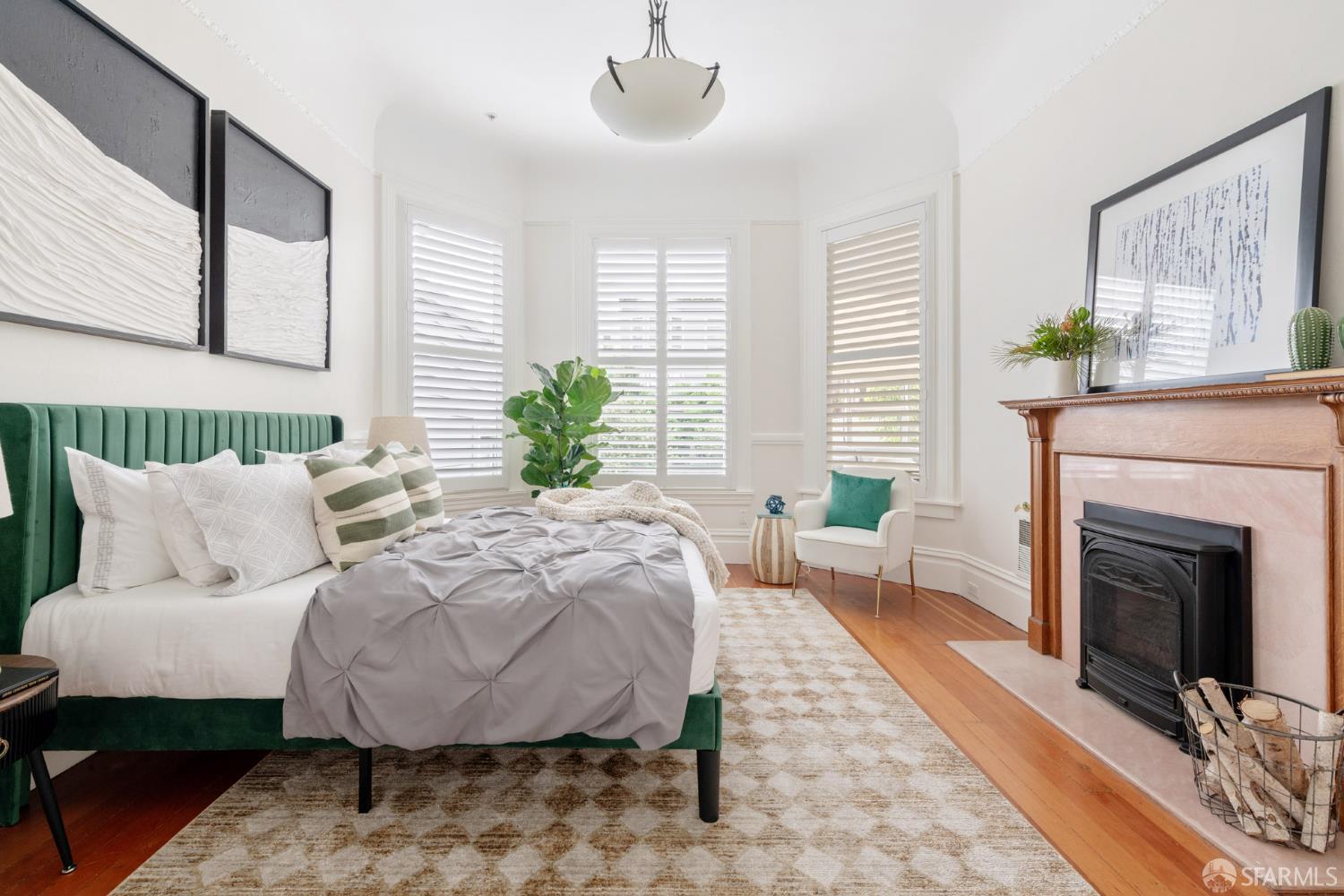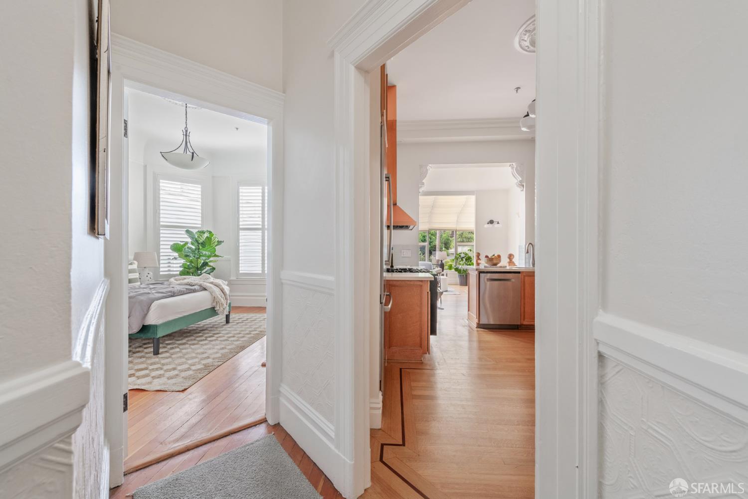 Set within a Victorian in the heart of Hayes Valley, this expansive condo lives like a single-family home, offering 2,961 square feet of light-filled living space across two full levels. Timeless architectural detail, thoughtful updates, and an exceptional sense of scale define the home throughout. Soaring 12+ foot ceilings, rich period craftsmanship, and beautifully preserved hardwood floors create a warm and elegant backdrop. A grand double parlor welcomes you with impressive proportions and abundant natural light ideal for both entertaining and everyday living. The updated kitchen features custom cabinetry and blends seamlessly with the home’s historic character. The residence offers 4 spacious bedrooms and 2 bathrooms, including a distinctive octagonal primary suite with a gas fireplace, walk-in closet, and sunny south-facing windows. At the rear of the home, a stunning glass atrium room overlooks the garden and quiet Lily Alley, offering rare privacy with unobstructed outlooks an ideal space for relaxing or working from home. The upper level is fully finished and provides exceptional flexibility, with ample space for a home office, media room, gym, or additional guest accommodations making the home feel even more expansive and versatile. Additional highlights include deeded, gated off-street parking and a well-maintained, boutique 3-unit HOA with long-term owners. Ideally located with easy access to public transportation, major commuting routes, and the vibrant shops and restaurants of Hayes Valley, this is a rare opportunity to own a truly special San Francisco home.