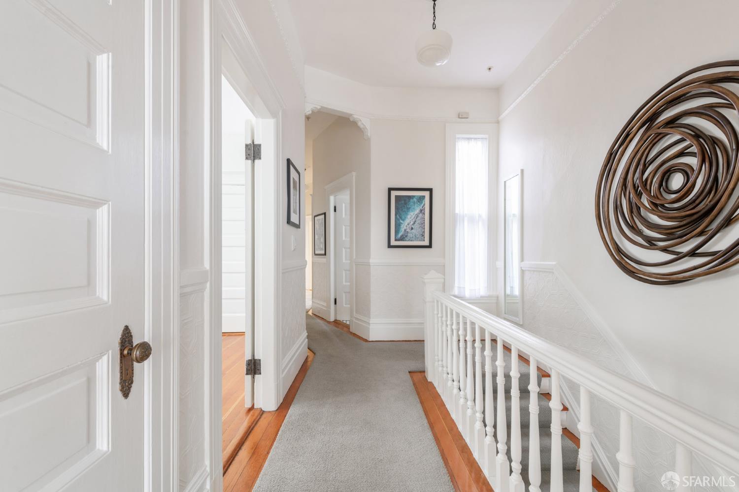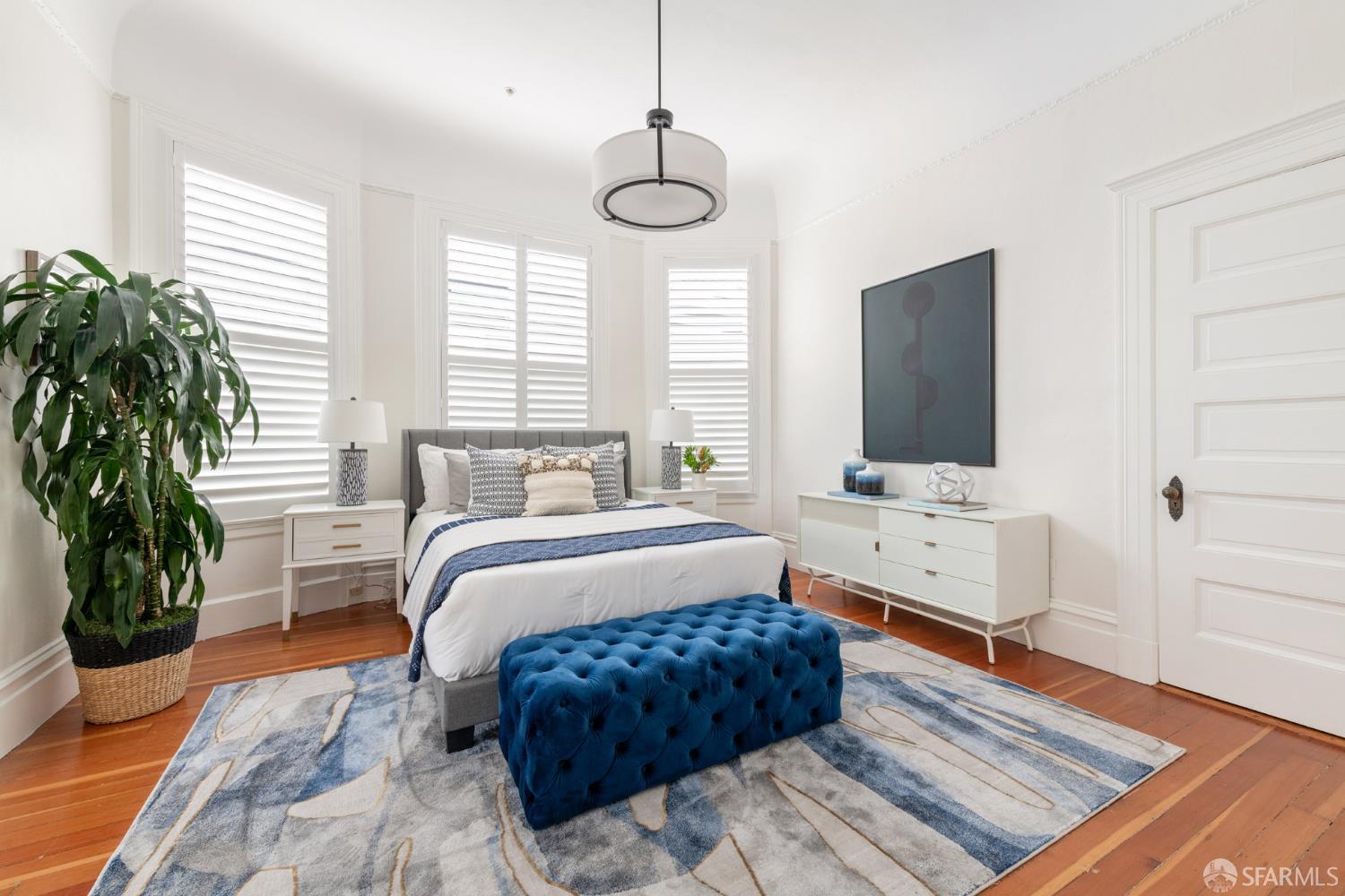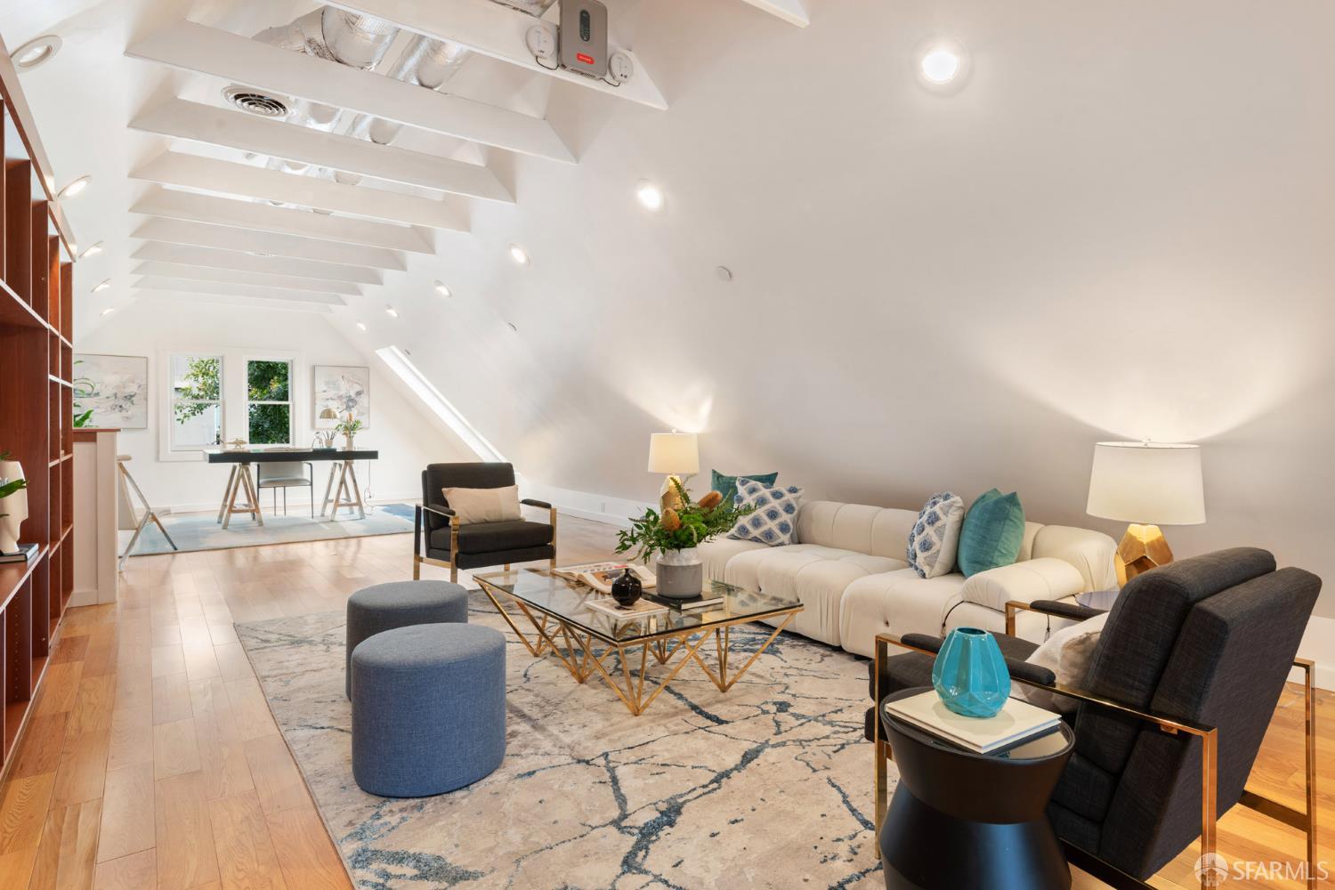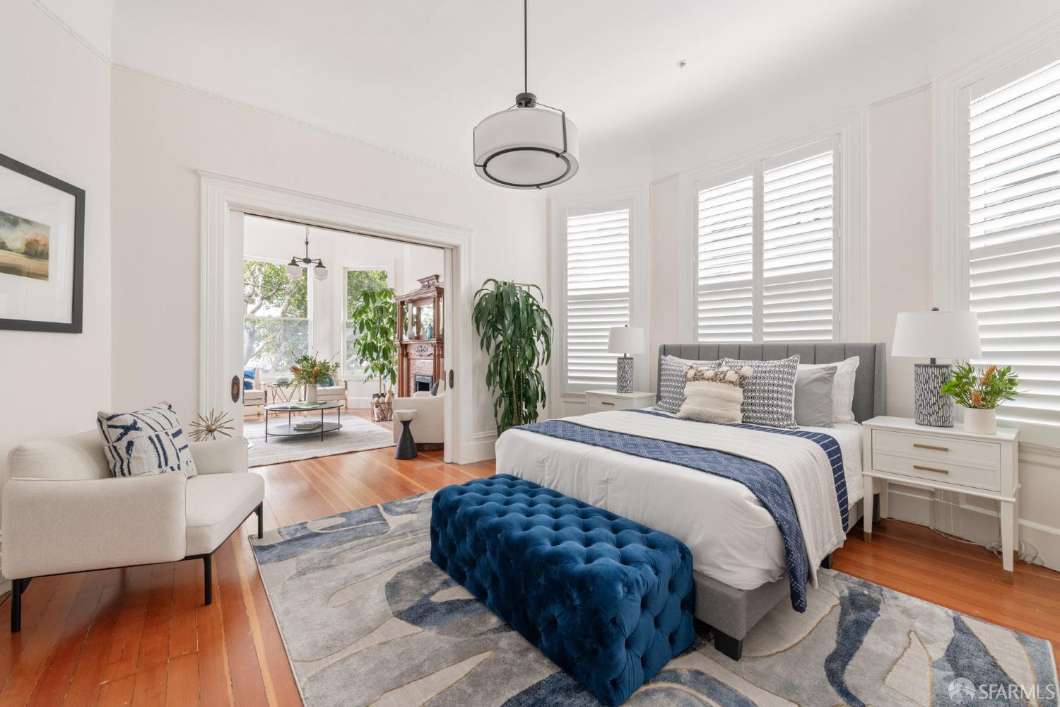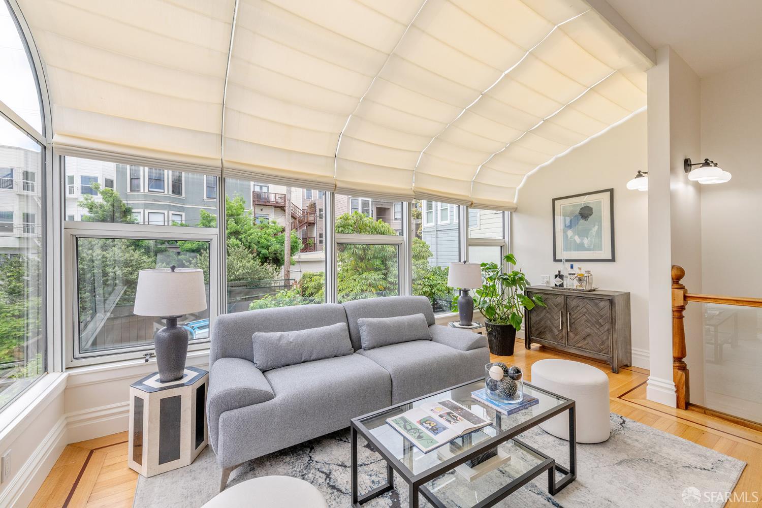 Set within a Victorian in the heart of Hayes Valley, this expansive condo lives like a single-family home, offering 2,961 square feet of light-filled living space across two full levels. Timeless architectural detail, thoughtful updates, and an exceptional sense of scale define the home throughout. Soaring 12+ foot ceilings, rich period craftsmanship, and beautifully preserved hardwood floors create a warm and elegant backdrop. A grand double parlor welcomes you with impressive proportions and abundant natural light ideal for both entertaining and everyday living. The updated kitchen features custom cabinetry and blends seamlessly with the home’s historic character. The residence offers 4 spacious bedrooms and 2 bathrooms, including a distinctive octagonal primary suite with a gas fireplace, walk-in closet, and sunny south-facing windows. At the rear of the home, a stunning glass atrium room overlooks the garden and quiet Lily Alley, offering rare privacy with unobstructed outlooks an ideal space for relaxing or working from home. The upper level is fully finished and provides exceptional flexibility, with ample space for a home office, media room, gym, or additional guest accommodations making the home feel even more expansive and versatile. Additional highlights include deeded, gated off-street parking and a well-maintained, boutique 3-unit HOA with long-term owners. Ideally located with easy access to public transportation, major commuting routes, and the vibrant shops and restaurants of Hayes Valley, this is a rare opportunity to own a truly special San Francisco home.