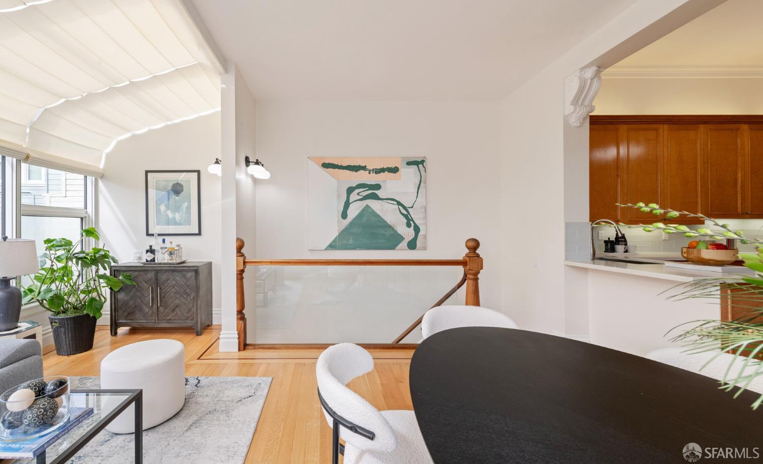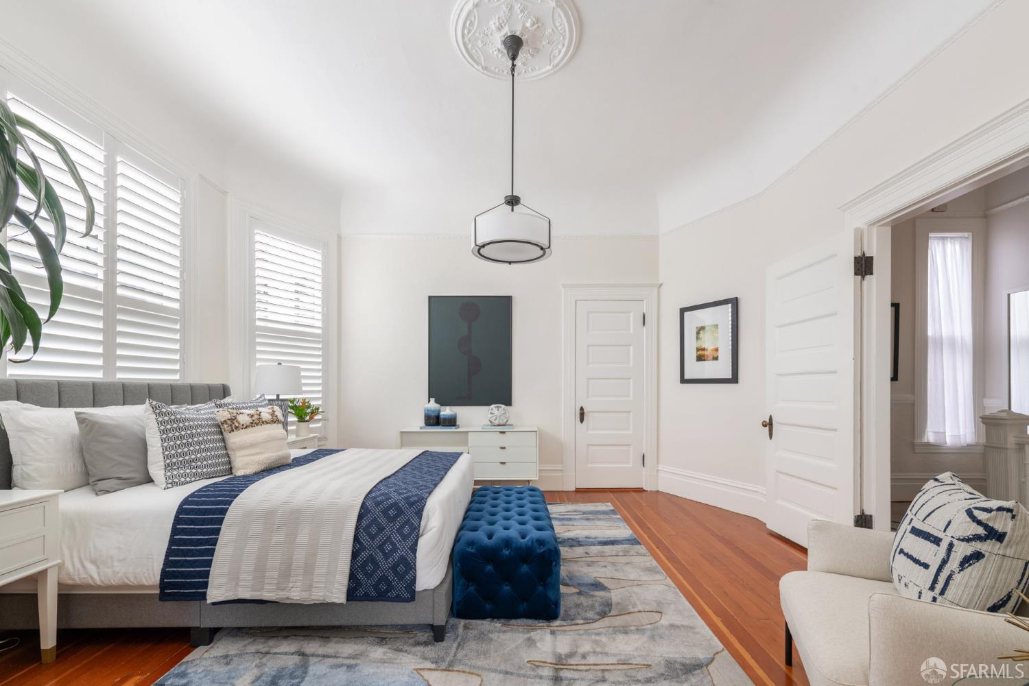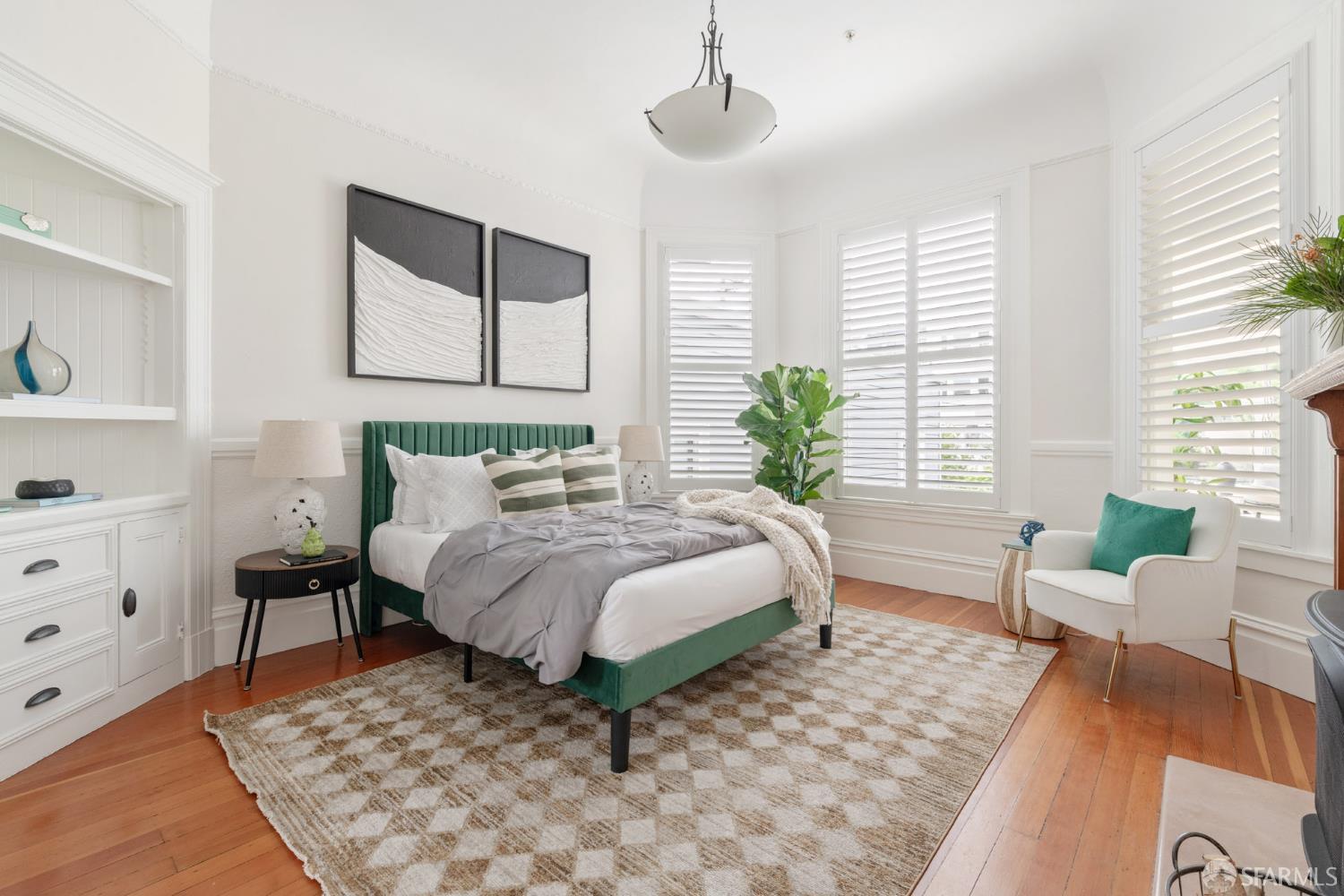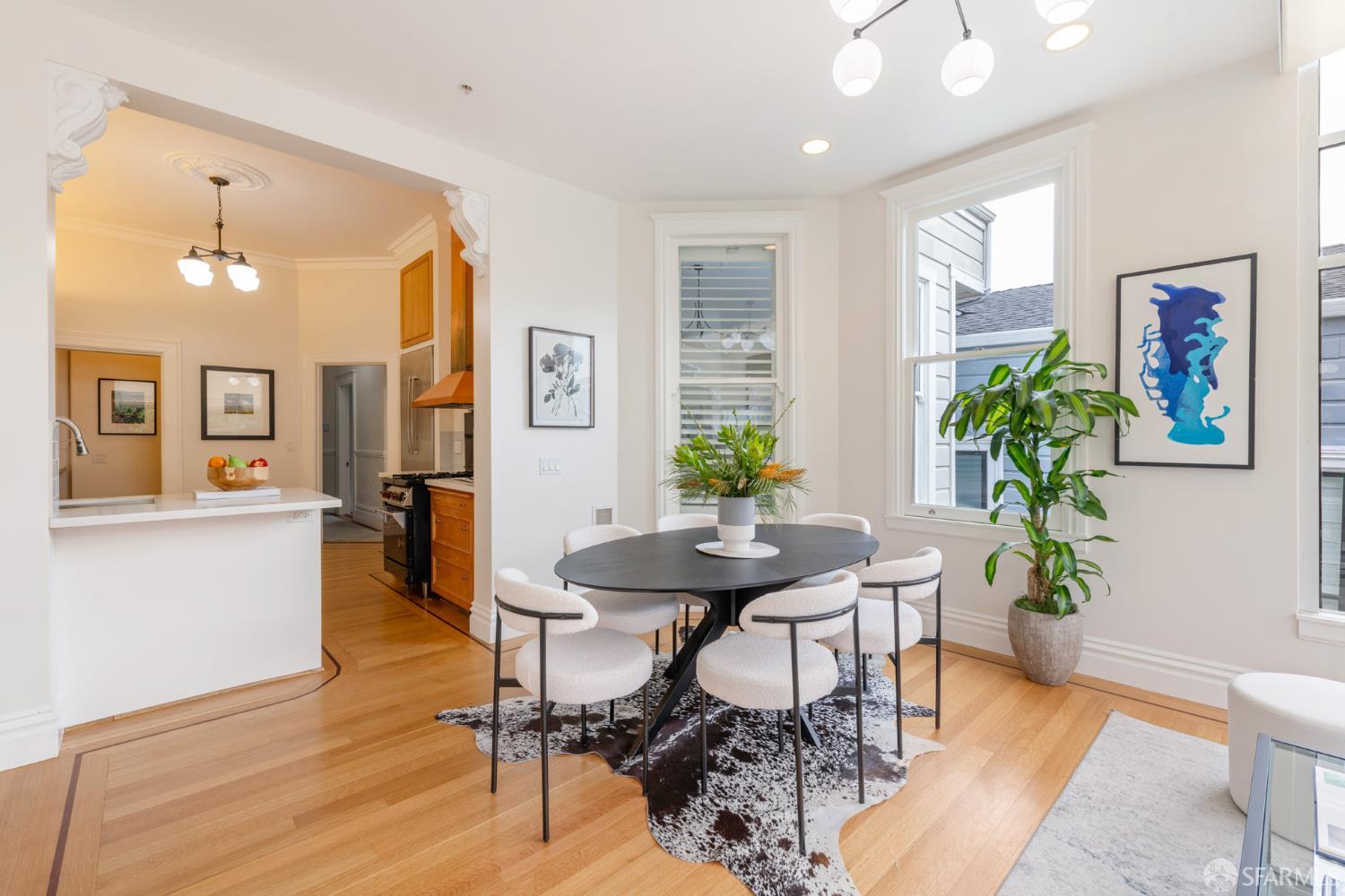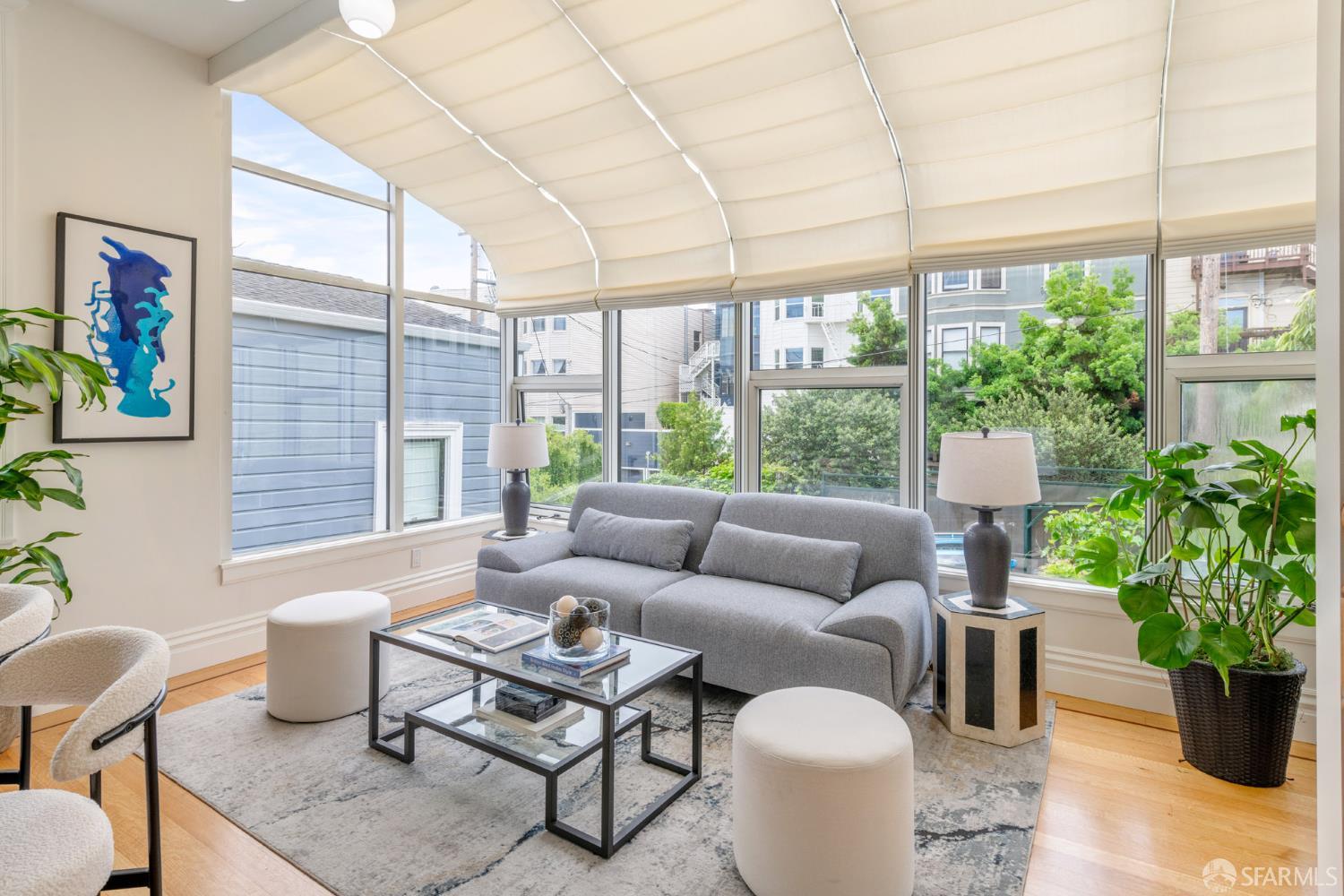 Set within a Victorian in the heart of Hayes Valley, this expansive condo lives like a single-family home, offering 2,961 square feet of light-filled living space across two full levels. Timeless architectural detail, thoughtful updates, and an exceptional sense of scale define the home throughout. Soaring 12+ foot ceilings, rich period craftsmanship, and beautifully preserved hardwood floors create a warm and elegant backdrop. A grand double parlor welcomes you with impressive proportions and abundant natural light ideal for both entertaining and everyday living. The updated kitchen features custom cabinetry and blends seamlessly with the home’s historic character. The residence offers 4 spacious bedrooms and 2 bathrooms, including a distinctive octagonal primary suite with a gas fireplace, walk-in closet, and sunny south-facing windows. At the rear of the home, a stunning glass atrium room overlooks the garden and quiet Lily Alley, offering rare privacy with unobstructed outlooks an ideal space for relaxing or working from home. The upper level is fully finished and provides exceptional flexibility, with ample space for a home office, media room, gym, or additional guest accommodations making the home feel even more expansive and versatile. Additional highlights include deeded, gated off-street parking and a well-maintained, boutique 3-unit HOA with long-term owners. Ideally located with easy access to public transportation, major commuting routes, and the vibrant shops and restaurants of Hayes Valley, this is a rare opportunity to own a truly special San Francisco home.