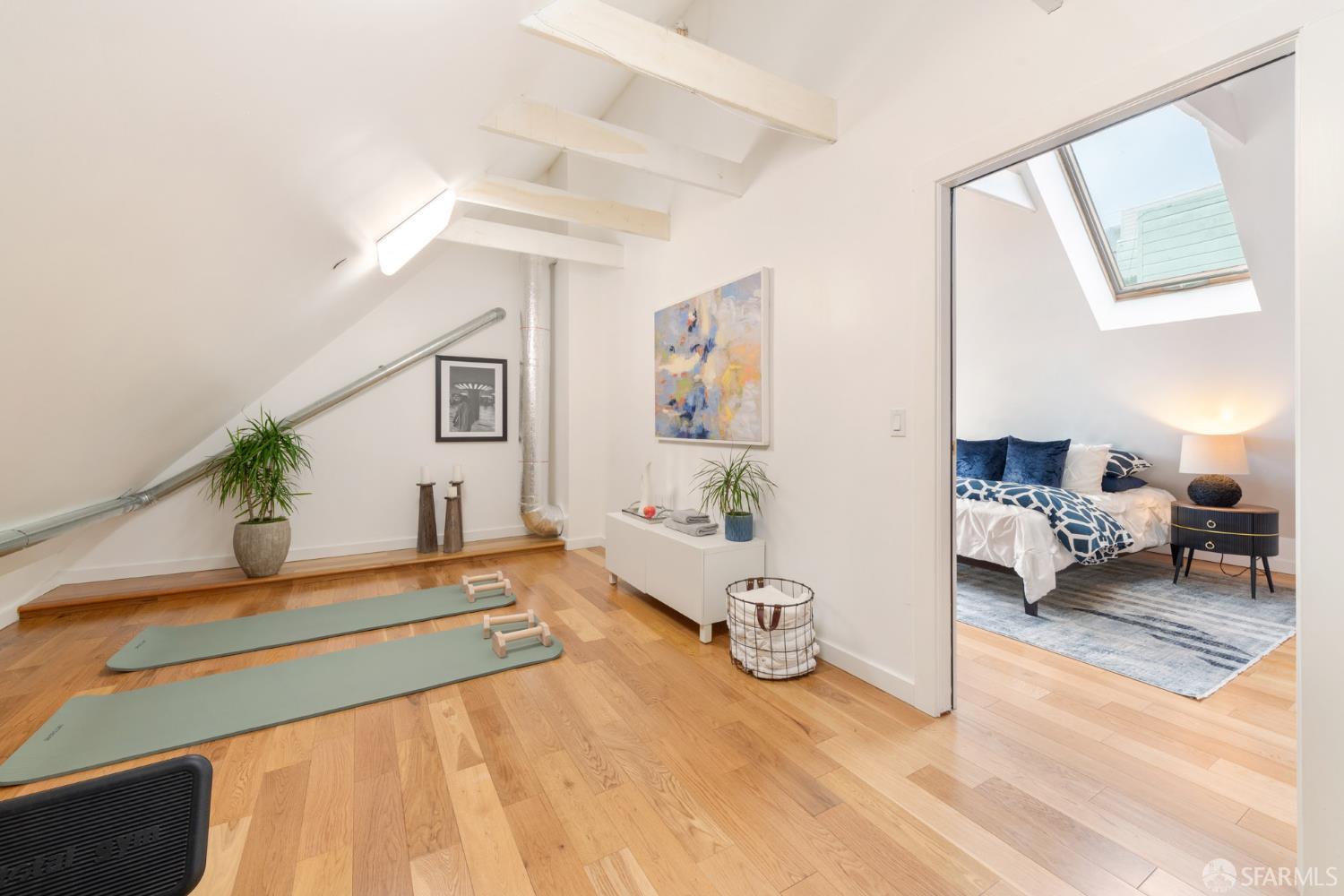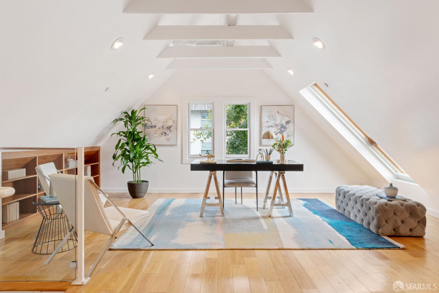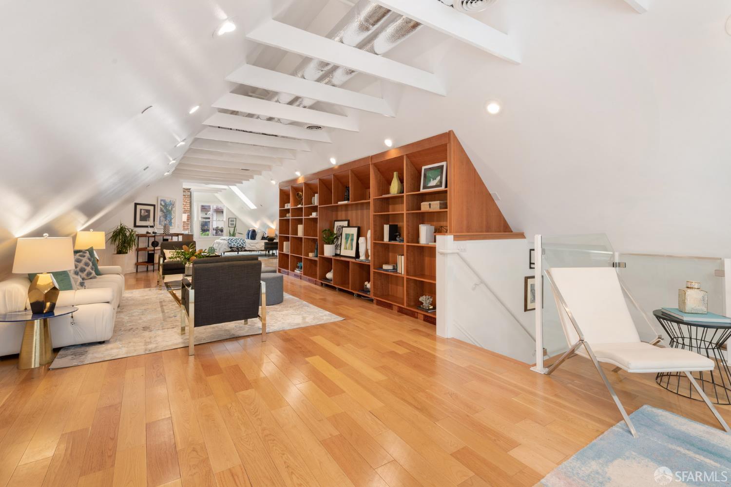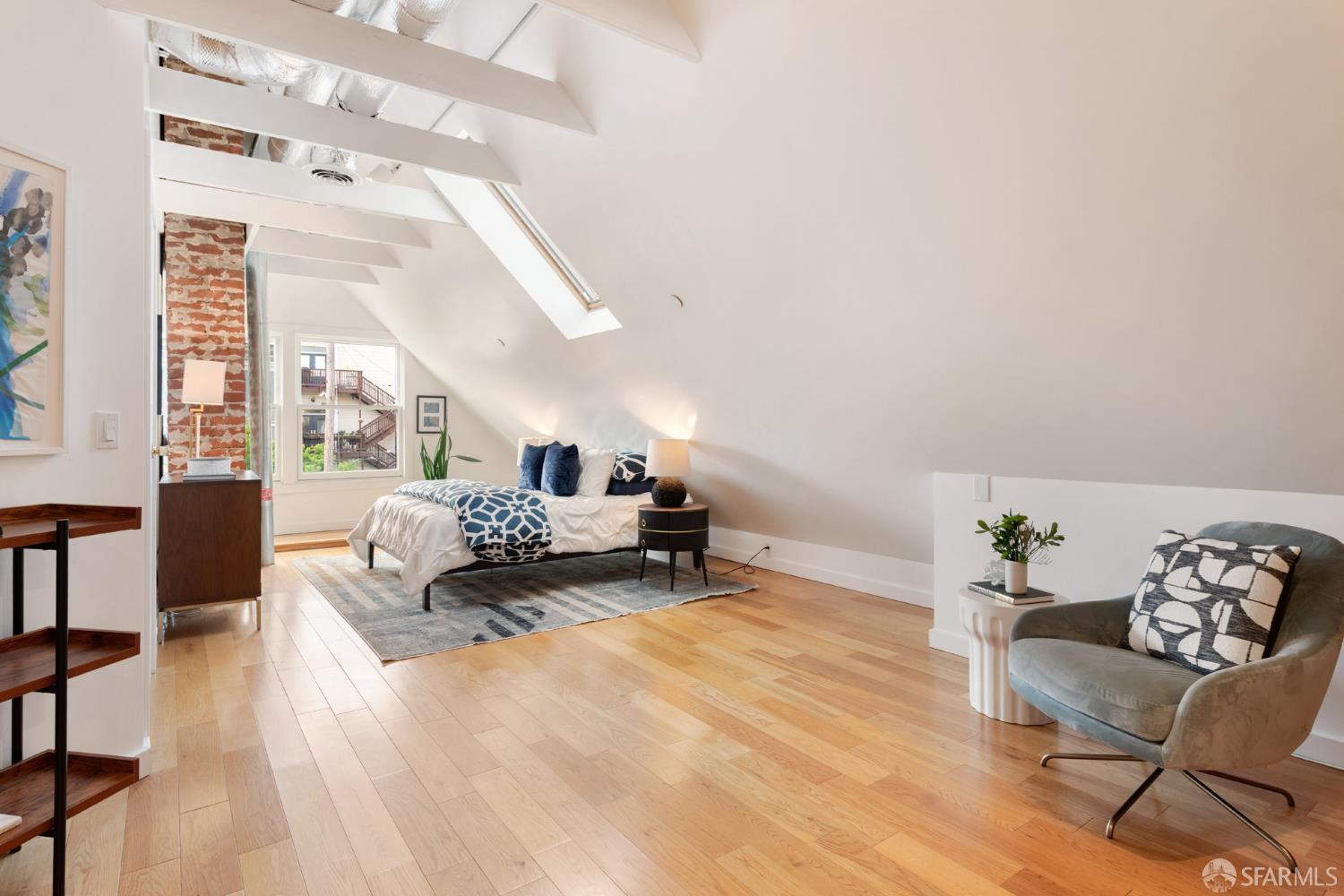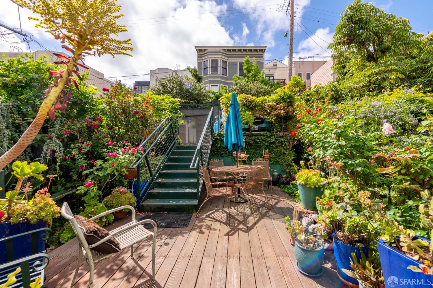 Set within a Victorian in the heart of Hayes Valley, this expansive condo lives like a single-family home, offering 2,961 square feet of light-filled living space across two full levels. Timeless architectural detail, thoughtful updates, and an exceptional sense of scale define the home throughout. Soaring 12+ foot ceilings, rich period craftsmanship, and beautifully preserved hardwood floors create a warm and elegant backdrop. A grand double parlor welcomes you with impressive proportions and abundant natural light ideal for both entertaining and everyday living. The updated kitchen features custom cabinetry and blends seamlessly with the home’s historic character. The residence offers 4 spacious bedrooms and 2 bathrooms, including a distinctive octagonal primary suite with a gas fireplace, walk-in closet, and sunny south-facing windows. At the rear of the home, a stunning glass atrium room overlooks the garden and quiet Lily Alley, offering rare privacy with unobstructed outlooks an ideal space for relaxing or working from home. The upper level is fully finished and provides exceptional flexibility, with ample space for a home office, media room, gym, or additional guest accommodations making the home feel even more expansive and versatile. Additional highlights include deeded, gated off-street parking and a well-maintained, boutique 3-unit HOA with long-term owners. Ideally located with easy access to public transportation, major commuting routes, and the vibrant shops and restaurants of Hayes Valley, this is a rare opportunity to own a truly special San Francisco home.