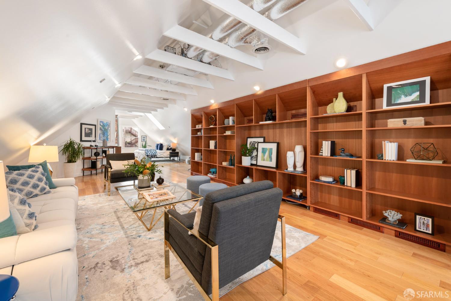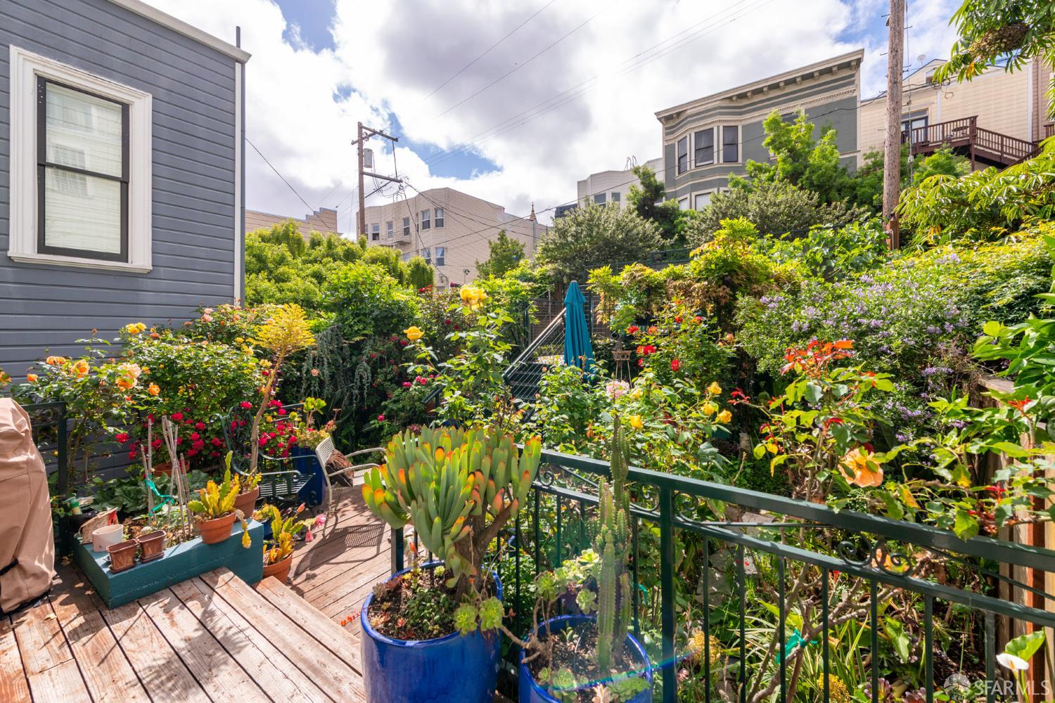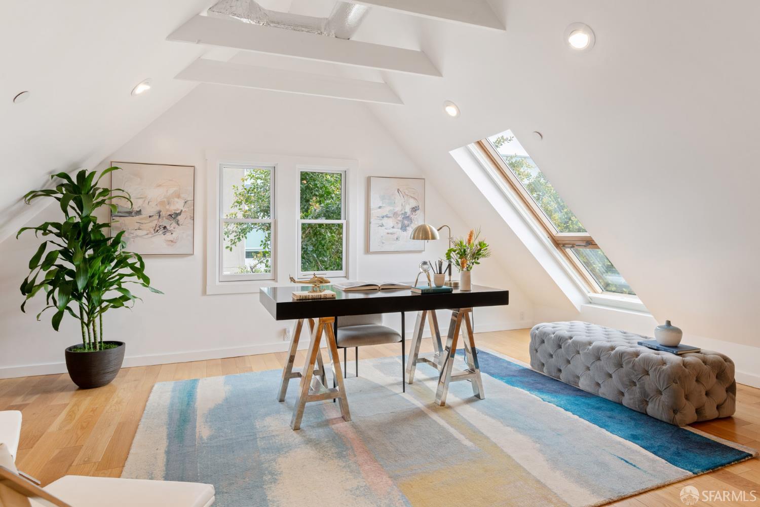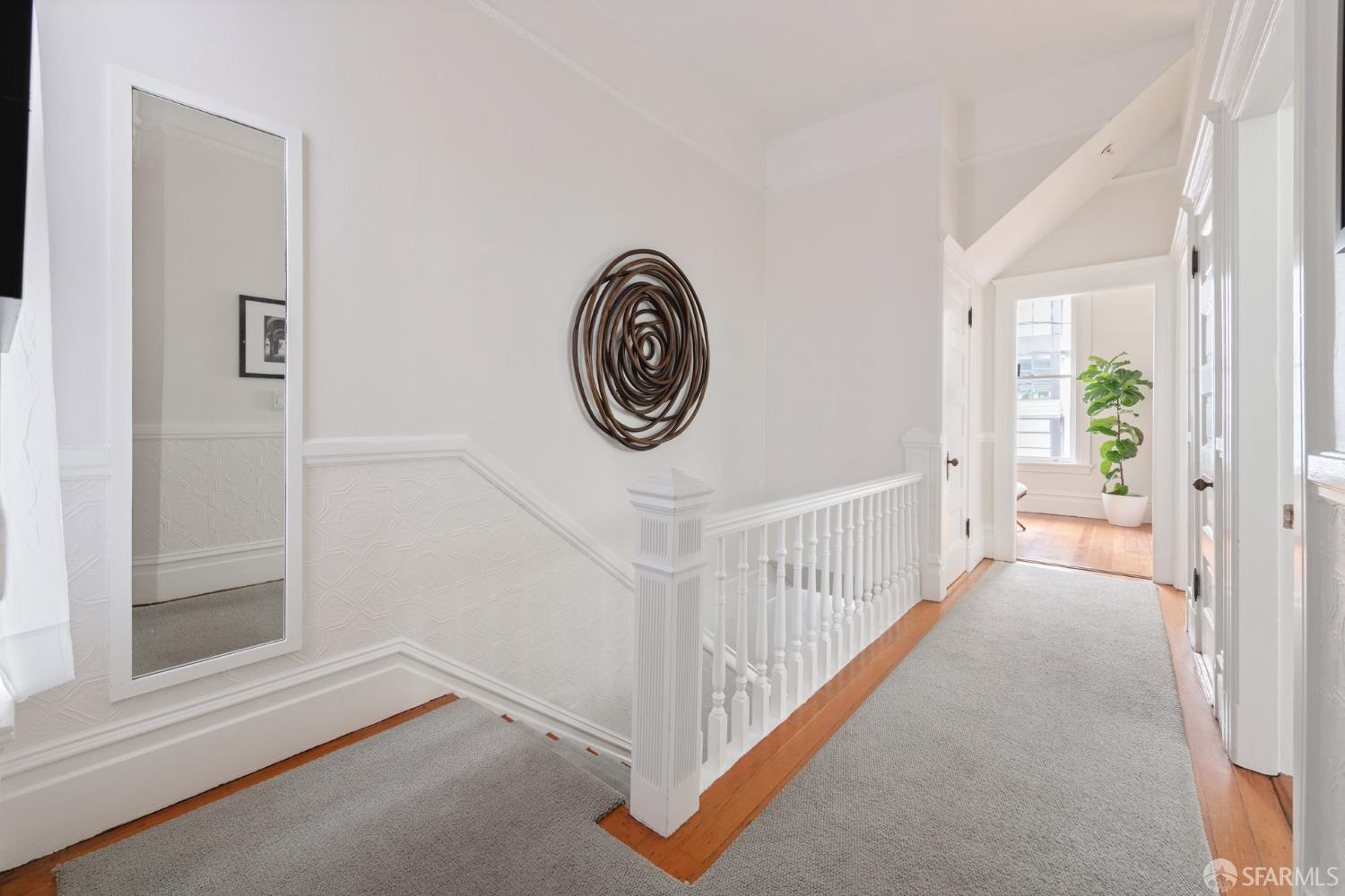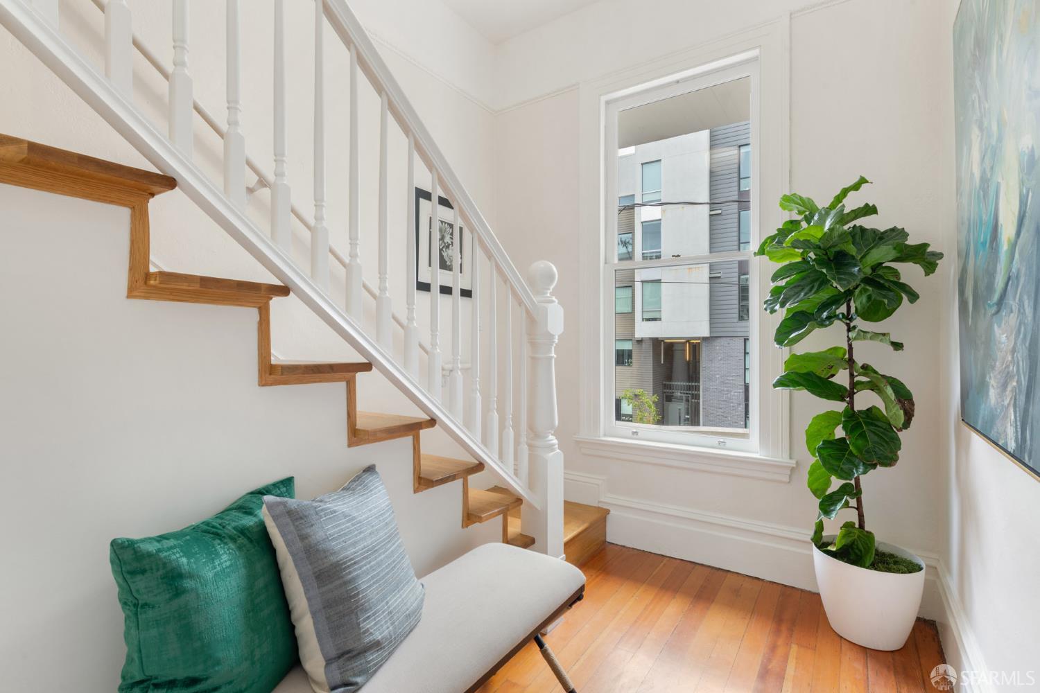 Set within a Victorian in the heart of Hayes Valley, this expansive condo lives like a single-family home, offering 2,961 square feet of light-filled living space across two full levels. Timeless architectural detail, thoughtful updates, and an exceptional sense of scale define the home throughout. Soaring 12+ foot ceilings, rich period craftsmanship, and beautifully preserved hardwood floors create a warm and elegant backdrop. A grand double parlor welcomes you with impressive proportions and abundant natural light ideal for both entertaining and everyday living. The updated kitchen features custom cabinetry and blends seamlessly with the home’s historic character. The residence offers 4 spacious bedrooms and 2 bathrooms, including a distinctive octagonal primary suite with a gas fireplace, walk-in closet, and sunny south-facing windows. At the rear of the home, a stunning glass atrium room overlooks the garden and quiet Lily Alley, offering rare privacy with unobstructed outlooks an ideal space for relaxing or working from home. The upper level is fully finished and provides exceptional flexibility, with ample space for a home office, media room, gym, or additional guest accommodations making the home feel even more expansive and versatile. Additional highlights include deeded, gated off-street parking and a well-maintained, boutique 3-unit HOA with long-term owners. Ideally located with easy access to public transportation, major commuting routes, and the vibrant shops and restaurants of Hayes Valley, this is a rare opportunity to own a truly special San Francisco home.