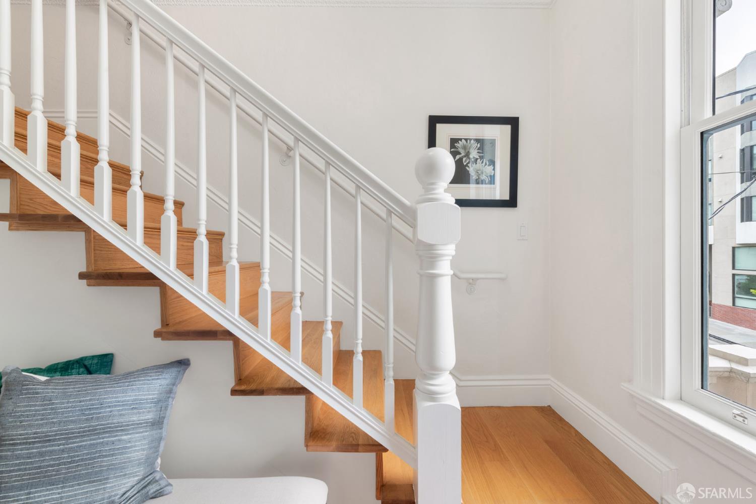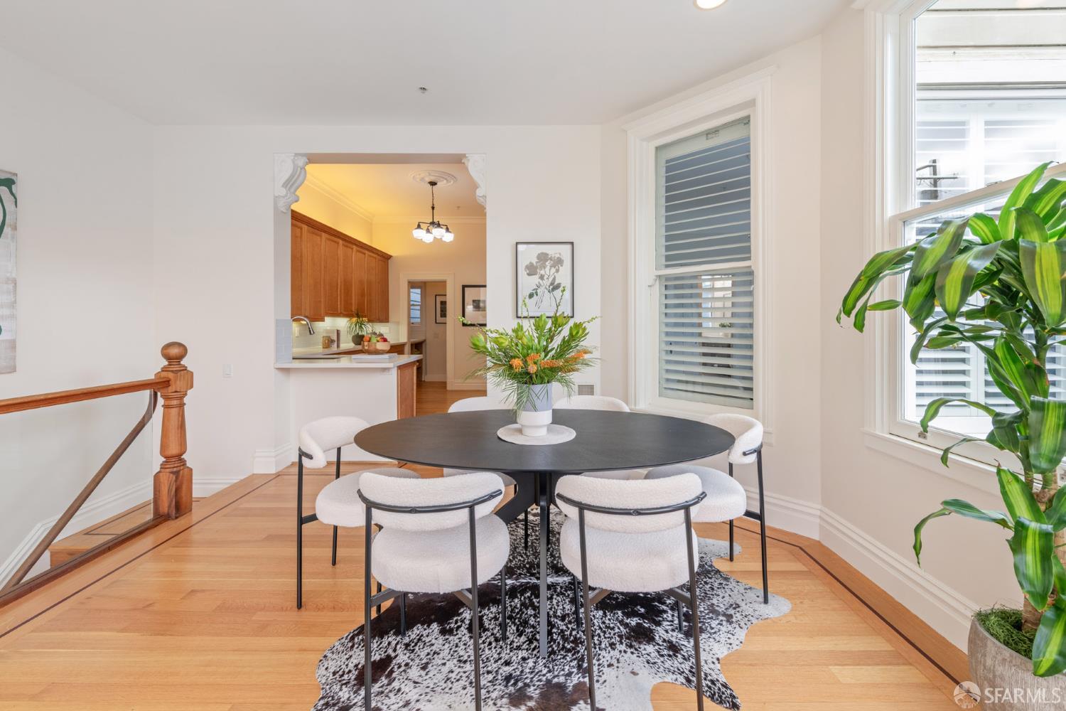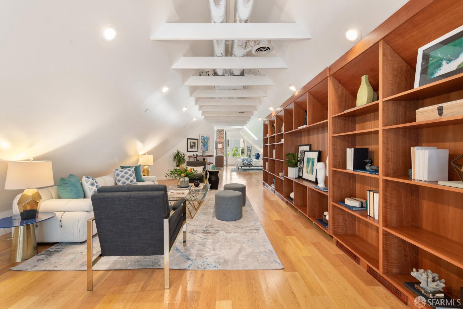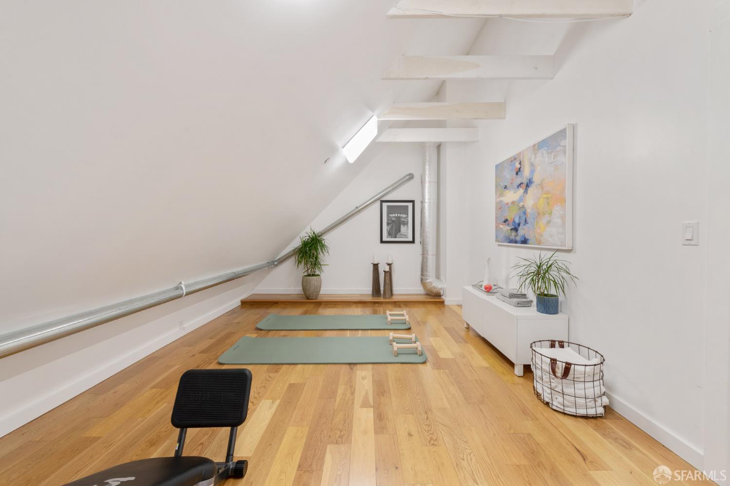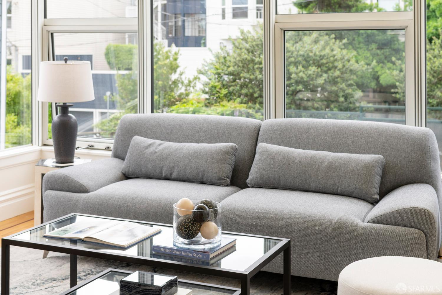 Set within a Victorian in the heart of Hayes Valley, this expansive condo lives like a single-family home, offering 2,961 square feet of light-filled living space across two full levels. Timeless architectural detail, thoughtful updates, and an exceptional sense of scale define the home throughout. Soaring 12+ foot ceilings, rich period craftsmanship, and beautifully preserved hardwood floors create a warm and elegant backdrop. A grand double parlor welcomes you with impressive proportions and abundant natural light ideal for both entertaining and everyday living. The updated kitchen features custom cabinetry and blends seamlessly with the home’s historic character. The residence offers 4 spacious bedrooms and 2 bathrooms, including a distinctive octagonal primary suite with a gas fireplace, walk-in closet, and sunny south-facing windows. At the rear of the home, a stunning glass atrium room overlooks the garden and quiet Lily Alley, offering rare privacy with unobstructed outlooks an ideal space for relaxing or working from home. The upper level is fully finished and provides exceptional flexibility, with ample space for a home office, media room, gym, or additional guest accommodations making the home feel even more expansive and versatile. Additional highlights include deeded, gated off-street parking and a well-maintained, boutique 3-unit HOA with long-term owners. Ideally located with easy access to public transportation, major commuting routes, and the vibrant shops and restaurants of Hayes Valley, this is a rare opportunity to own a truly special San Francisco home.