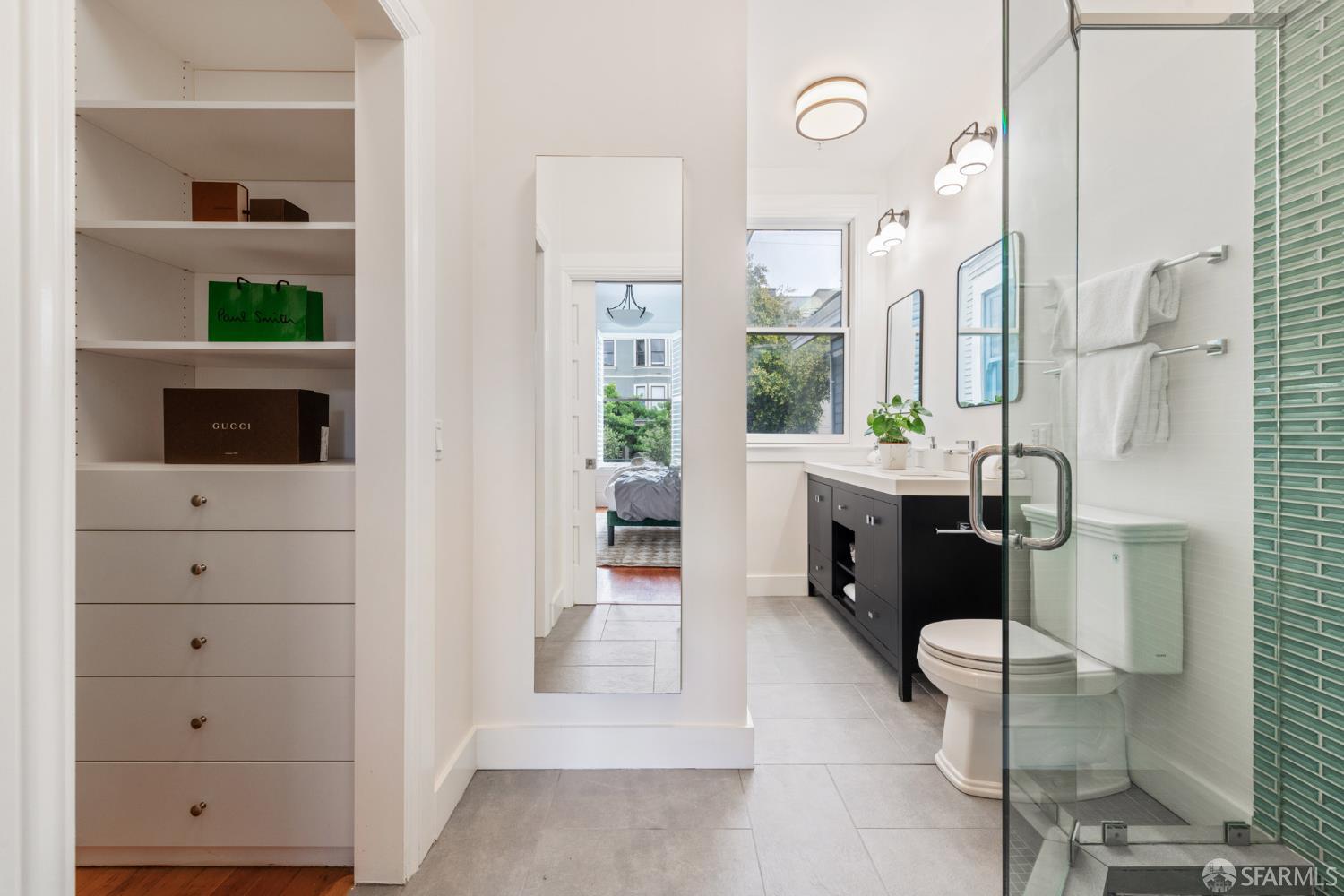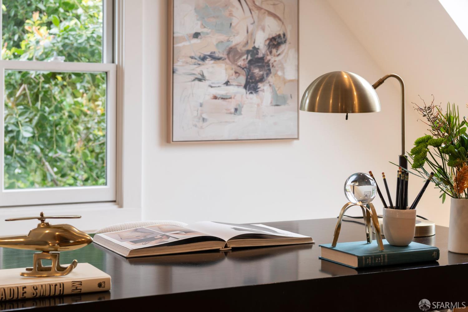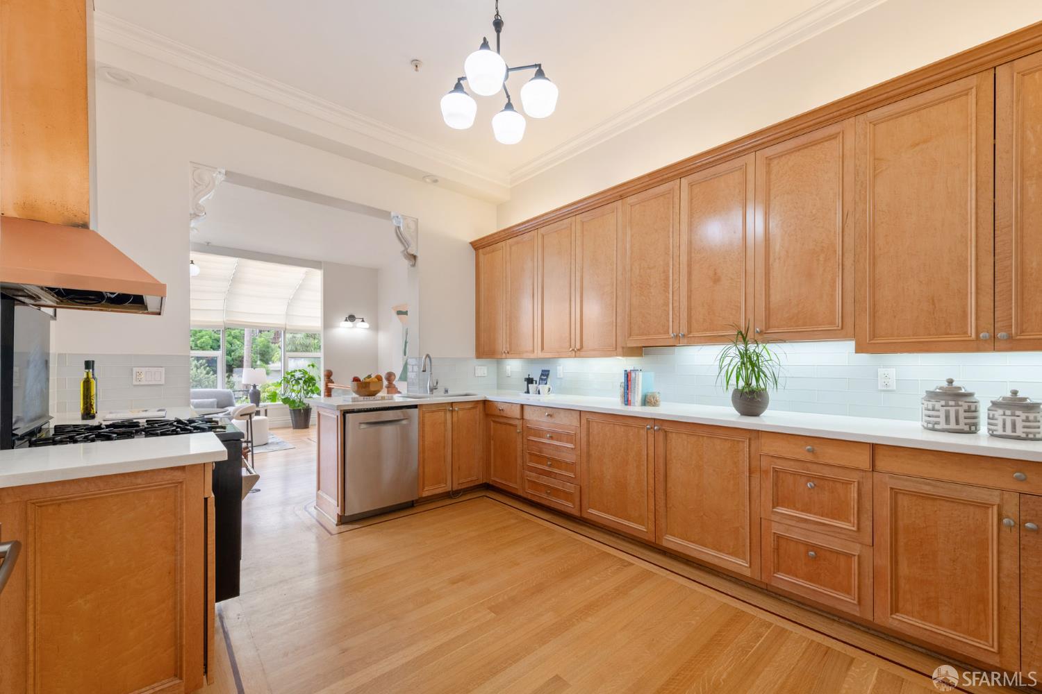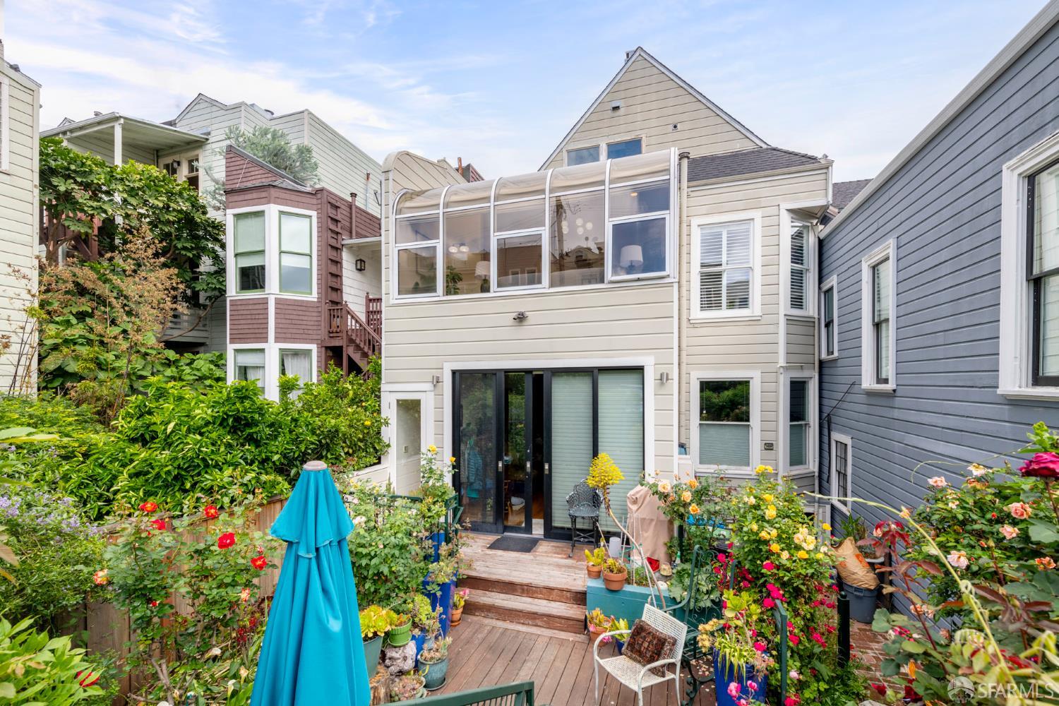 Set within a Victorian in the heart of Hayes Valley, this expansive condo lives like a single-family home, offering 2,961 square feet of light-filled living space across two full levels. Timeless architectural detail, thoughtful updates, and an exceptional sense of scale define the home throughout. Soaring 12+ foot ceilings, rich period craftsmanship, and beautifully preserved hardwood floors create a warm and elegant backdrop. A grand double parlor welcomes you with impressive proportions and abundant natural light ideal for both entertaining and everyday living. The updated kitchen features custom cabinetry and blends seamlessly with the home’s historic character. The residence offers 4 spacious bedrooms and 2 bathrooms, including a distinctive octagonal primary suite with a gas fireplace, walk-in closet, and sunny south-facing windows. At the rear of the home, a stunning glass atrium room overlooks the garden and quiet Lily Alley, offering rare privacy with unobstructed outlooks an ideal space for relaxing or working from home. The upper level is fully finished and provides exceptional flexibility, with ample space for a home office, media room, gym, or additional guest accommodations making the home feel even more expansive and versatile. Additional highlights include deeded, gated off-street parking and a well-maintained, boutique 3-unit HOA with long-term owners. Ideally located with easy access to public transportation, major commuting routes, and the vibrant shops and restaurants of Hayes Valley, this is a rare opportunity to own a truly special San Francisco home.