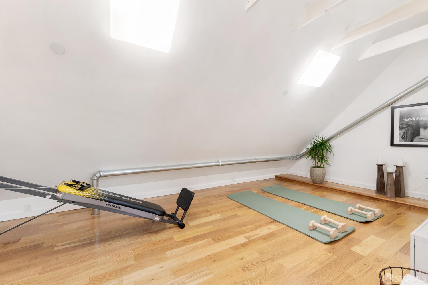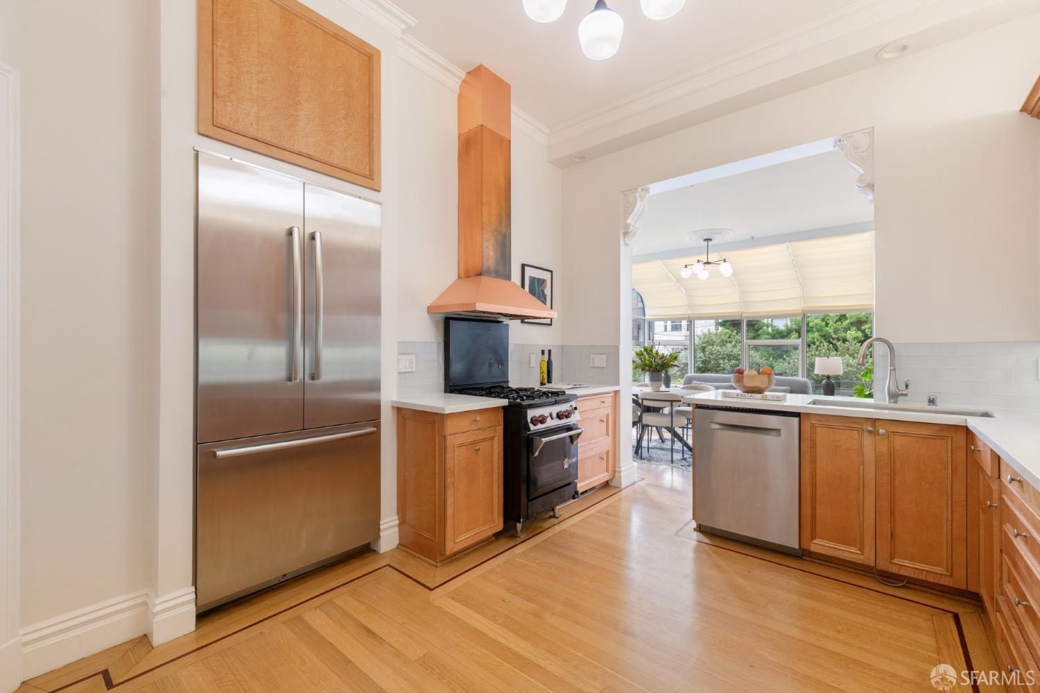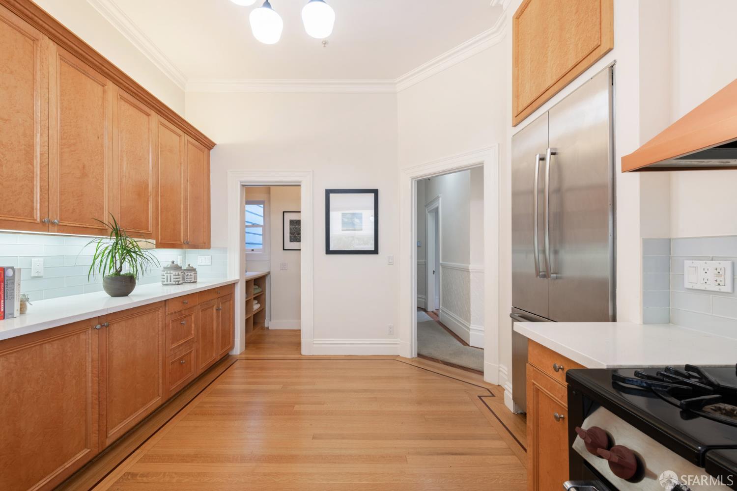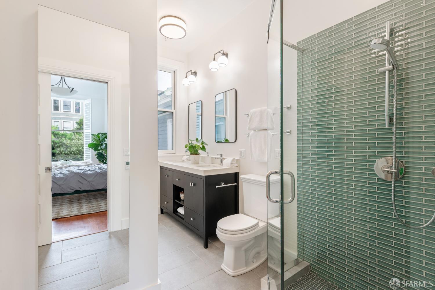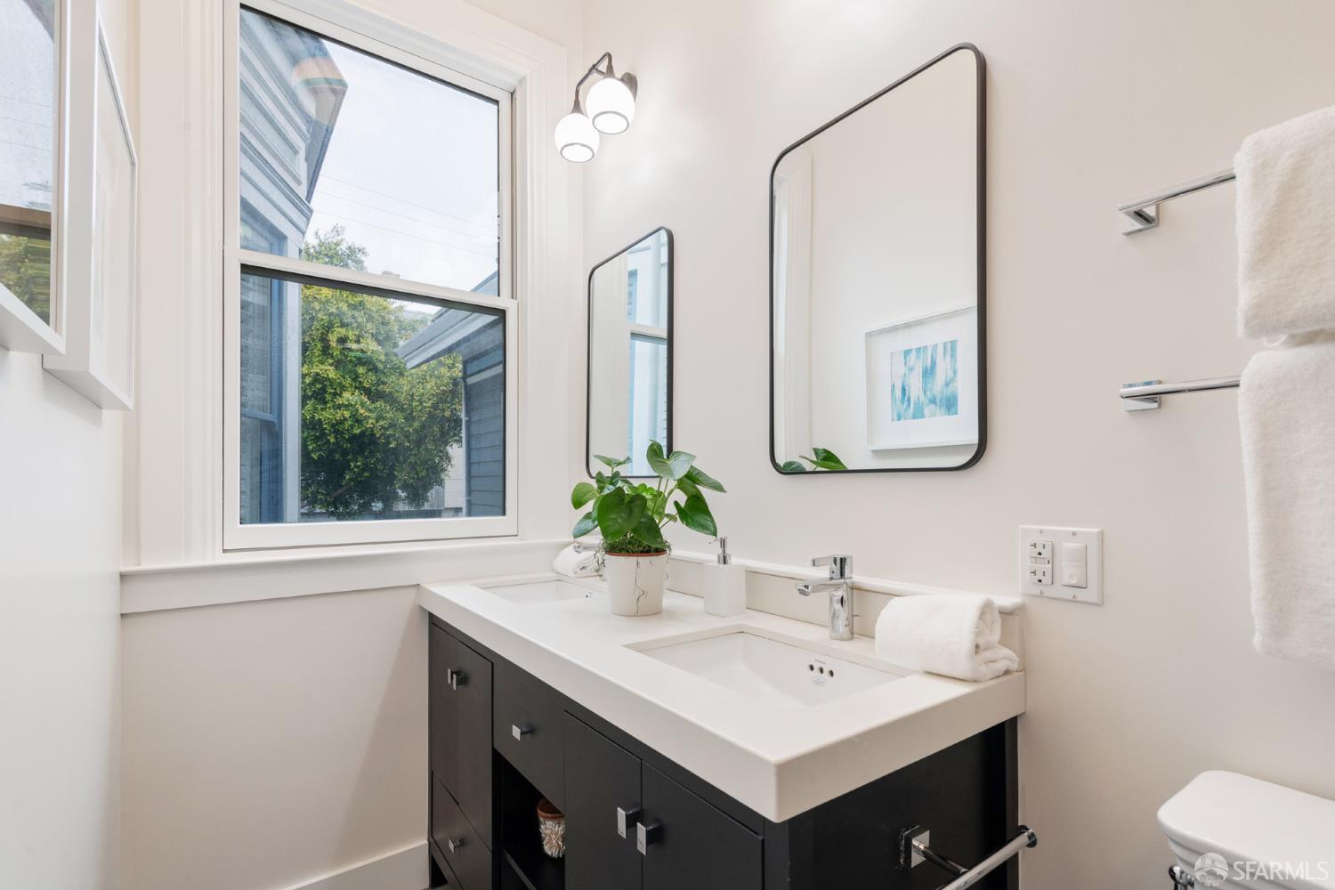 Set within a Victorian in the heart of Hayes Valley, this expansive condo lives like a single-family home, offering 2,961 square feet of light-filled living space across two full levels. Timeless architectural detail, thoughtful updates, and an exceptional sense of scale define the home throughout. Soaring 12+ foot ceilings, rich period craftsmanship, and beautifully preserved hardwood floors create a warm and elegant backdrop. A grand double parlor welcomes you with impressive proportions and abundant natural light ideal for both entertaining and everyday living. The updated kitchen features custom cabinetry and blends seamlessly with the home’s historic character. The residence offers 4 spacious bedrooms and 2 bathrooms, including a distinctive octagonal primary suite with a gas fireplace, walk-in closet, and sunny south-facing windows. At the rear of the home, a stunning glass atrium room overlooks the garden and quiet Lily Alley, offering rare privacy with unobstructed outlooks an ideal space for relaxing or working from home. The upper level is fully finished and provides exceptional flexibility, with ample space for a home office, media room, gym, or additional guest accommodations making the home feel even more expansive and versatile. Additional highlights include deeded, gated off-street parking and a well-maintained, boutique 3-unit HOA with long-term owners. Ideally located with easy access to public transportation, major commuting routes, and the vibrant shops and restaurants of Hayes Valley, this is a rare opportunity to own a truly special San Francisco home.