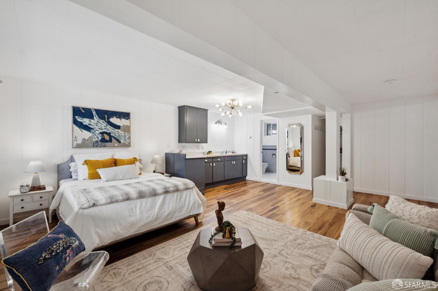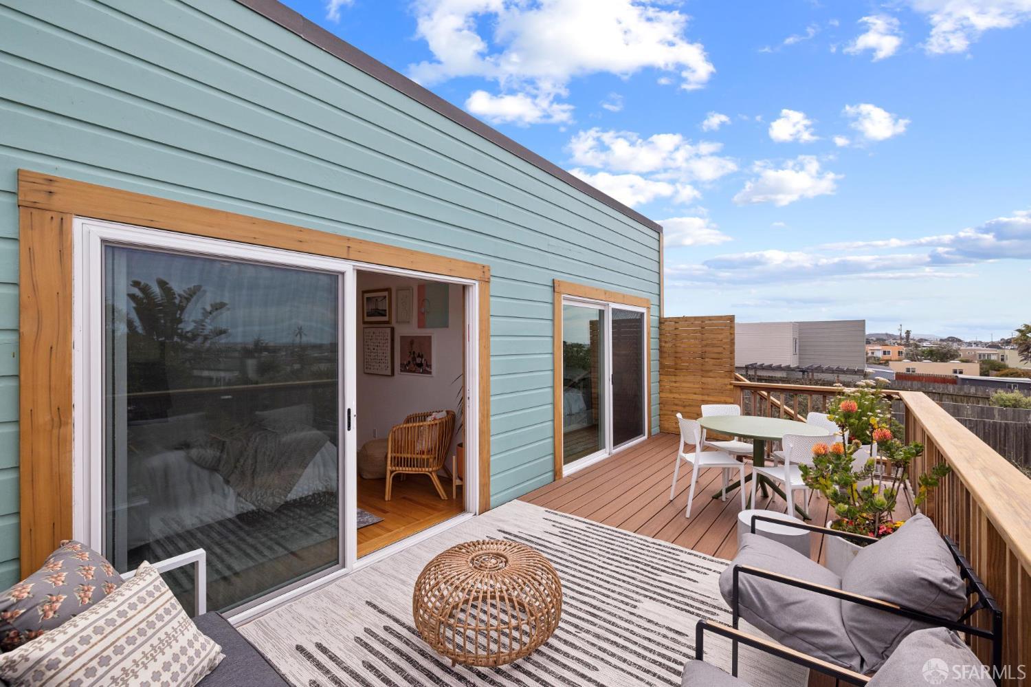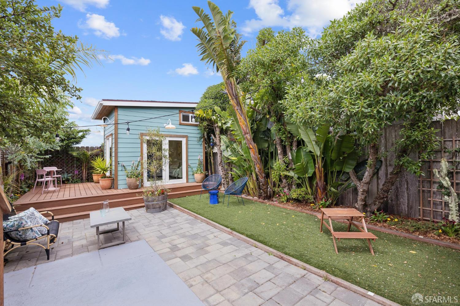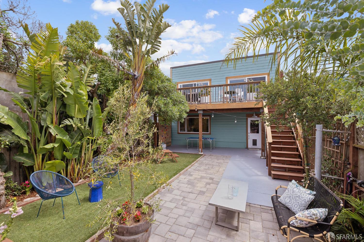 Live the Outer Sunset lifestyle in this stylishly remodeled residence just blocks from the beach. This coastal home features an open floor plan with a gorgeous kitchen equipped with quartz countertops, glass tile backsplash, premier stainless-steel appliances, and an overhang for informal dining. The kitchen opens to the dining area and a bright, inviting living room. The main level offers 3 bedrooms and 2 bathrooms, with two rear bedrooms featuring sliding glass doors to a large walk-out deck with ocean outlooks, leading down to a spacious garden oasis, professionally designed with paved and turf areas for seating and recreation, surrounded by lush landscaping. At the back of the garden is a finished detached office or she-shed, ideal for a home office or occasional guests. The lower level includes a large bonus room suitable as a 4th bedroom or family room, complete with a wet bar and an ensuite bath with shower over tub. The garage provides laundry, storage, a gym area, playroom or office area, and parking for 2 cars, plus 2 spots on the front parking pad lined with palm trees. Wonderful expansion potential to create add’l finished space in the garage (buyer to investigate). Excellent location one block from Gus’ Market, 5 blocks from the beach, nearby schools including Sunset Elementary and St. Ignatius, and around the corner from shops and restaurants along Noriega Street. Do not use Showing Time.