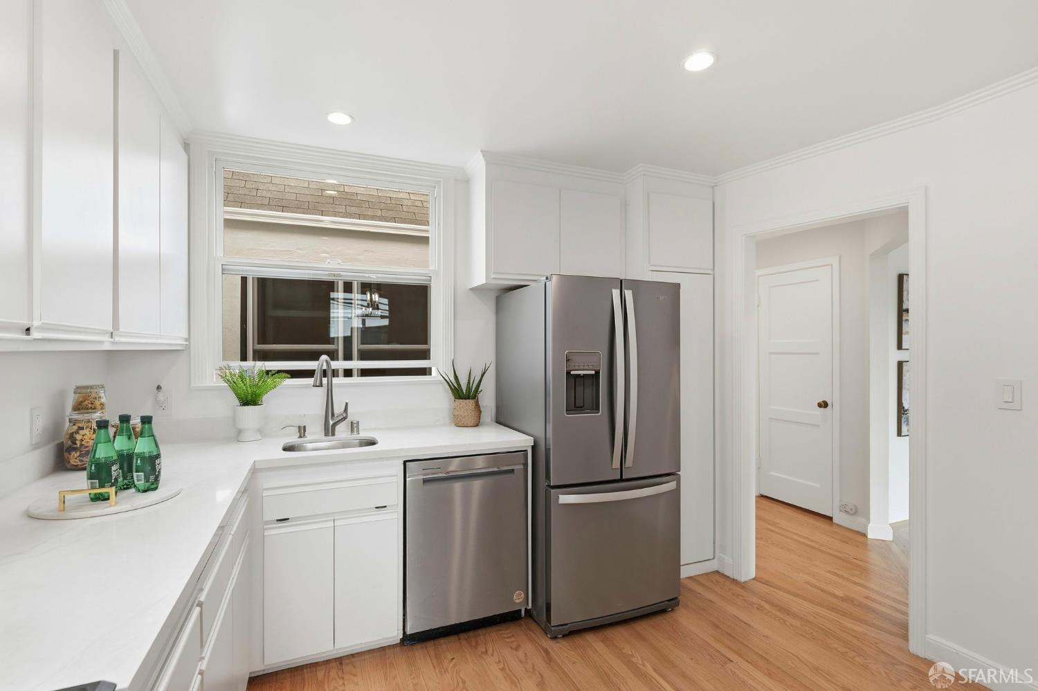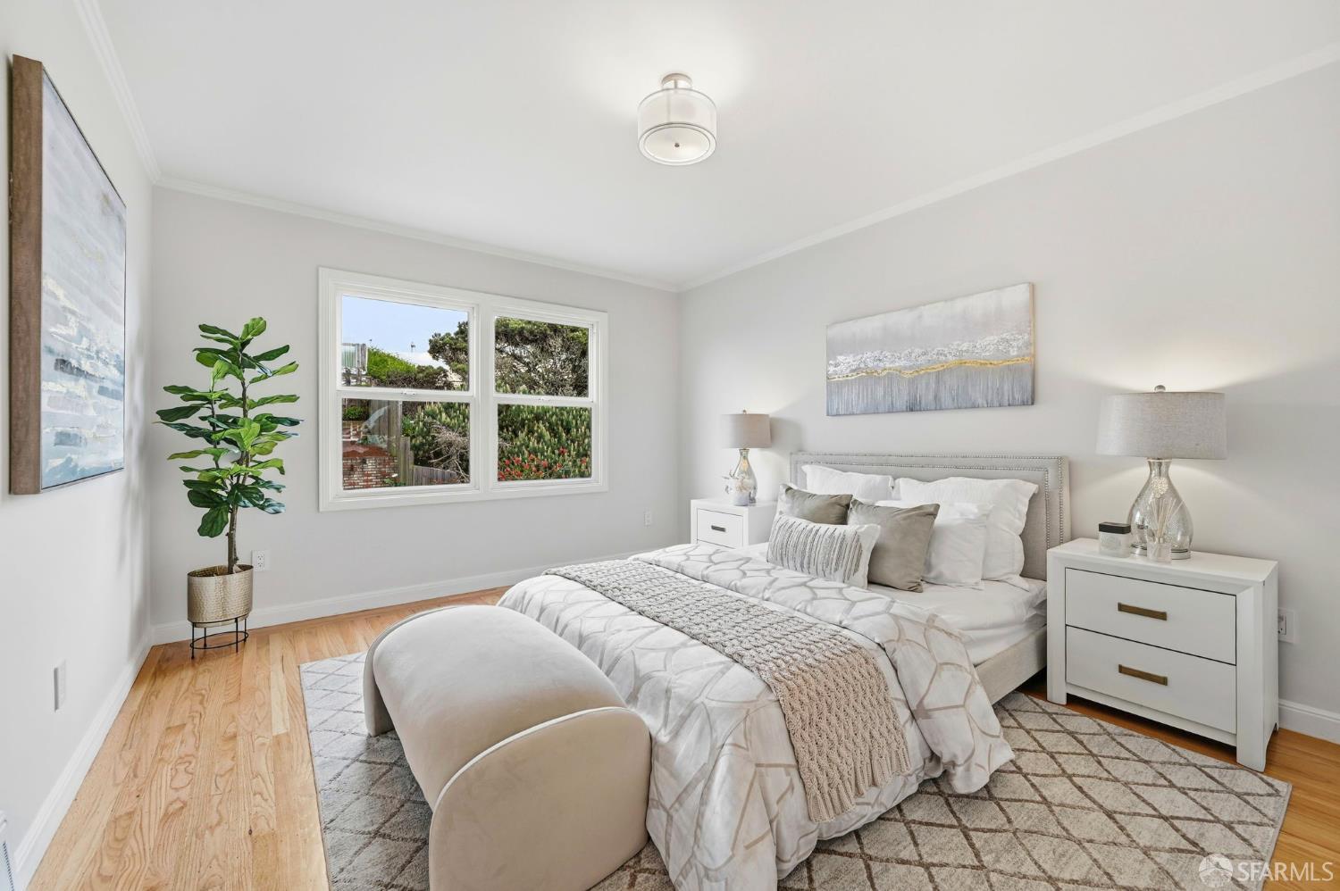 Charming 1940s home with 3 bedrooms on the main level in Outer Parkside. An ornate fireplace, recessed lighting, and beautiful hardwood floors provide the living room with a nice refined feel. Natural light floods the dining room and kitchen. An elegant tile bathroom is found off the hall. The two rear bedrooms look out to the deep & inviting backyard. An abundance of space for parking, storage, and expansion potential is found in the garage. Don’t miss your chance to acquire a move-in ready home with an excellent layout in a prime Outer Parkside location. The roof was replaced in 2023. 2226 39th is ideally situated near great schools, Ocean Beach, and all the conveniences of Taraval. Don’t miss it!