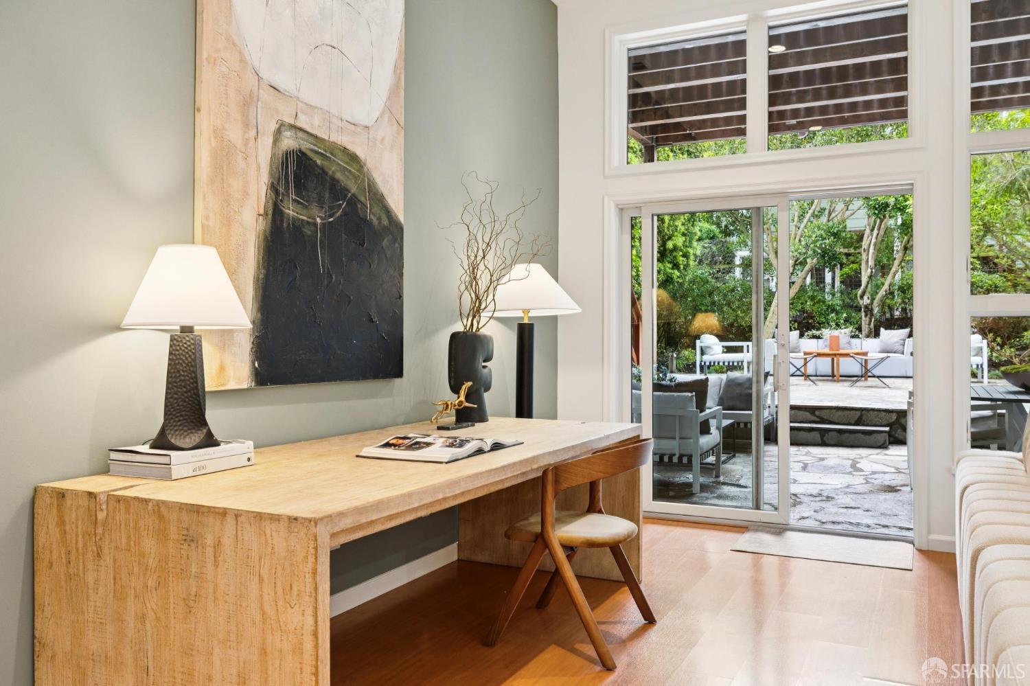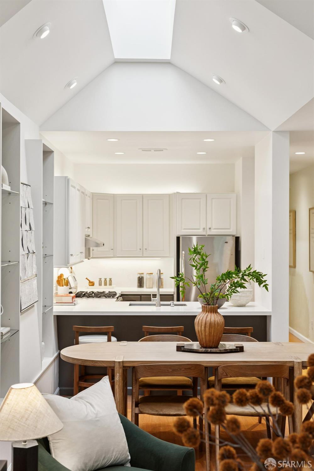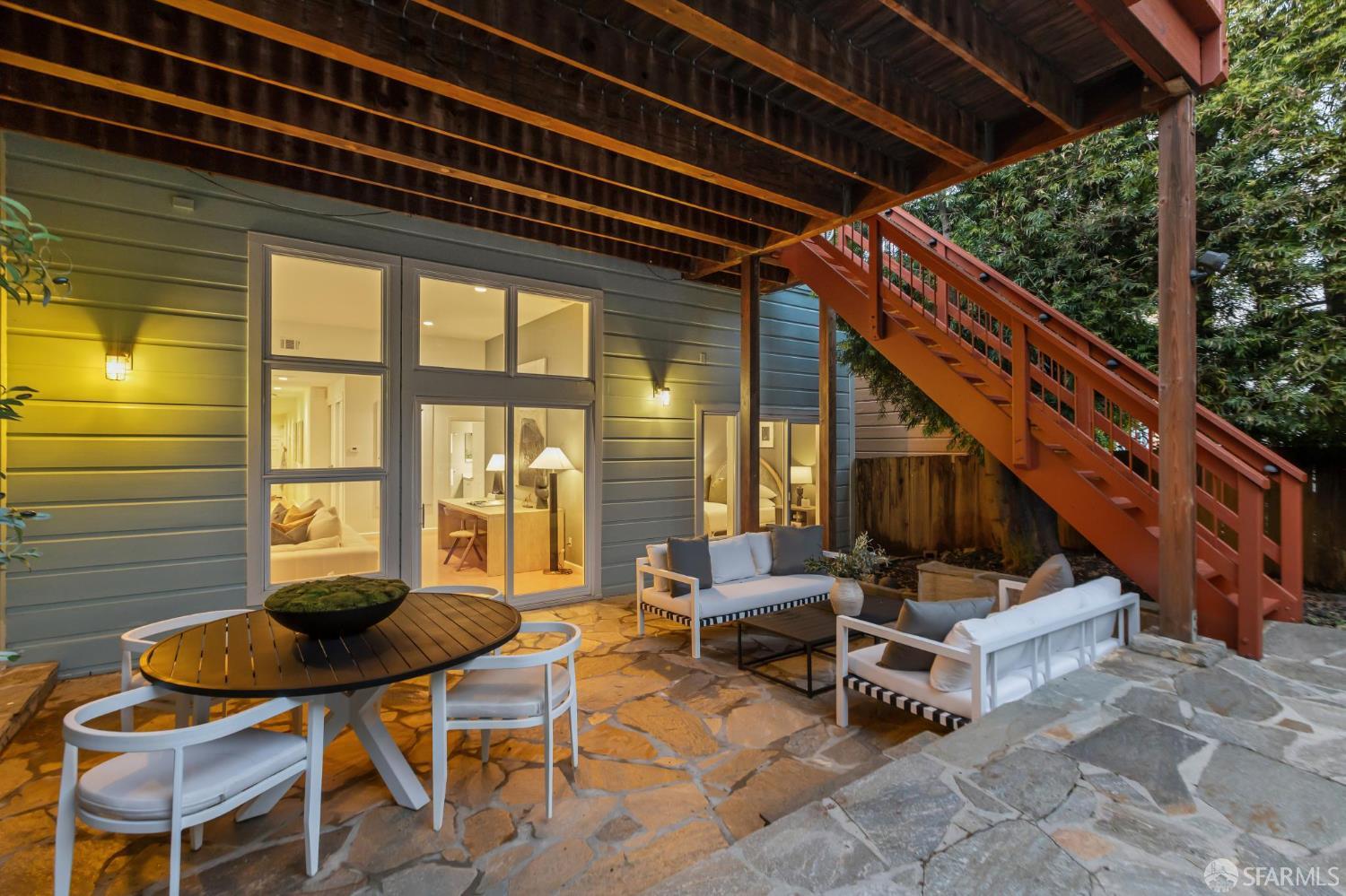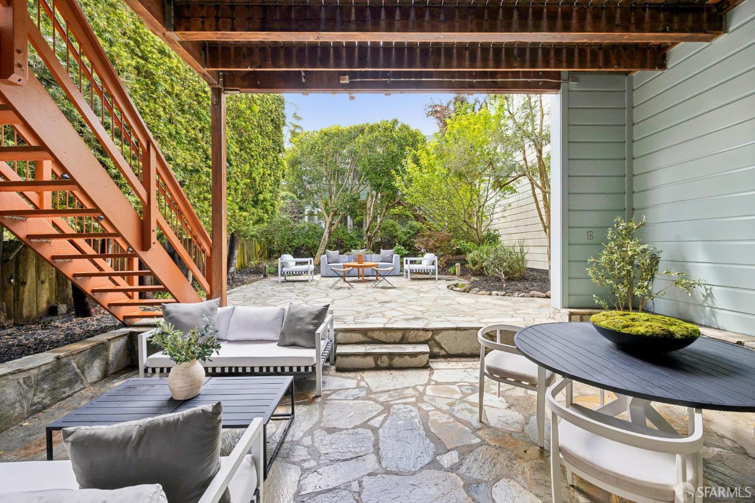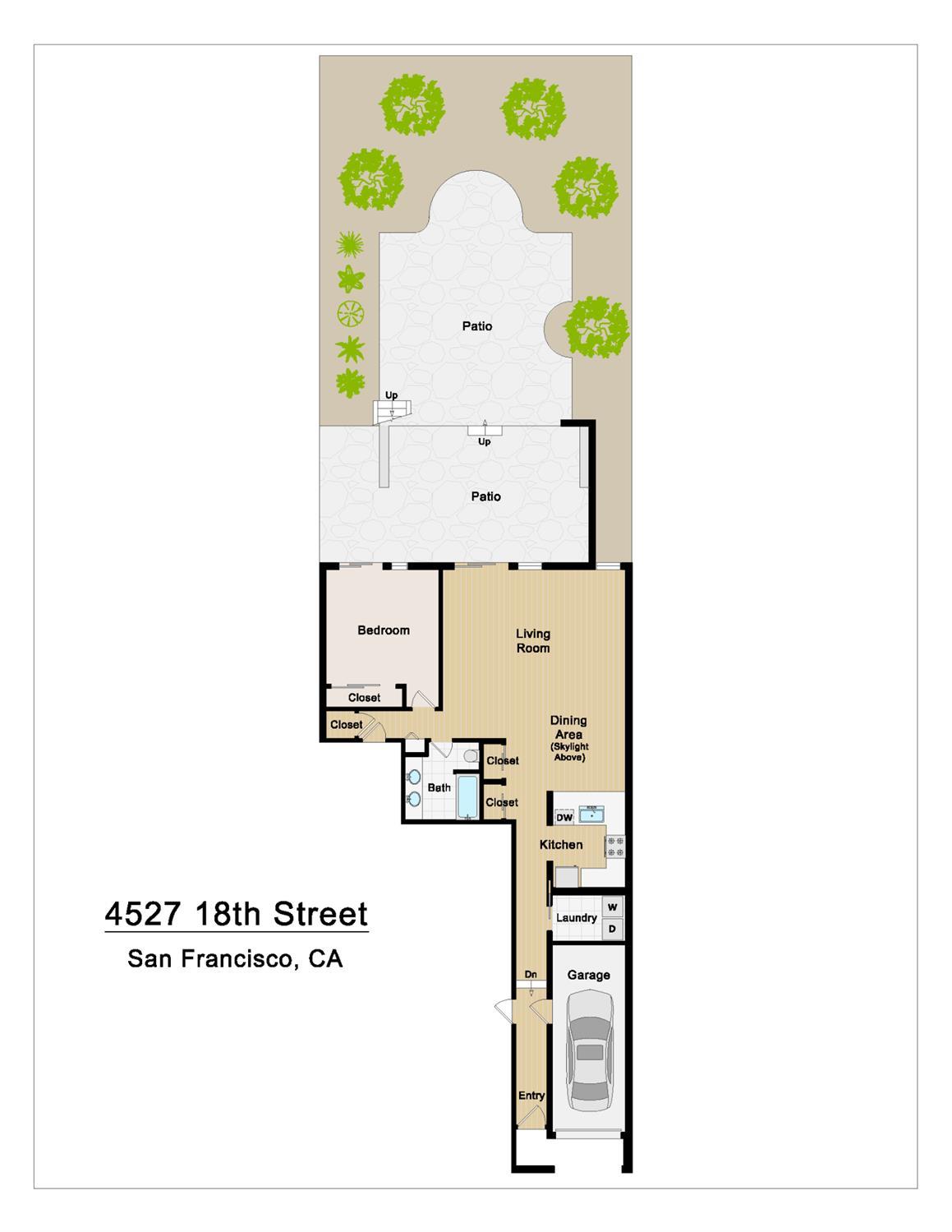 Masterful architecture, lofty scale, and grand, house-like amenities anchor this pristine, one-bedroom condominium, well-appointed, strategically located, and graced with a massive exclusive patio. Soaring ceilings, gallery walls, huge windows and skylights result in an expansive flexible space, flooded with natural light. A sky-lit dining room with soaring ceilings is open to the generously proportioned kitchen with fresh new counters, backsplash, and a layout perfect for entertaining. A separate pantry, in-unit laundry room, private one-car garage, and tremendous storage make this open plan home as comfortable as it is beautiful. Two folks working at home? No problem. Grand scale entertainers? Perfecto. Dogs, urban hikes and ease of getting around town…this is your place! One of two units, set in a serene pocket of Eureka Valley, this sophisticated residence, set back from the charming, tree-lined block, offers city centrality and a sense of retreat. Close to the Castro Village, Kite Hill, Corona Heights and its many tennis courts, Mission Dolores Park, and the historic Castro Theater. This home has it all.