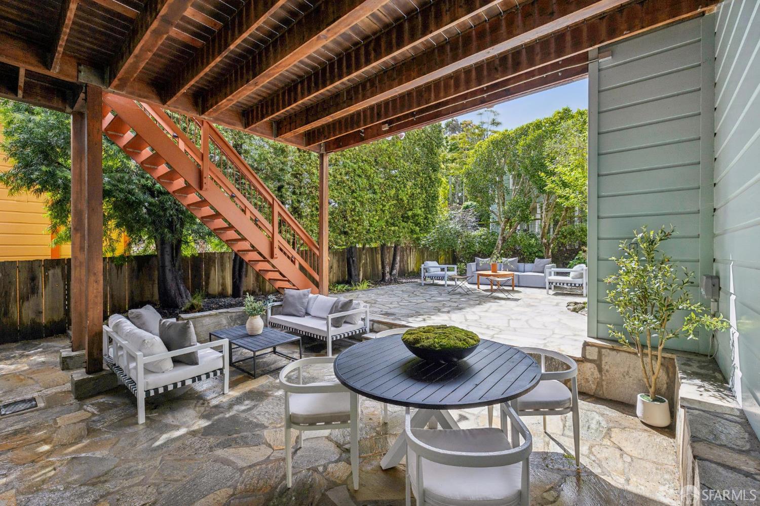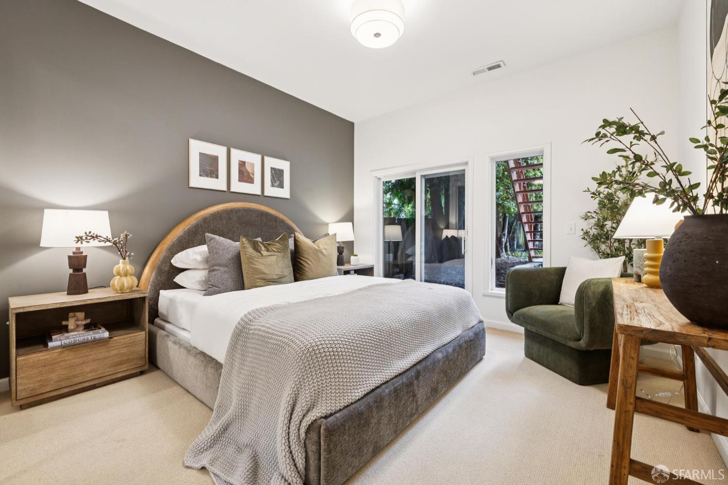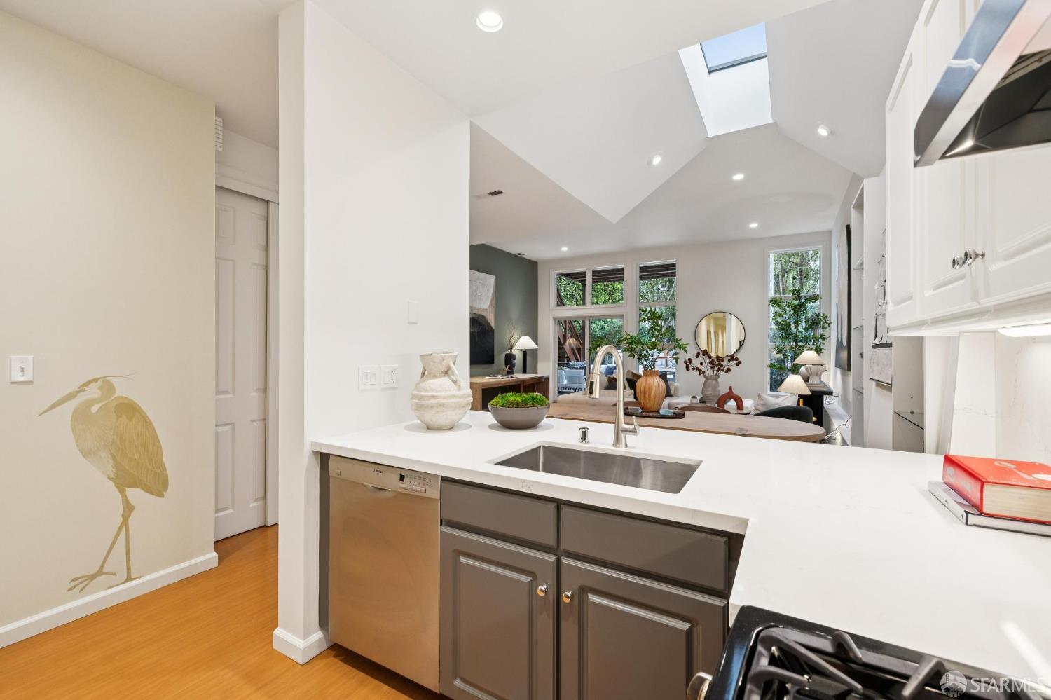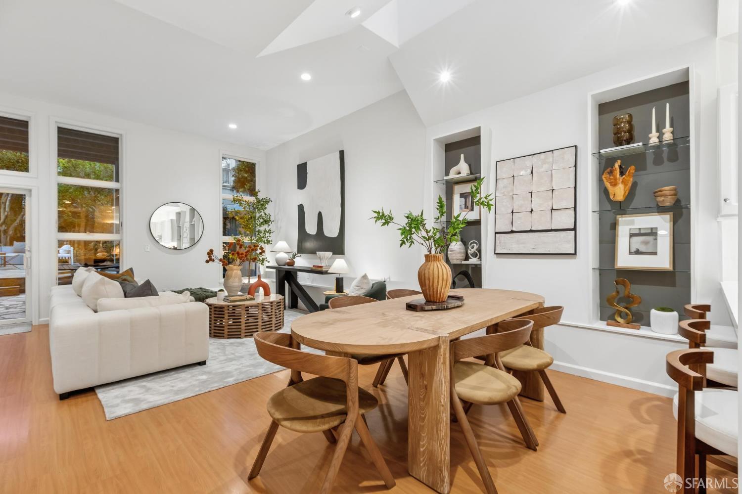 Masterful architecture, lofty scale, and grand, house-like amenities anchor this pristine, one-bedroom condominium, well-appointed, strategically located, and graced with a massive exclusive patio. Soaring ceilings, gallery walls, huge windows and skylights result in an expansive flexible space, flooded with natural light. A sky-lit dining room with soaring ceilings is open to the generously proportioned kitchen with fresh new counters, backsplash, and a layout perfect for entertaining. A separate pantry, in-unit laundry room, private one-car garage, and tremendous storage make this open plan home as comfortable as it is beautiful. Two folks working at home? No problem. Grand scale entertainers? Perfecto. Dogs, urban hikes and ease of getting around town…this is your place! One of two units, set in a serene pocket of Eureka Valley, this sophisticated residence, set back from the charming, tree-lined block, offers city centrality and a sense of retreat. Close to the Castro Village, Kite Hill, Corona Heights and its many tennis courts, Mission Dolores Park, and the historic Castro Theater. This home has it all.