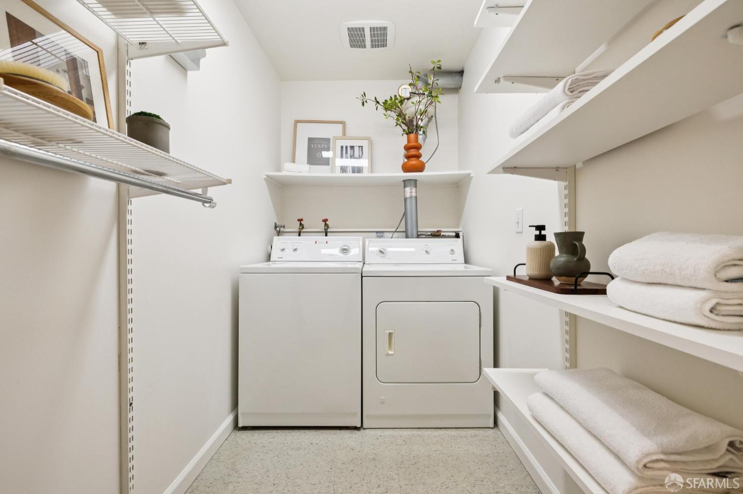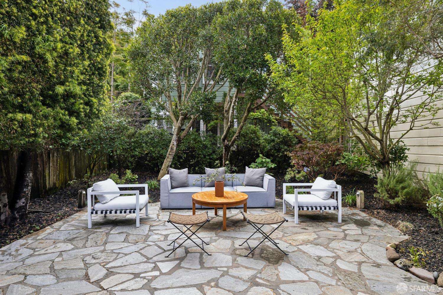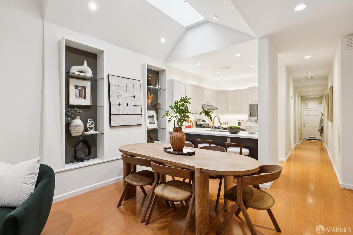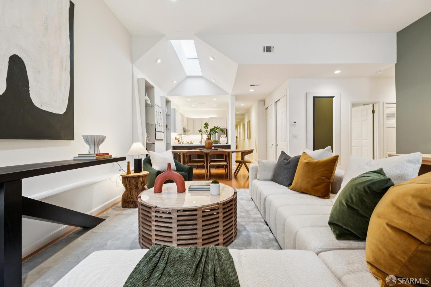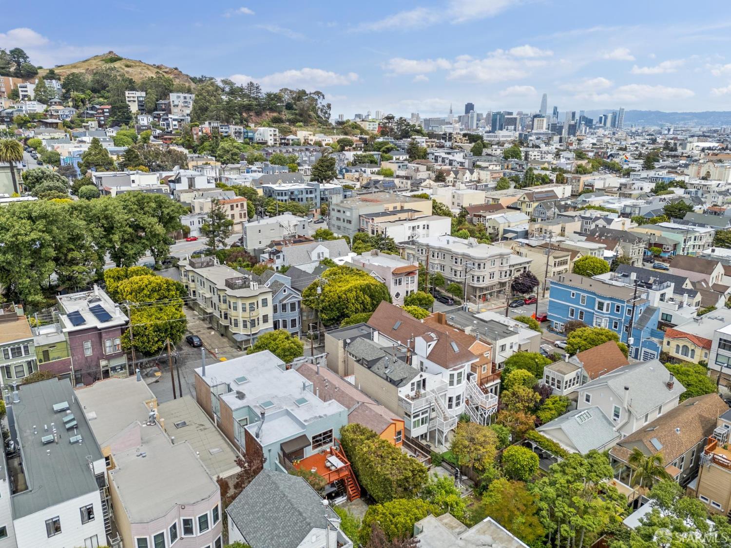 Masterful architecture, lofty scale, and grand, house-like amenities anchor this pristine, one-bedroom condominium, well-appointed, strategically located, and graced with a massive exclusive patio. Soaring ceilings, gallery walls, huge windows and skylights result in an expansive flexible space, flooded with natural light. A sky-lit dining room with soaring ceilings is open to the generously proportioned kitchen with fresh new counters, backsplash, and a layout perfect for entertaining. A separate pantry, in-unit laundry room, private one-car garage, and tremendous storage make this open plan home as comfortable as it is beautiful. Two folks working at home? No problem. Grand scale entertainers? Perfecto. Dogs, urban hikes and ease of getting around town…this is your place! One of two units, set in a serene pocket of Eureka Valley, this sophisticated residence, set back from the charming, tree-lined block, offers city centrality and a sense of retreat. Close to the Castro Village, Kite Hill, Corona Heights and its many tennis courts, Mission Dolores Park, and the historic Castro Theater. This home has it all.