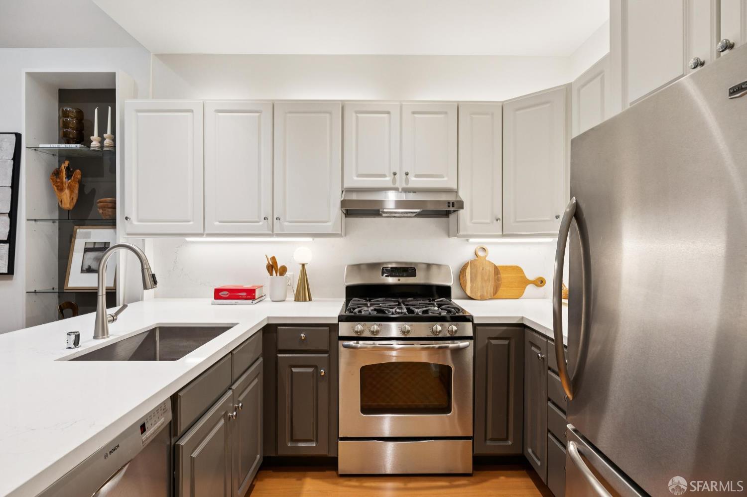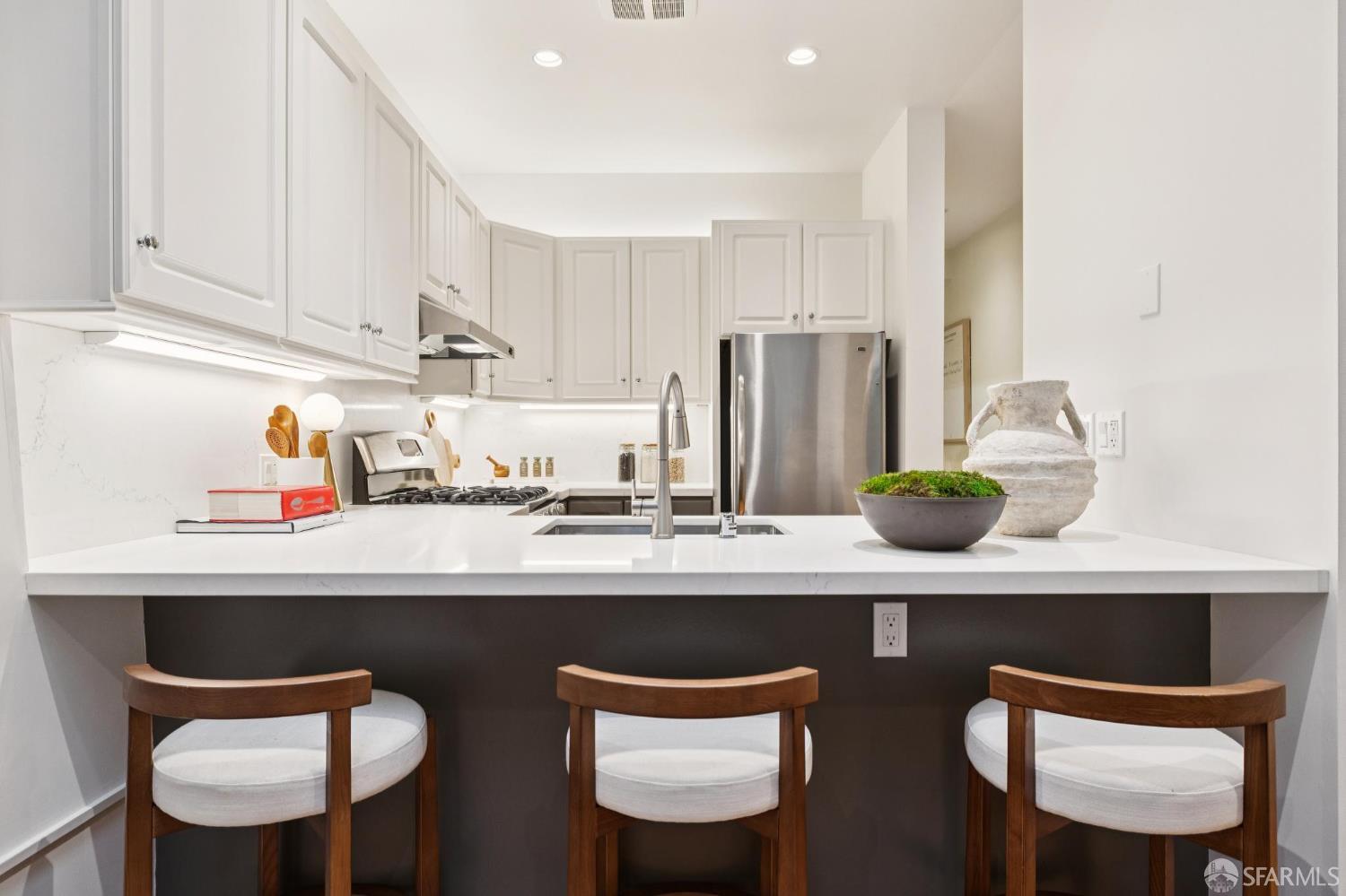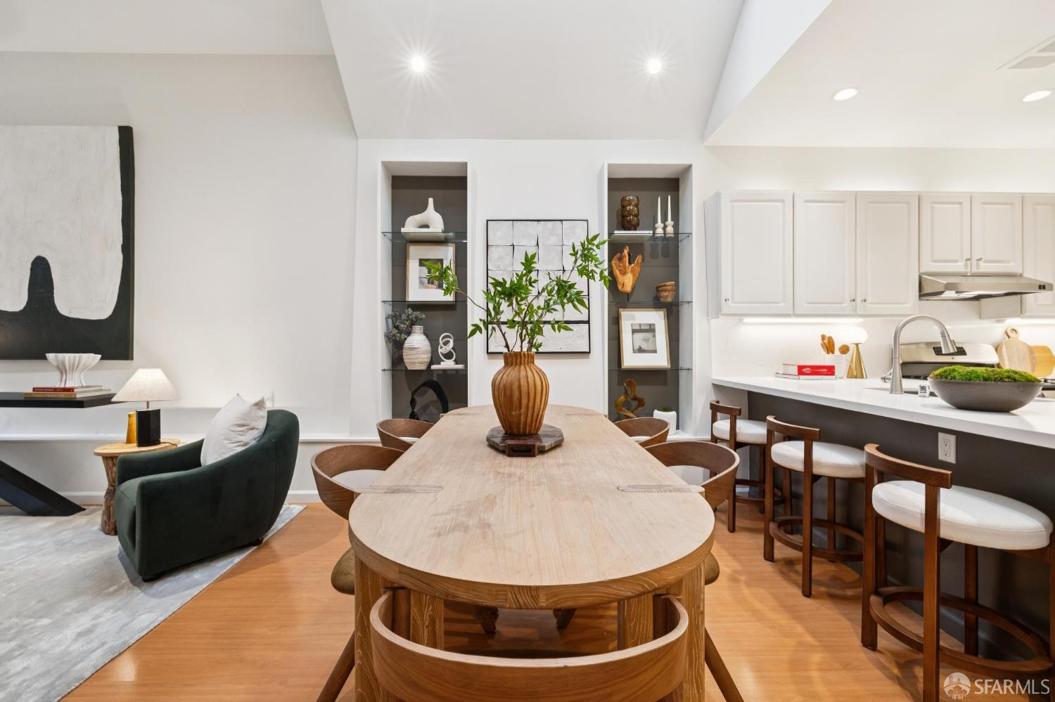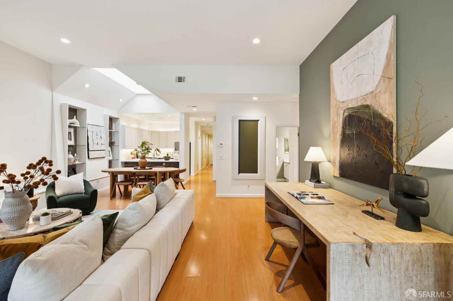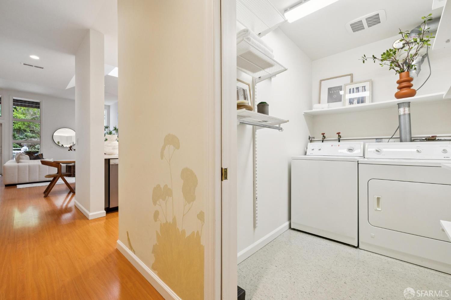 Masterful architecture, lofty scale, and grand, house-like amenities anchor this pristine, one-bedroom condominium, well-appointed, strategically located, and graced with a massive exclusive patio. Soaring ceilings, gallery walls, huge windows and skylights result in an expansive flexible space, flooded with natural light. A sky-lit dining room with soaring ceilings is open to the generously proportioned kitchen with fresh new counters, backsplash, and a layout perfect for entertaining. A separate pantry, in-unit laundry room, private one-car garage, and tremendous storage make this open plan home as comfortable as it is beautiful. Two folks working at home? No problem. Grand scale entertainers? Perfecto. Dogs, urban hikes and ease of getting around town…this is your place! One of two units, set in a serene pocket of Eureka Valley, this sophisticated residence, set back from the charming, tree-lined block, offers city centrality and a sense of retreat. Close to the Castro Village, Kite Hill, Corona Heights and its many tennis courts, Mission Dolores Park, and the historic Castro Theater. This home has it all.