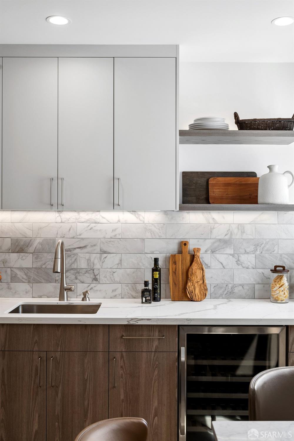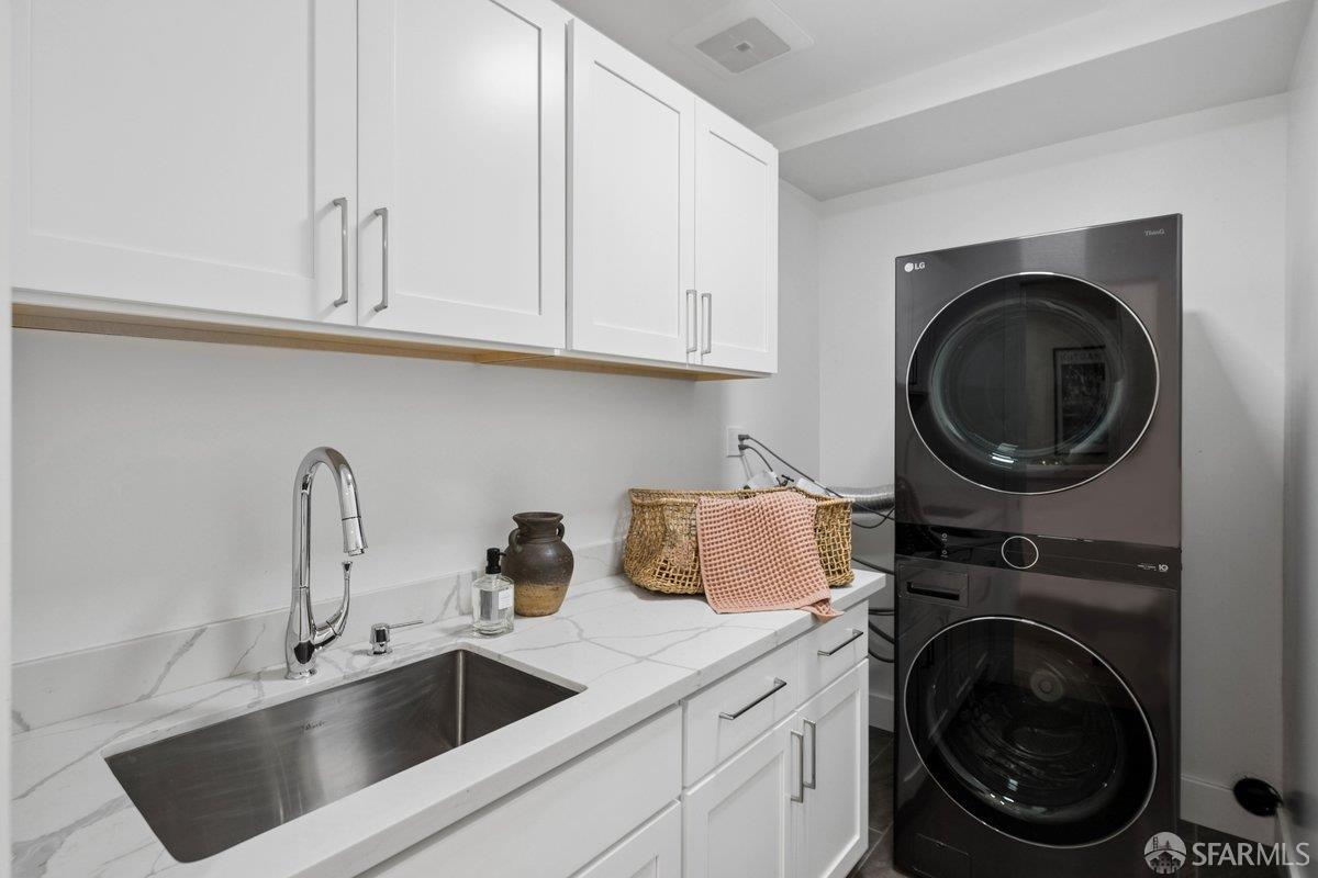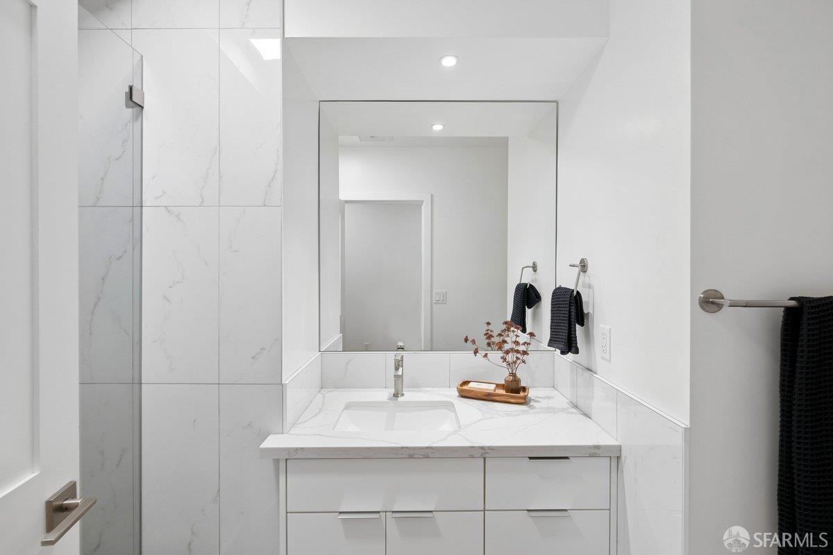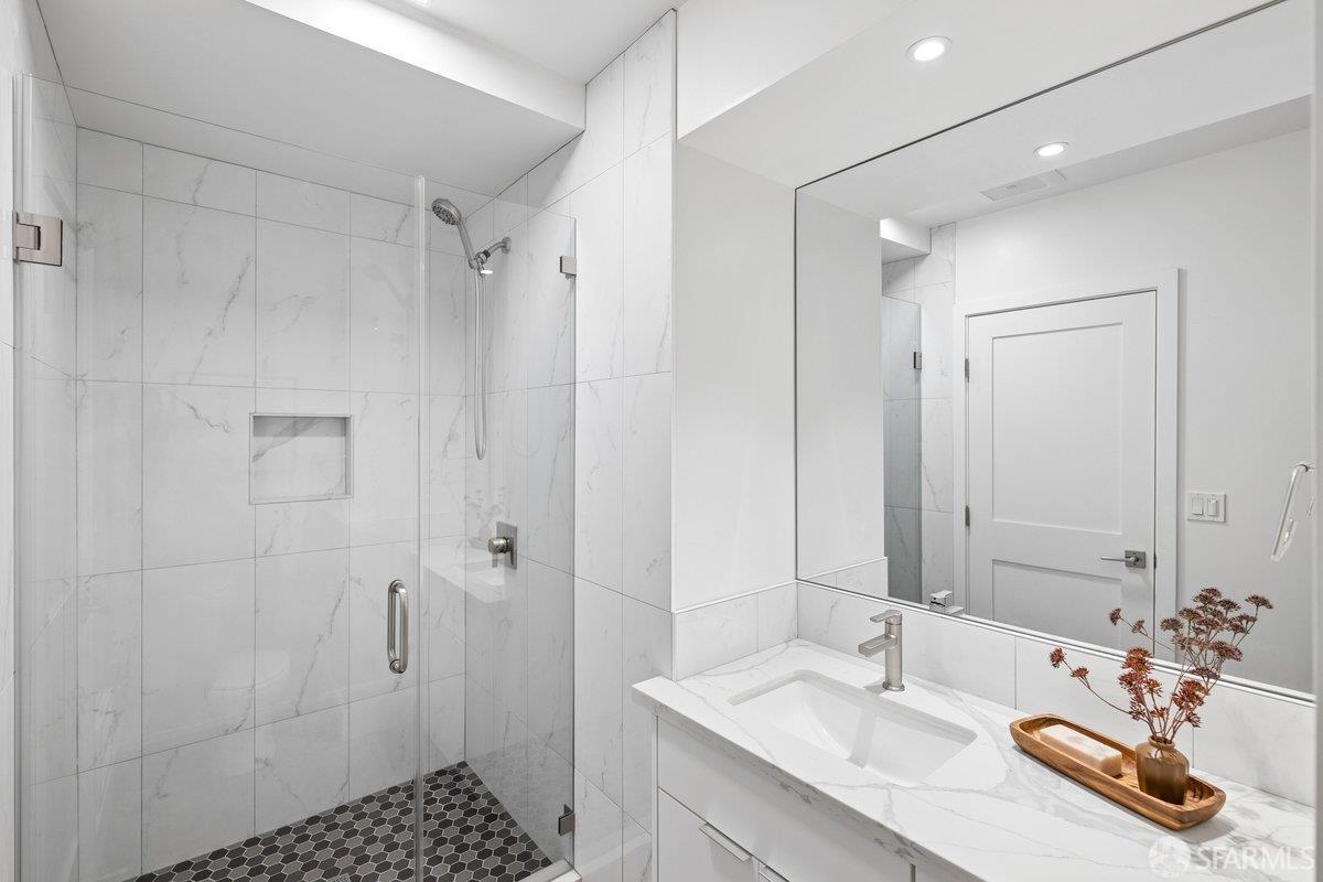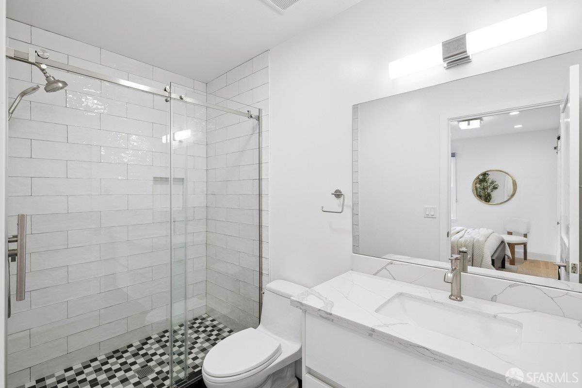 Scale, style, and remarkable convenience in San Francisco’s coveted Richmond District. This expansive single-family residence puts the city’s most desirable destinations at your doorstep: the renowned, authentic dining of Clement Street and Geary Boulevard, The Presidio, Golden Gate Park, Downtown, and the North Bay all within effortless reach. A comprehensive 2021 designer renovation delivers impeccable high-end finishes and fully updated systems, making this a true move-in showcase. The main level, bathed in natural light from 5 skylights above, features a gourmet chef’s kitchen with premium Thermador appliances, gas range, double sink, and center island, open to the sprawling dining and living areas framed by beautiful bay windows. Three bedrooms and three full baths complete the main level, including a primary suite with generous closet space and spa-like bath with double vanity and soaking tub. The lower level offers a dedicated office, fourth bedroom, two full baths, dedicated laundry, and a kitchenette with second living area that opens to the sun-drenched yard with walk-out deck and tasteful garden – ideal for entertaining. 2-car garage parking, room for storage, and EV charger outlet complete the home. This is a rare offering of great scale, quality, and convenience.