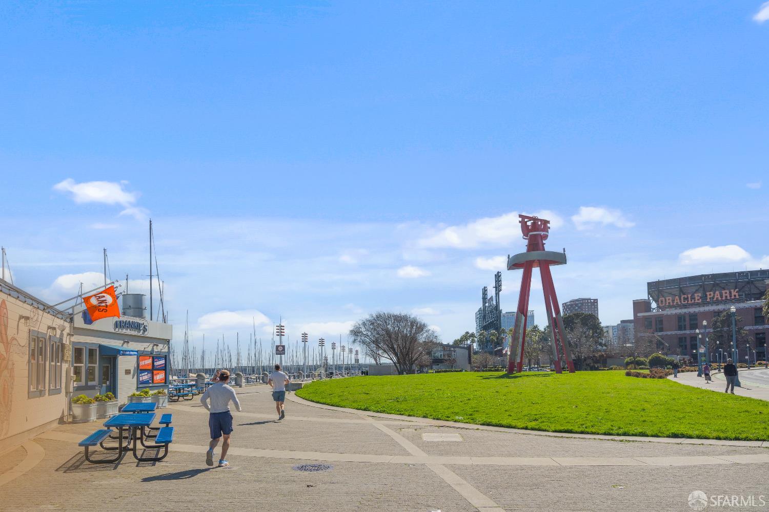 Wake up to Bay views and unwind to open water and city skyline vistas from this bright 2BD/2BA residence with a glass-enclosed balcony. The kitchen with an island features stone countertops and premium appliances, flowing seamlessly into the living and dining areas, ideal for entertaining or relaxed evenings at home. The spacious primary suite includes a spa-inspired bath with a soaking tub, walk-in shower, and dual vanity. A well-appointed second bedroom and full bath provide flexibility for guests, a home office, or both. Additional highlights include in-unit laundry and deeded parking. Residents enjoy a remodeled lobby with a front desk attendant, pool and spa, updated fitness center, BBQ area, and curated resident events. Ideally located near South Beach Marina, Oracle Park, Chase Center, BART, Muni, and major commuter routes. Waterfront living with convenient access to the best of city life.