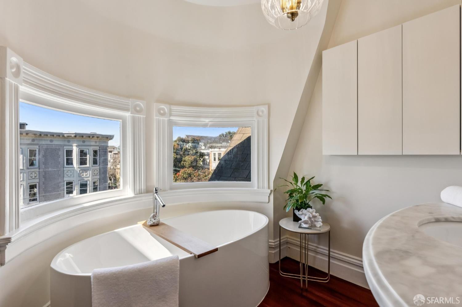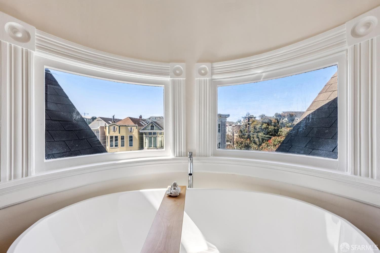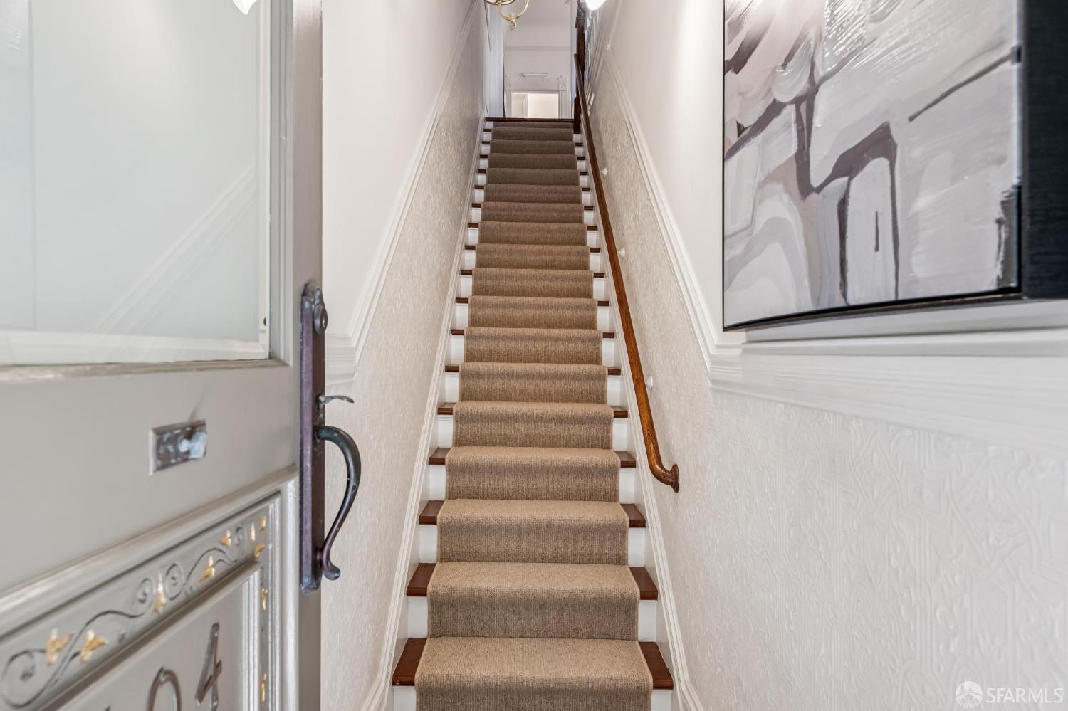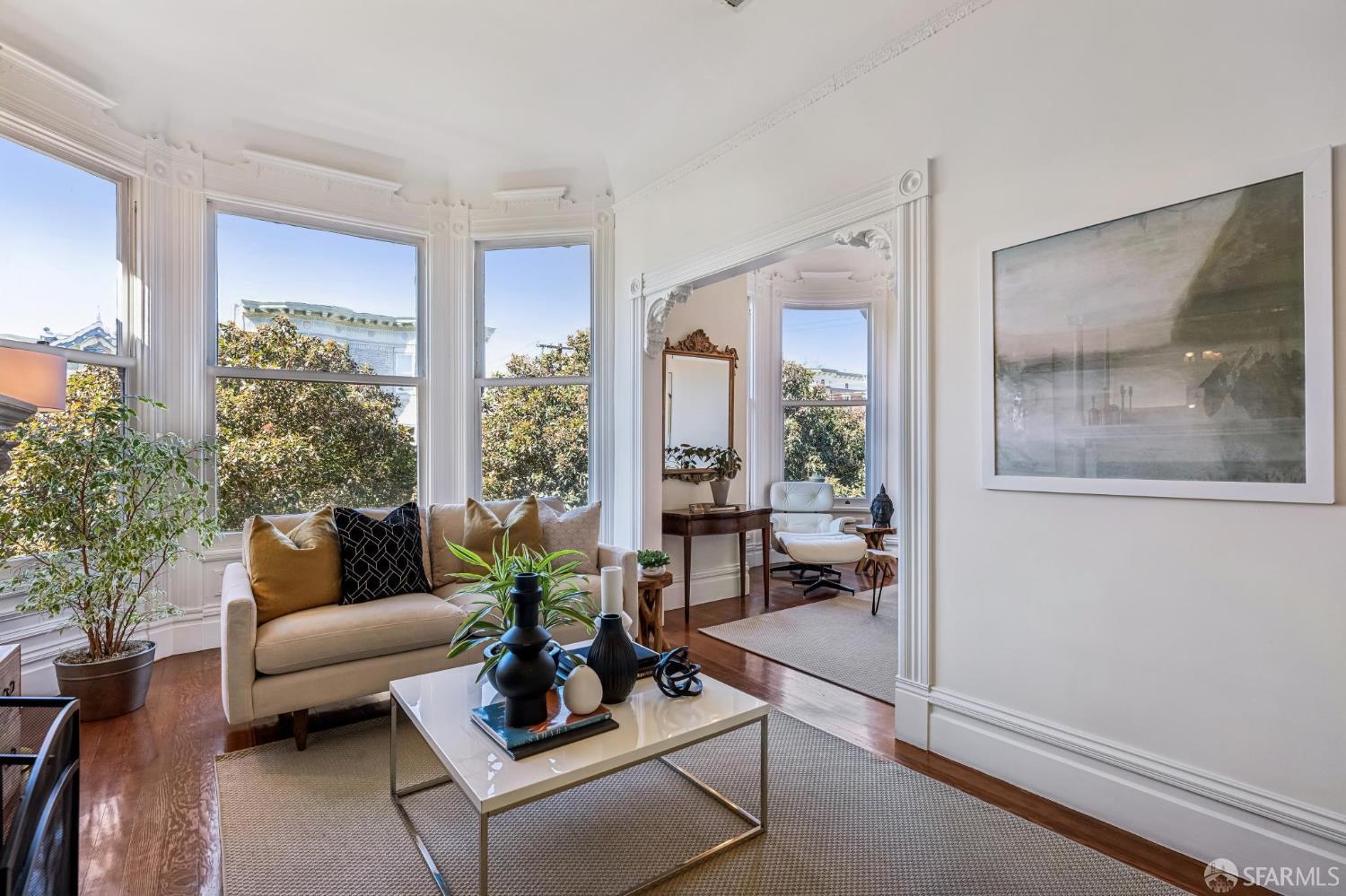 This unique, townhouse style home occupies the top two floors of a 4 unit building constructed in 1894 by Robert Dickie Cranston, a prominent builder in the Haight-Ashbury district at the time and was featured in the second edition of The Painted Ladies books. The home encompasses 1799 sq. ft. (per tax records) on two floors of living space, including 3 bedrooms and 2.5 baths. Enhanced by east and west light-filled exposures, dramatic Victorian era volumes, well-preserved period details and pristine softwood floors, the living spaces are well proportioned for daily living and for entertaining. The main living level features a gracious light-filled double parlor with gas FP, well-suited for entertaining. There is a half bath and generous FDR with second gas FP leading to the kitchen and breakfast area. The kitchen has been tastefully remodeled to complement the period architecture and has a laundry closet. A gracious stairway, graced by a beautifully restored Victorian era balustrade and colorful period skylight, provides the connection to the upper bedroom level which accommodates three bedrooms (one en-suite) and two beautifully remodeled full baths. There is a private deeded deck off the rear 3rd bedroom. The sellers currently have leased parking for this home across the street. Located on the corner of Cole and Page Street, the property is a walker’s paradise with easy access to a diversity of shops and restaurants in the Haight, Cole Valley and the exciting NOPA district. Easy access to the Panhandle, one block away, also makes this a wonderful place to enjoy world class museums and all of the other amenities of Golden Gate Park.