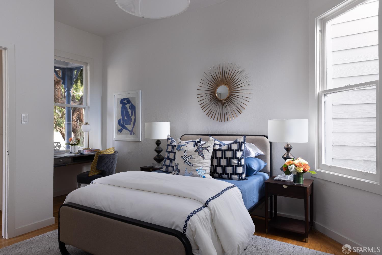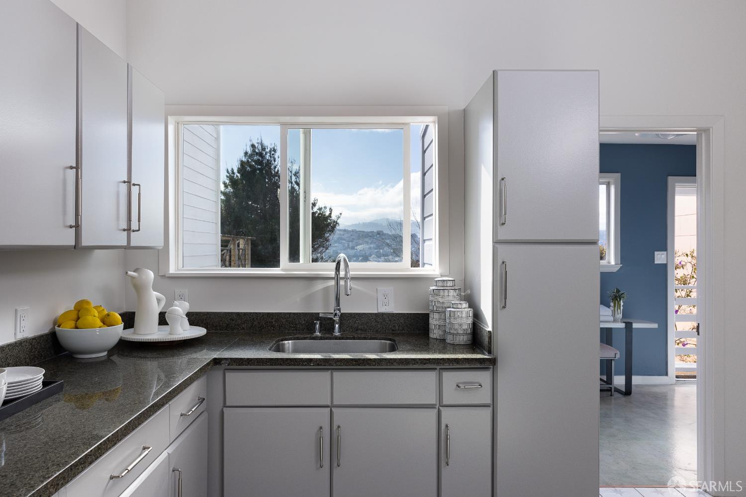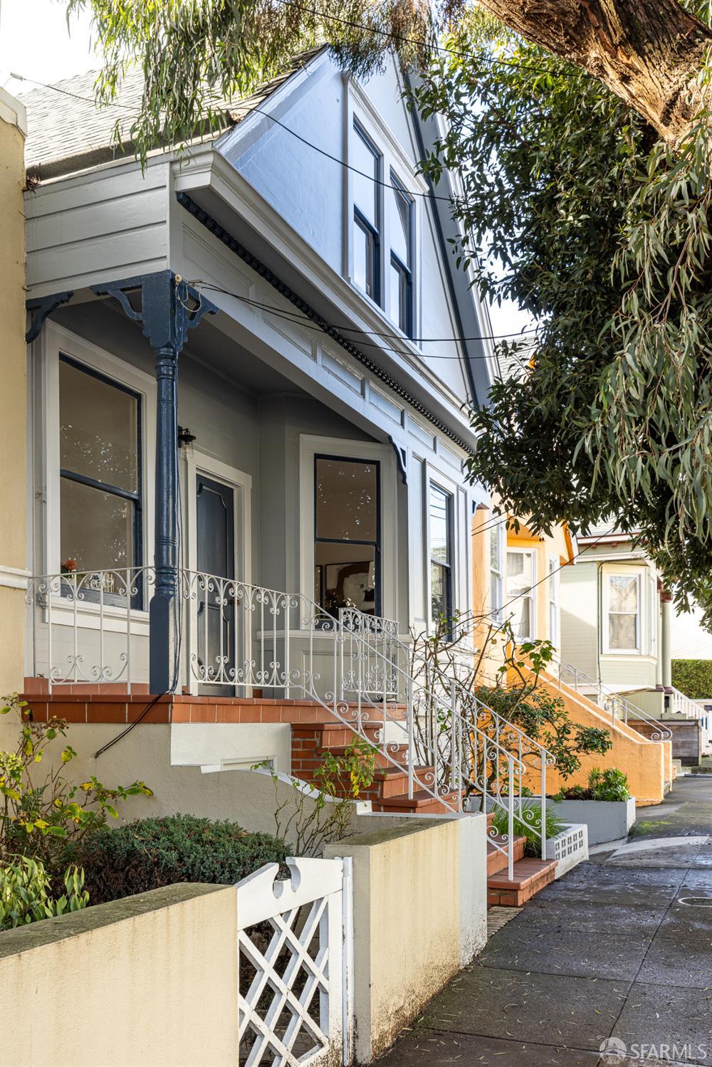 Carefully maintained over generations, 150 College Avenue reflects decades of thoughtful stewardship. Perched on a gentle slope, the home enjoys southern outlooks toward the surrounding hills, while sunlight, balanced proportions, and a south-facing backyard create a setting defined by light, scale, and versatility. The main level offers a well-proportioned living and dining area with comfortable ceiling height and an easy connection to a sunny kitchen. From the kitchen and adjacent sunroom, views extend south toward the hills and upper portion of the backyard. Newer appliances anchor the kitchen, while the sunroom provides direct garden access and houses a newer washer and dryer. A well-sized bedroom and bathroom complete the lower level. Upstairs, spacious bedrooms with ample closet space provide separation and calm, including a south-facing bedroom with elevated hill views. Below, an undeveloped basement with one-car parking offers flexibility for storage, workspace, or future use. Meaningful updates include replacement of knob-and-tube wiring, newer electrical panel and sewer line. Conveniently positioned near public transportation, the Mission and Bernal retail corridors, major freeway access, and the Bernal Cut Path urban trail, this is a rare opportunity to enjoy a well-loved home today with room to thoughtfully evolve over time.