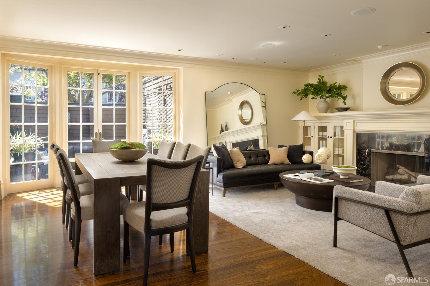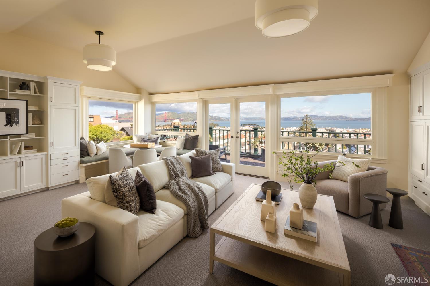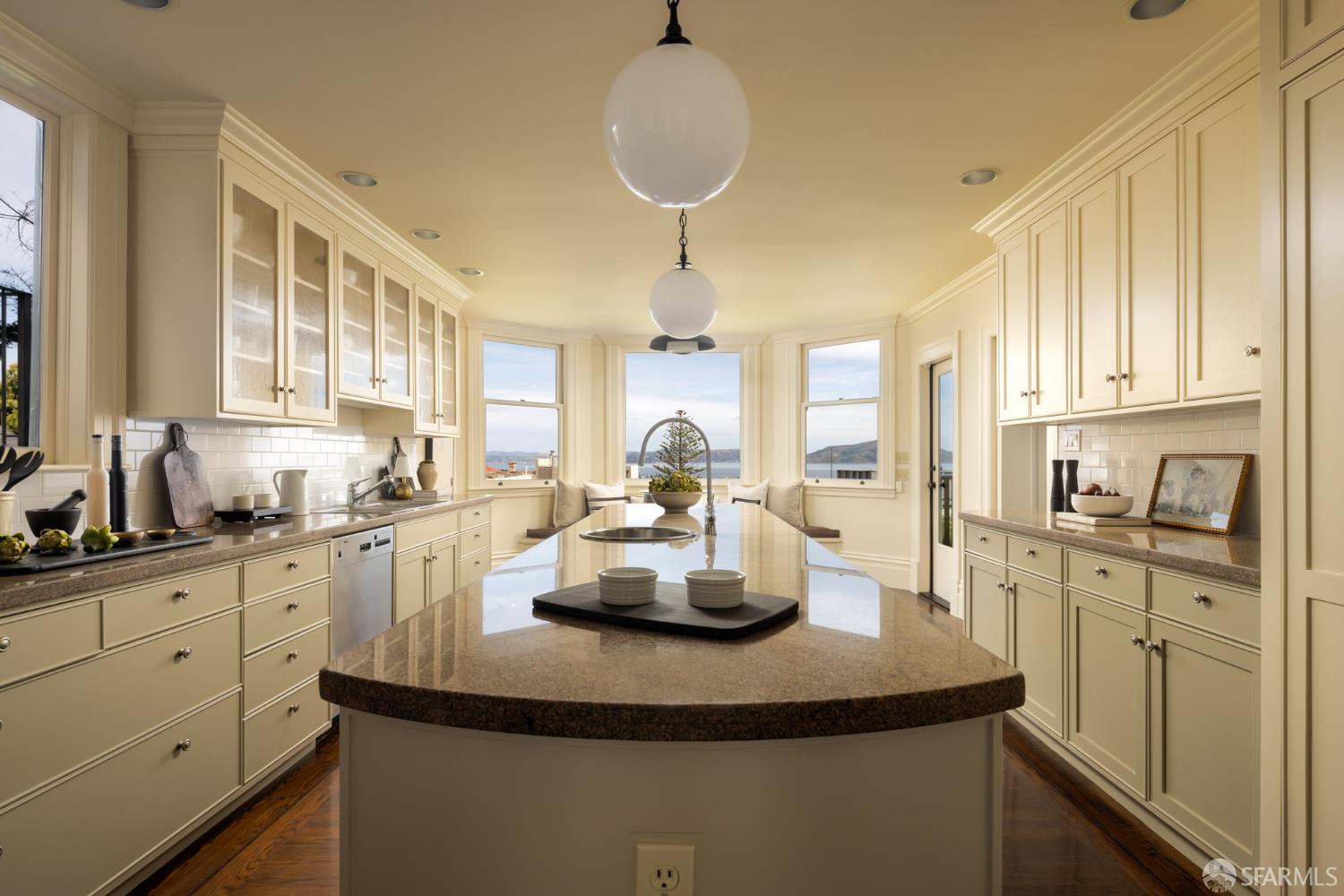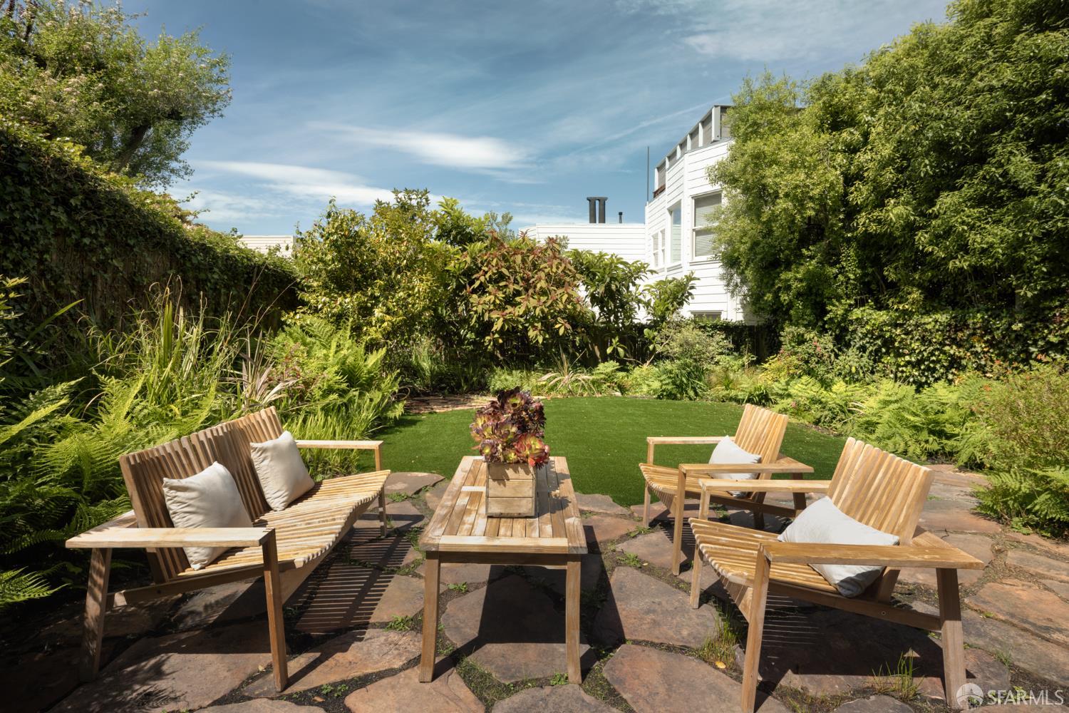Ideally positioned on the prized north side of one of Cow Hollow’s premier blocks, 2512 Union Street is a classic San Francisco residence defined by timeless architecture and exceptional family living. Thoughtfully updated, the home offers a highly functional floor plan tailored to today’s lifestyle. The main level strikes a seamless balance between entertaining and everyday family living. Handsome millwork, coved ceilings, and custom cabinetry frame a series of well-proportioned rooms. At its center, a generous bay-view family room opens directly to the kitchen and breakfast area creating a warm, connected space for daily living. The robust kitchen is anchored by a large center island, custom cabinetry, a walk-in pantry, and professional-grade appliances. Off the entry, formal living and dining rooms are perfectly scaled for entertaining, with French doors opening to a private front courtyard. The second level presents an ideal family layout. An expansive primary suite captures iconic views of the Palace of Fine Arts and the Golden Gate Bridge, and includes built-ins, a wood-burning fireplace, a sitting area, a custom-fitted dressing room, and a spacious bath with dual sinks, soaking tub, and separate shower. Three additional bedrooms and two well-appointed baths complete the level, an uncommon and highly valuable configuration. The top floor is a natural extension of living space, anchored by a light-filled pentroom with cathedral ceilings and wall-to-wall windows framing sweeping views from the Golden Gate Bridge to Alcatraz. A view terrace opens directly off this space, while a private office, guest bedroom, and full bath complete a highly functional upper level well-suited for guests, work, or extended living. Below, the lower level is bright and inviting, offering a private guest or au pair suite, a flexible media or playroom, and direct access to a large, flat, north-facing garden with an expansive turf area. Timeless in character and thoughtfully executed, 2512 Union Street offers a rare combination of livability, light, and a floor plan that works effortlesslyset on one of Cow Hollow’s most desirable blocks.