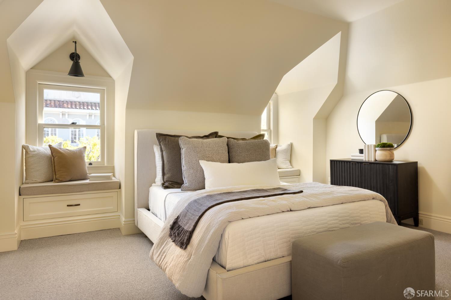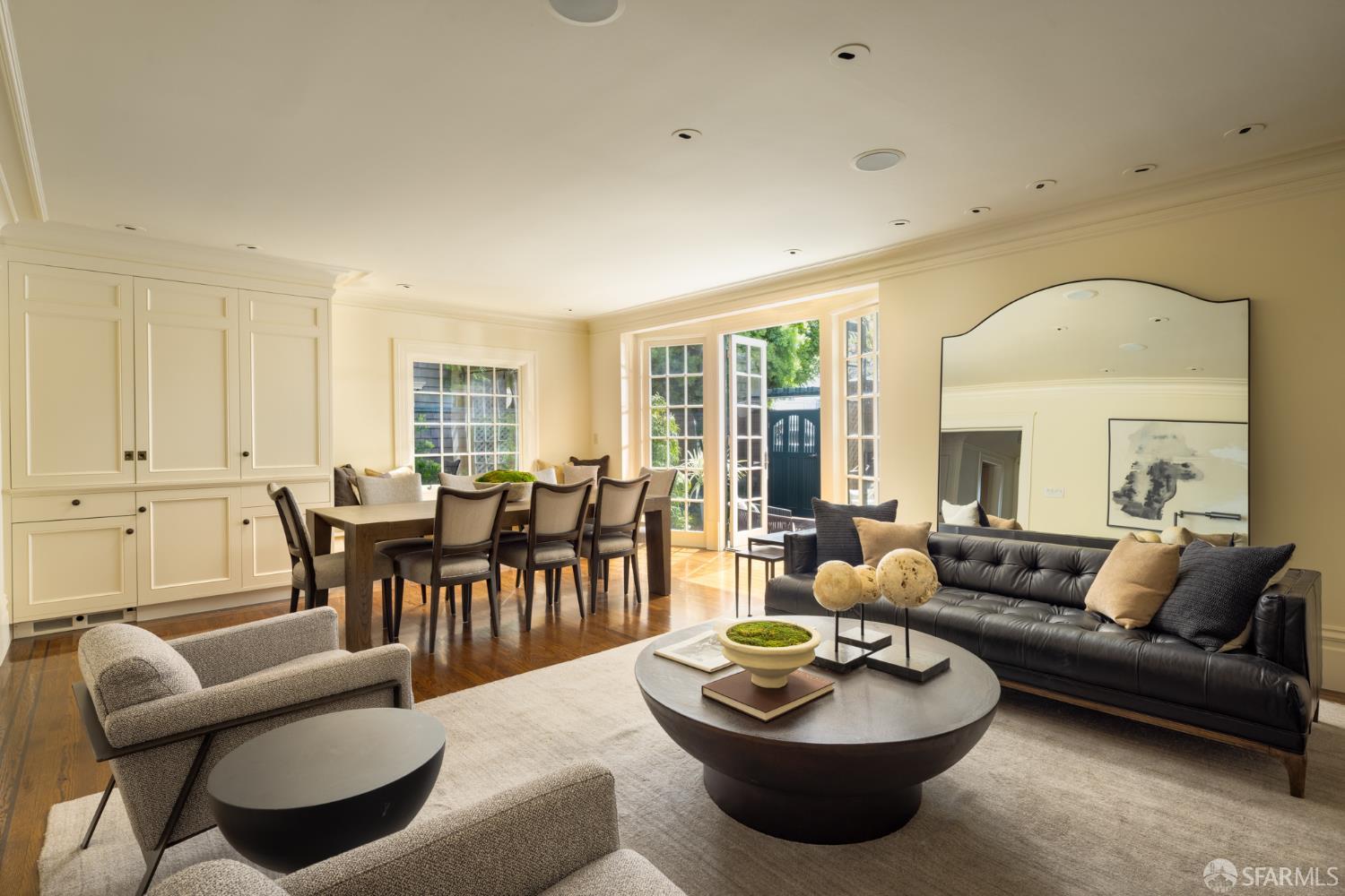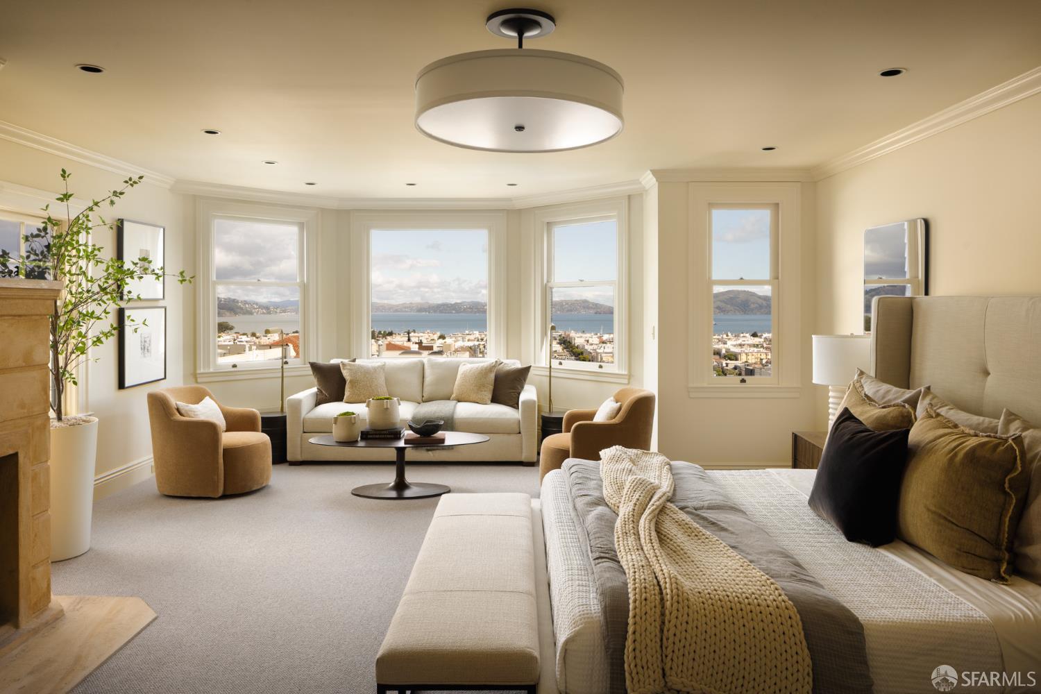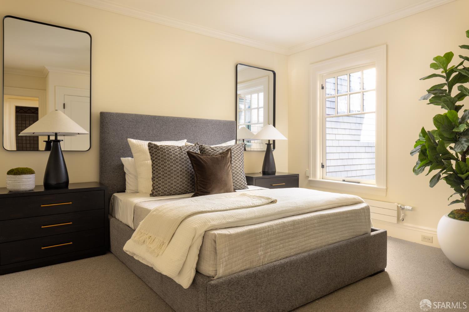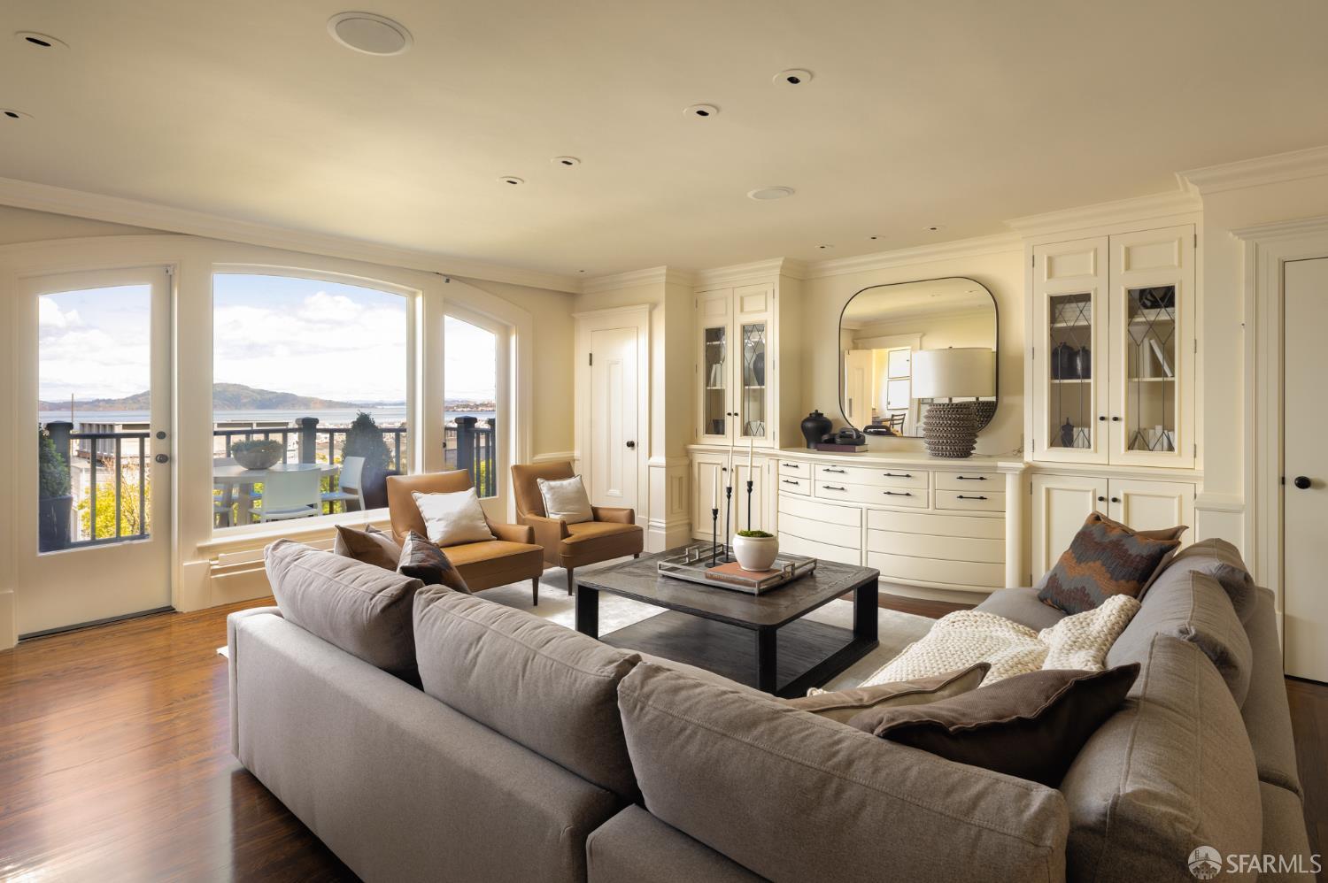 Ideally positioned on the prized north side of one of Cow Hollow’s premier blocks, 2512 Union Street is a classic San Francisco residence defined by timeless architecture and exceptional family living. Thoughtfully updated, the home offers a highly functional floor plan tailored to today’s lifestyle. The main level strikes a seamless balance between entertaining and everyday family living. Handsome millwork, coved ceilings, and custom cabinetry frame a series of well-proportioned rooms. At its center, a generous bay-view family room opens directly to the kitchen and breakfast area creating a warm, connected space for daily living. The robust kitchen is anchored by a large center island, custom cabinetry, a walk-in pantry, and professional-grade appliances. Off the entry, formal living and dining rooms are perfectly scaled for entertaining, with French doors opening to a private front courtyard. The second level presents an ideal family layout. An expansive primary suite captures iconic views of the Palace of Fine Arts and the Golden Gate Bridge, and includes built-ins, a wood-burning fireplace, a sitting area, a custom-fitted dressing room, and a spacious bath with dual sinks, soaking tub, and separate shower. Three additional bedrooms and two well-appointed baths complete the level, an uncommon and highly valuable configuration. The top floor is a natural extension of living space, anchored by a light-filled pentroom with cathedral ceilings and wall-to-wall windows framing sweeping views from the Golden Gate Bridge to Alcatraz. A view terrace opens directly off this space, while a private office, guest bedroom, and full bath complete a highly functional upper level well-suited for guests, work, or extended living. Below, the lower level is bright and inviting, offering a private guest or au pair suite, a flexible media or playroom, and direct access to a large, flat, north-facing garden with an expansive turf area. Timeless in character and thoughtfully executed, 2512 Union Street offers a rare combination of livability, light, and a floor plan that works effortlesslyset on one of Cow Hollow’s most desirable blocks.