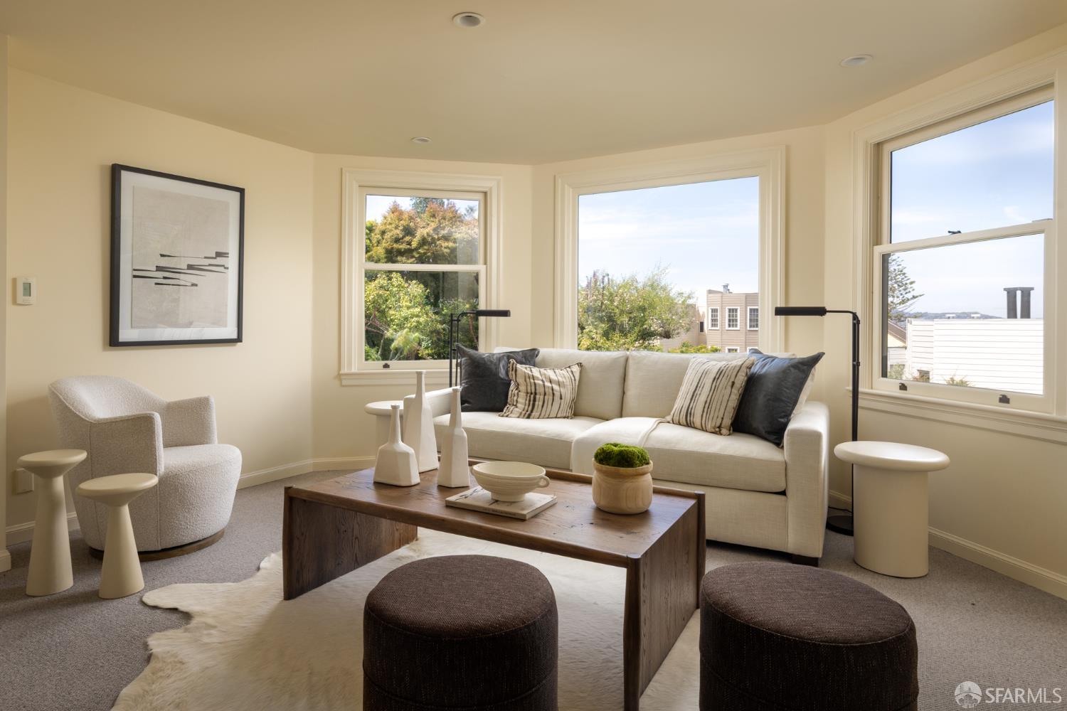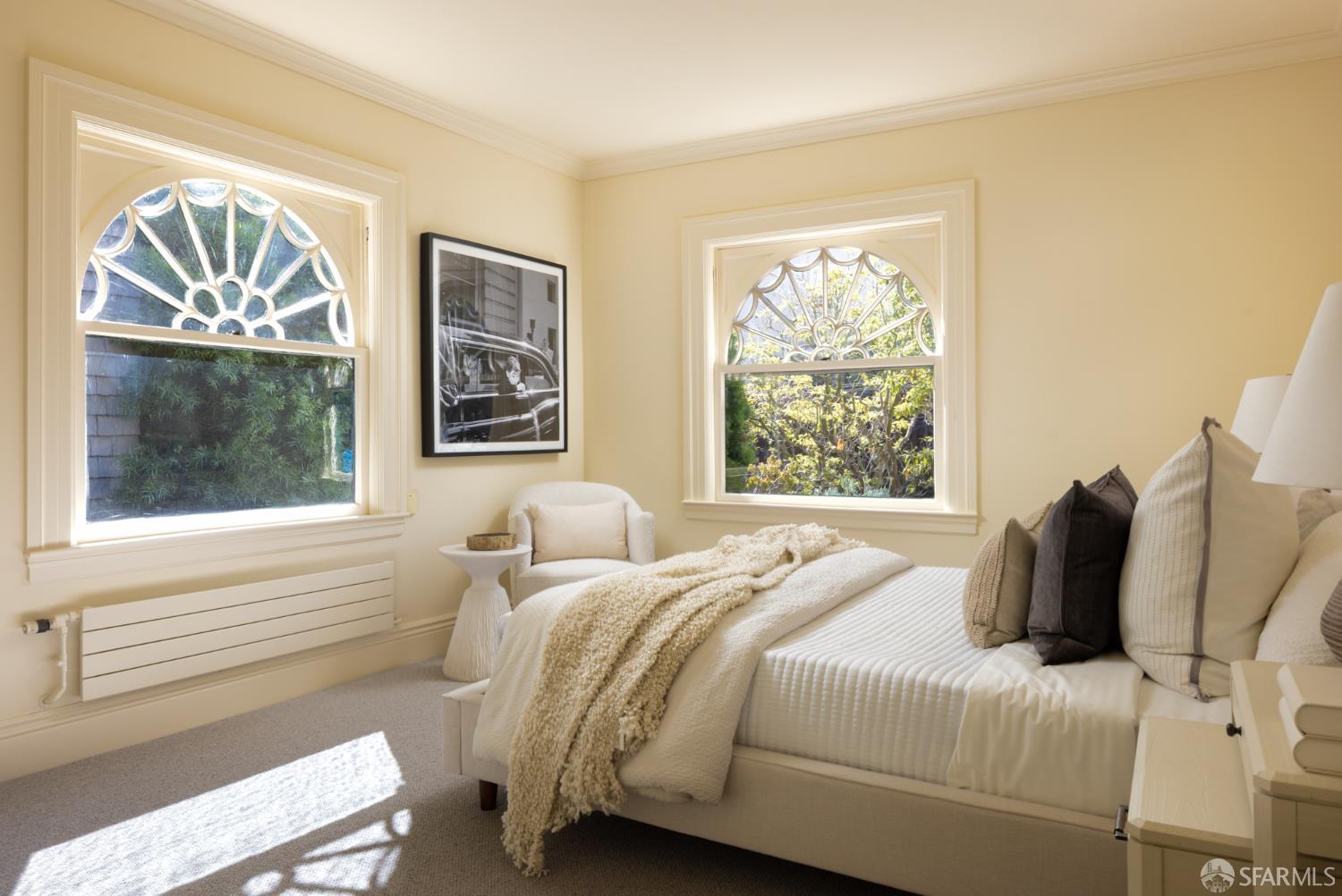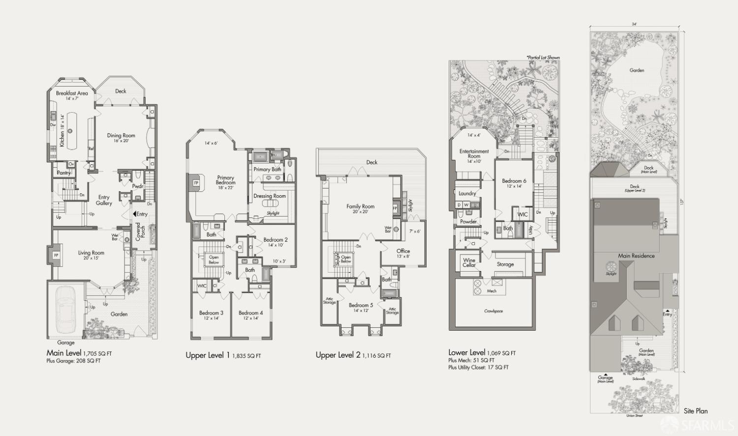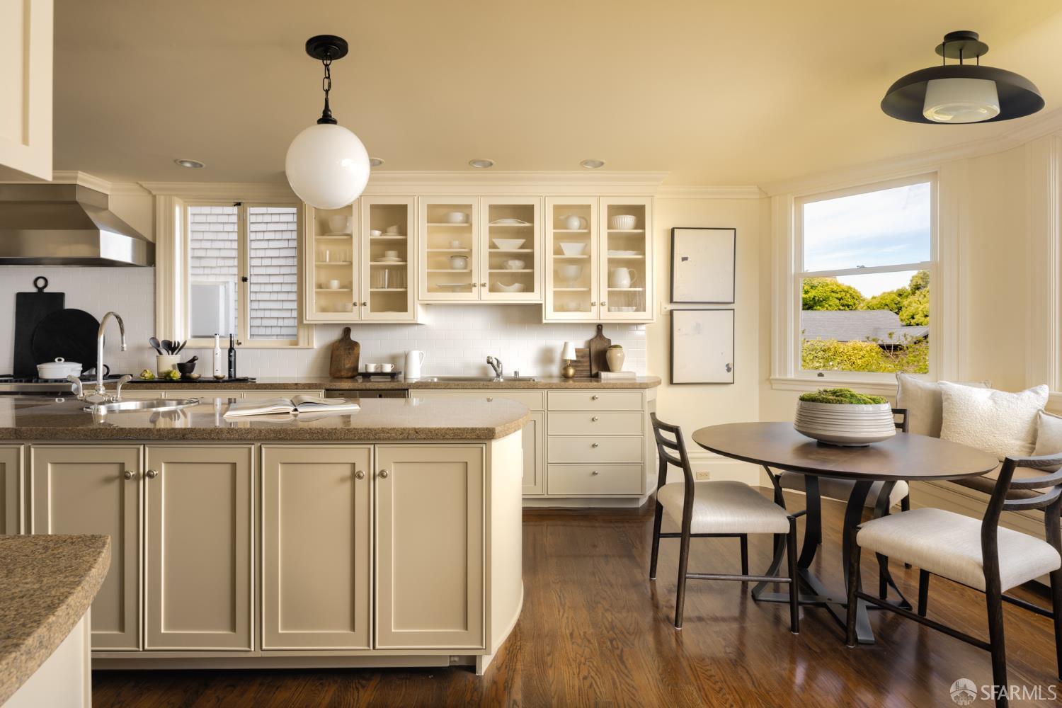 Ideally positioned on the prized north side of one of Cow Hollow’s premier blocks, 2512 Union Street is a classic San Francisco residence defined by timeless architecture and exceptional family living. Thoughtfully updated, the home offers a highly functional floor plan tailored to today’s lifestyle. The main level strikes a seamless balance between entertaining and everyday family living. Handsome millwork, coved ceilings, and custom cabinetry frame a series of well-proportioned rooms. At its center, a generous bay-view family room opens directly to the kitchen and breakfast area creating a warm, connected space for daily living. The robust kitchen is anchored by a large center island, custom cabinetry, a walk-in pantry, and professional-grade appliances. Off the entry, formal living and dining rooms are perfectly scaled for entertaining, with French doors opening to a private front courtyard. The second level presents an ideal family layout. An expansive primary suite captures iconic views of the Palace of Fine Arts and the Golden Gate Bridge, and includes built-ins, a wood-burning fireplace, a sitting area, a custom-fitted dressing room, and a spacious bath with dual sinks, soaking tub, and separate shower. Three additional bedrooms and two well-appointed baths complete the level, an uncommon and highly valuable configuration. The top floor is a natural extension of living space, anchored by a light-filled pentroom with cathedral ceilings and wall-to-wall windows framing sweeping views from the Golden Gate Bridge to Alcatraz. A view terrace opens directly off this space, while a private office, guest bedroom, and full bath complete a highly functional upper level well-suited for guests, work, or extended living. Below, the lower level is bright and inviting, offering a private guest or au pair suite, a flexible media or playroom, and direct access to a large, flat, north-facing garden with an expansive turf area. Timeless in character and thoughtfully executed, 2512 Union Street offers a rare combination of livability, light, and a floor plan that works effortlesslyset on one of Cow Hollow’s most desirable blocks.