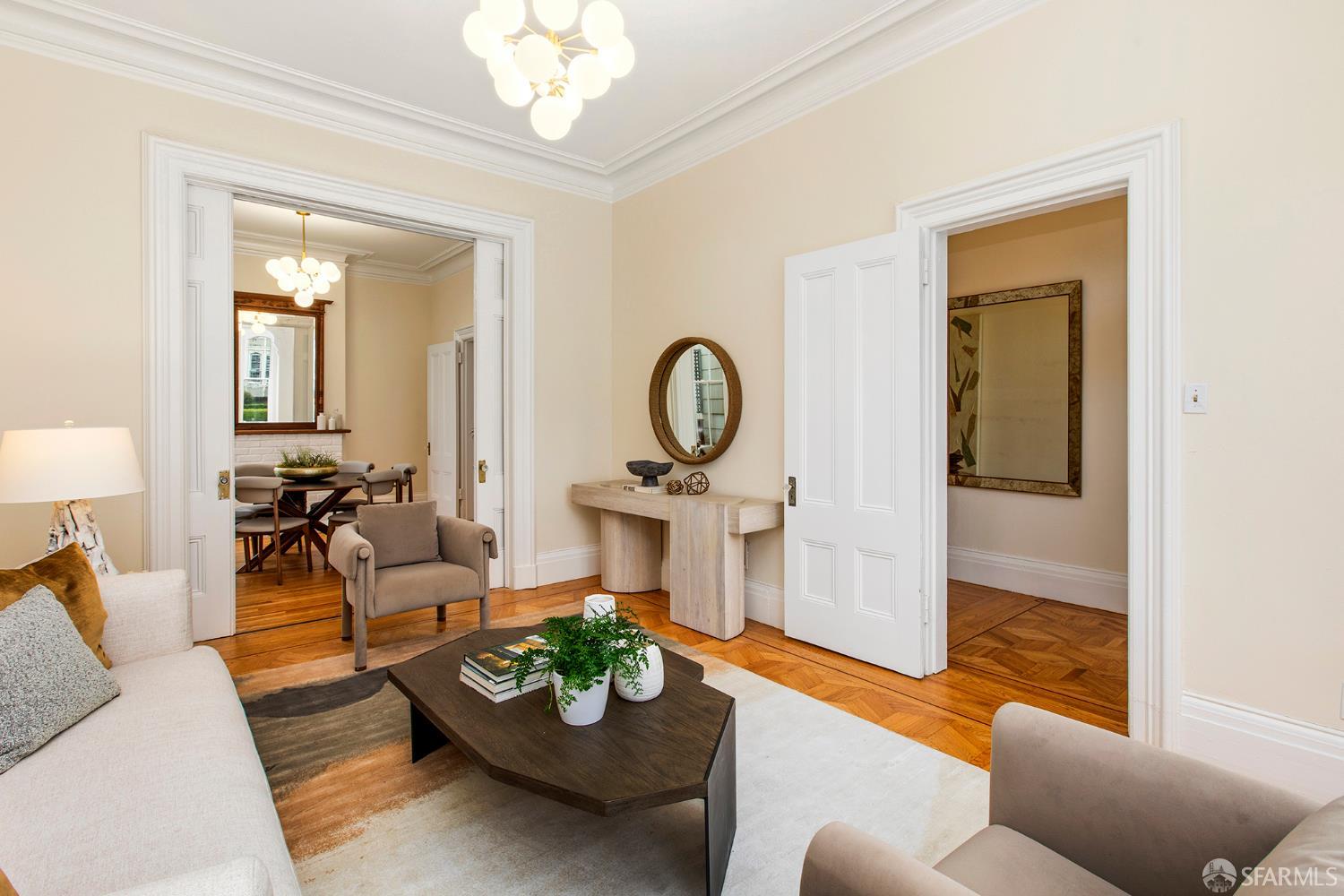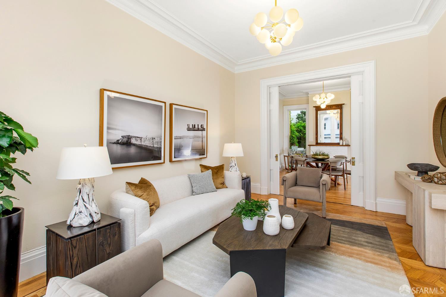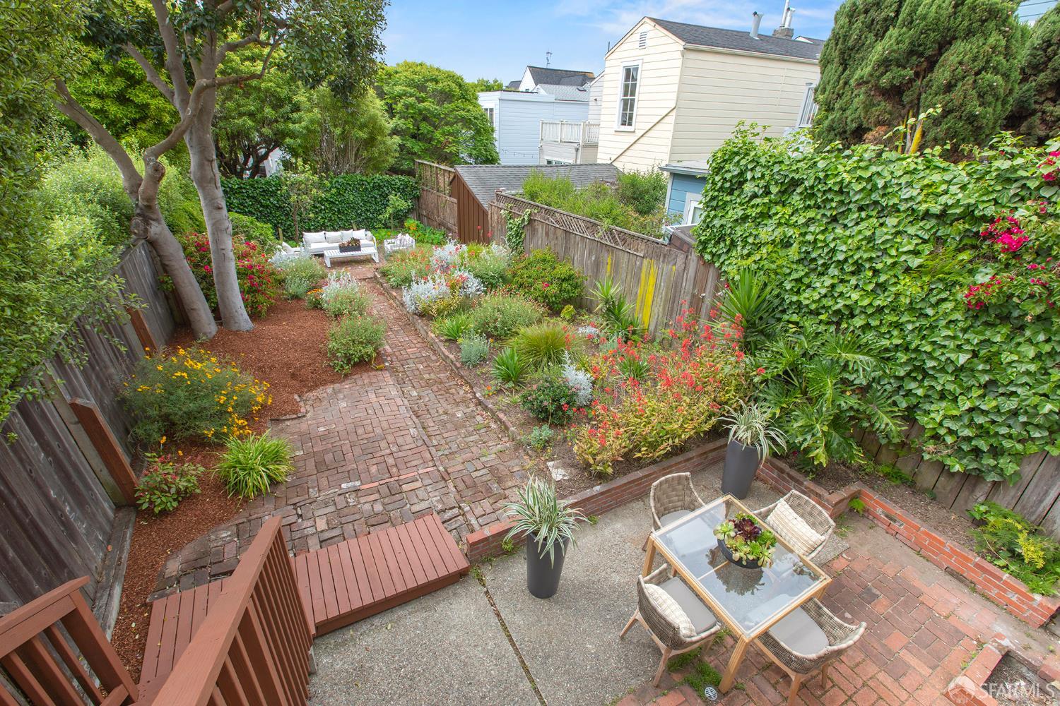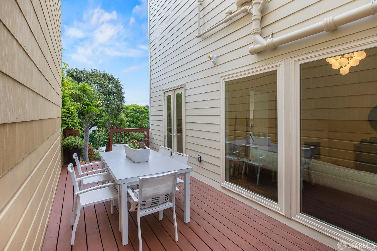 Awash in light from expansive bay windows, this lovely Victorian home boasts soaring ceilings, immaculate hardwood floors and lovely period details. Offering the ultimate in indoor/outdoor living, the main level has a bright chef’s kitchen that opens onto an expansive walk-out deck that looks onto a lush, exceptionally deep south-facing garden. Ideally-configured for entertaining, this level boasts a spacious living room, formal dining room, family room and bathroom. The upper level offers four generous bedrooms with abundant closet space and a sunny tiled bath. The southernmost bedroom enjoys a view of Sutro Tower and lovely outlooks to the deep, sunny garden. A sunlit studio apartment on the garden level offers a world of possibilities as guest quarters, home office or a rental unit with its own separate entrance. This lovely home is completed by garage parking and abundant storage. Very convenient to the shops and restaurants of Fillmore Street and the City’s most sought-after private schools!