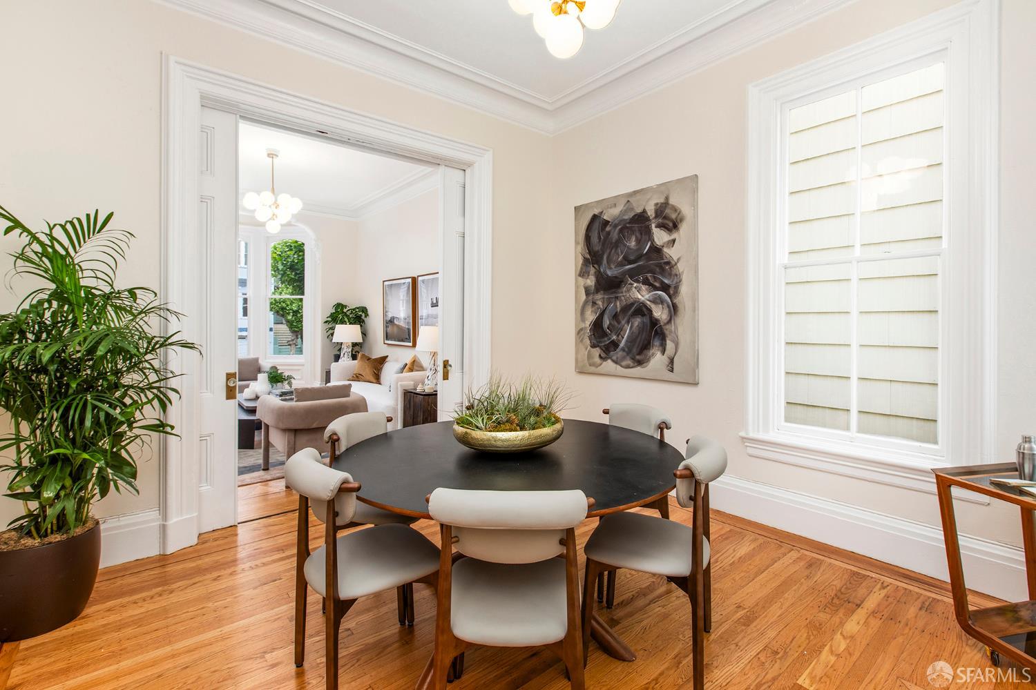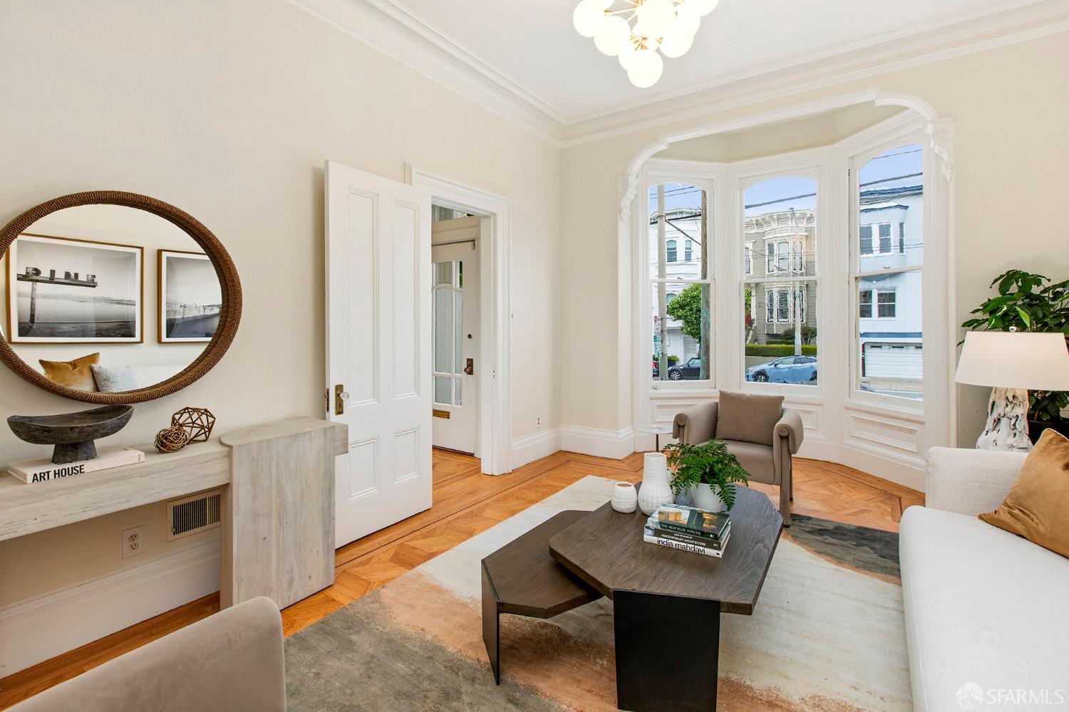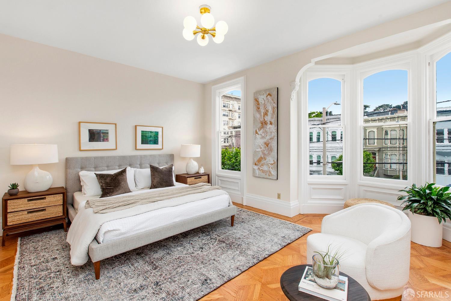 Awash in light from expansive bay windows, this lovely Victorian home boasts soaring ceilings, immaculate hardwood floors and lovely period details. Offering the ultimate in indoor/outdoor living, the main level has a bright chef’s kitchen that opens onto an expansive walk-out deck that looks onto a lush, exceptionally deep south-facing garden. Ideally-configured for entertaining, this level boasts a spacious living room, formal dining room, family room and bathroom. The upper level offers four generous bedrooms with abundant closet space and a sunny tiled bath. The southernmost bedroom enjoys a view of Sutro Tower and lovely outlooks to the deep, sunny garden. A sunlit studio apartment on the garden level offers a world of possibilities as guest quarters, home office or a rental unit with its own separate entrance. This lovely home is completed by garage parking and abundant storage. Very convenient to the shops and restaurants of Fillmore Street and the City’s most sought-after private schools!