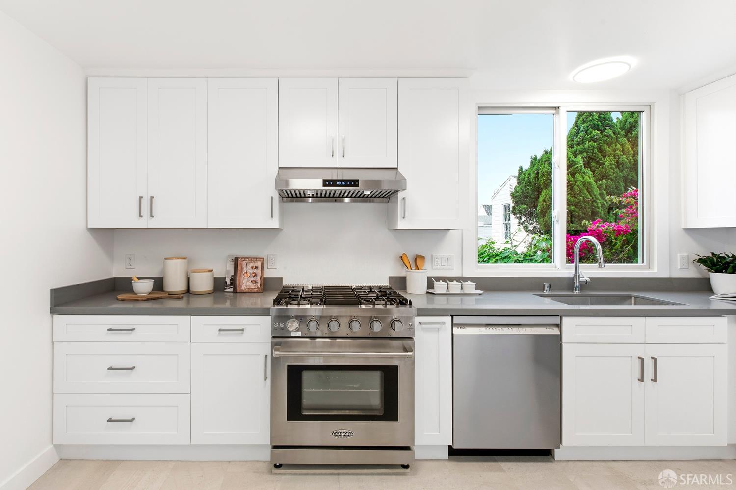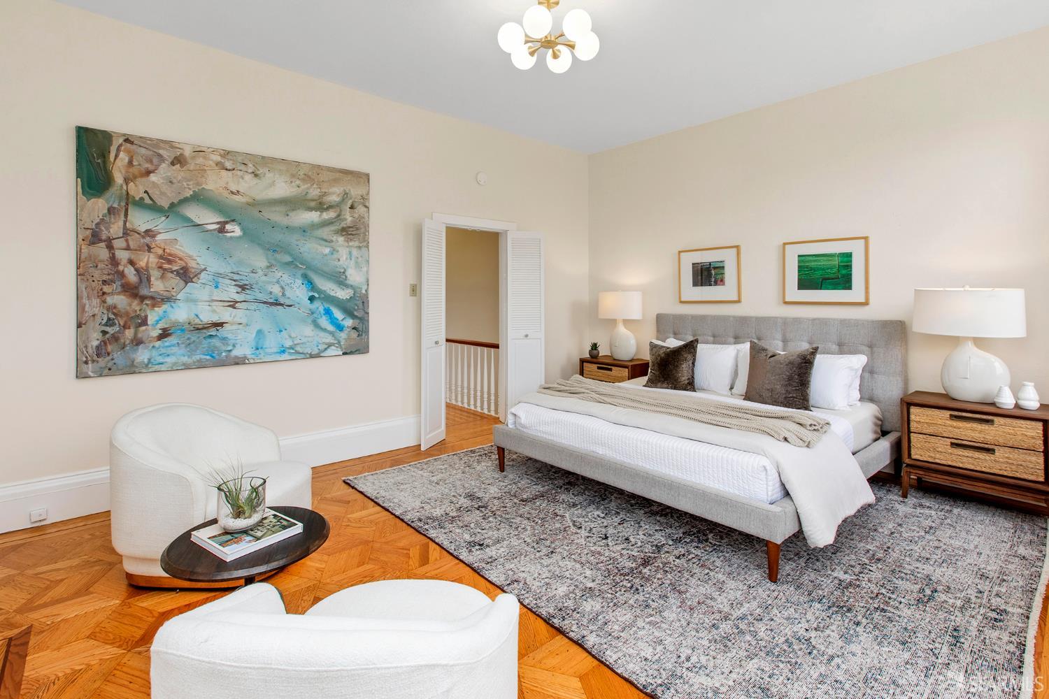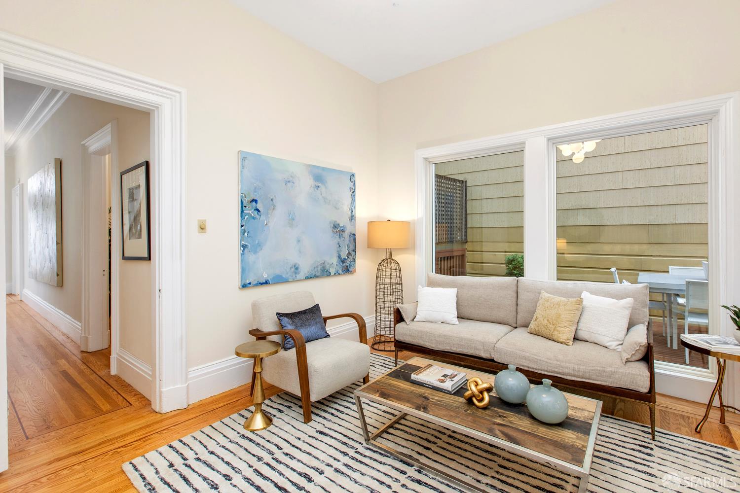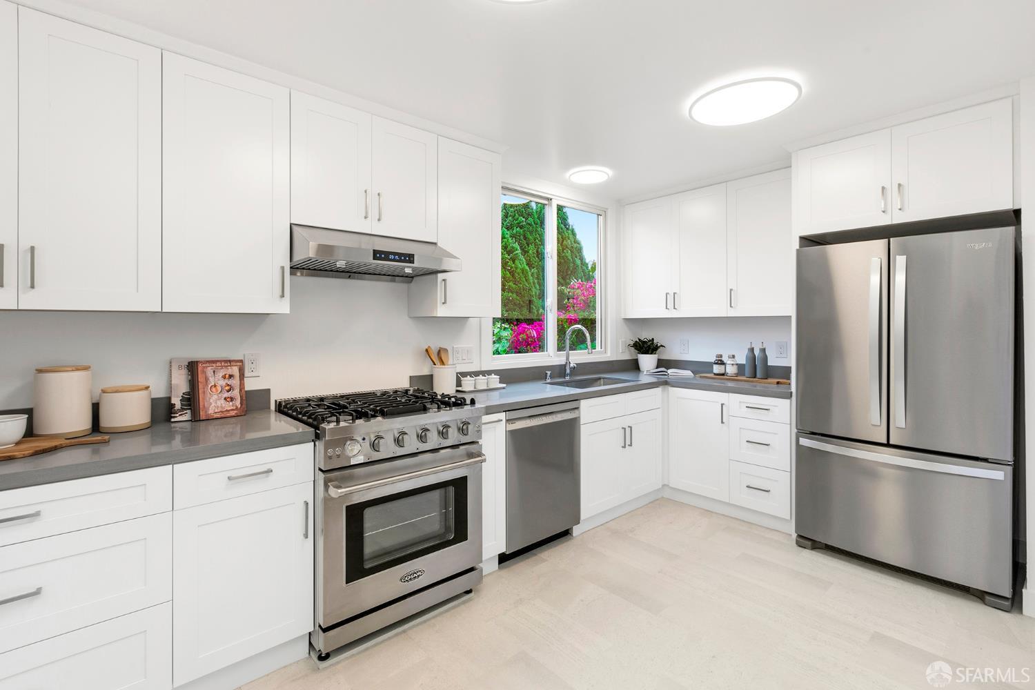 Awash in light from expansive bay windows, this lovely Victorian home boasts soaring ceilings, immaculate hardwood floors and lovely period details. Offering the ultimate in indoor/outdoor living, the main level has a bright chef’s kitchen that opens onto an expansive walk-out deck that looks onto a lush, exceptionally deep south-facing garden. Ideally-configured for entertaining, this level boasts a spacious living room, formal dining room, family room and bathroom. The upper level offers four generous bedrooms with abundant closet space and a sunny tiled bath. The southernmost bedroom enjoys a view of Sutro Tower and lovely outlooks to the deep, sunny garden. A sunlit studio apartment on the garden level offers a world of possibilities as guest quarters, home office or a rental unit with its own separate entrance. This lovely home is completed by garage parking and abundant storage. Very convenient to the shops and restaurants of Fillmore Street and the City’s most sought-after private schools!
