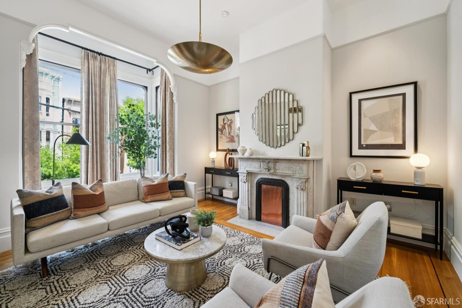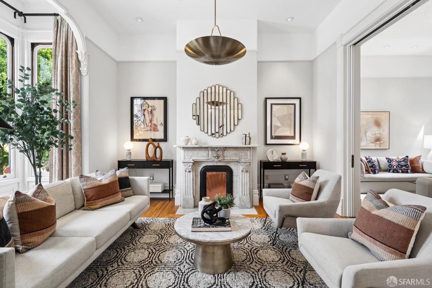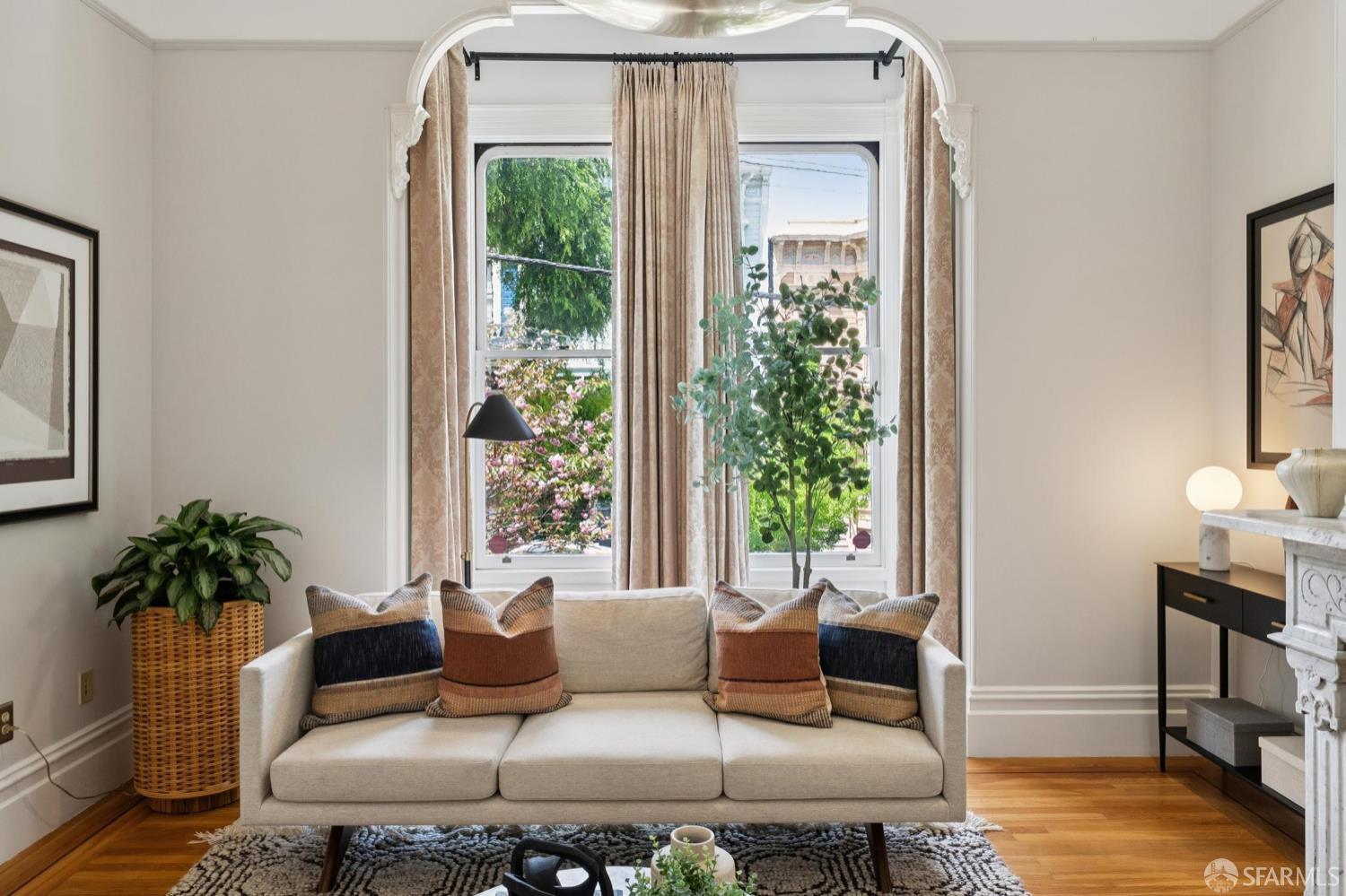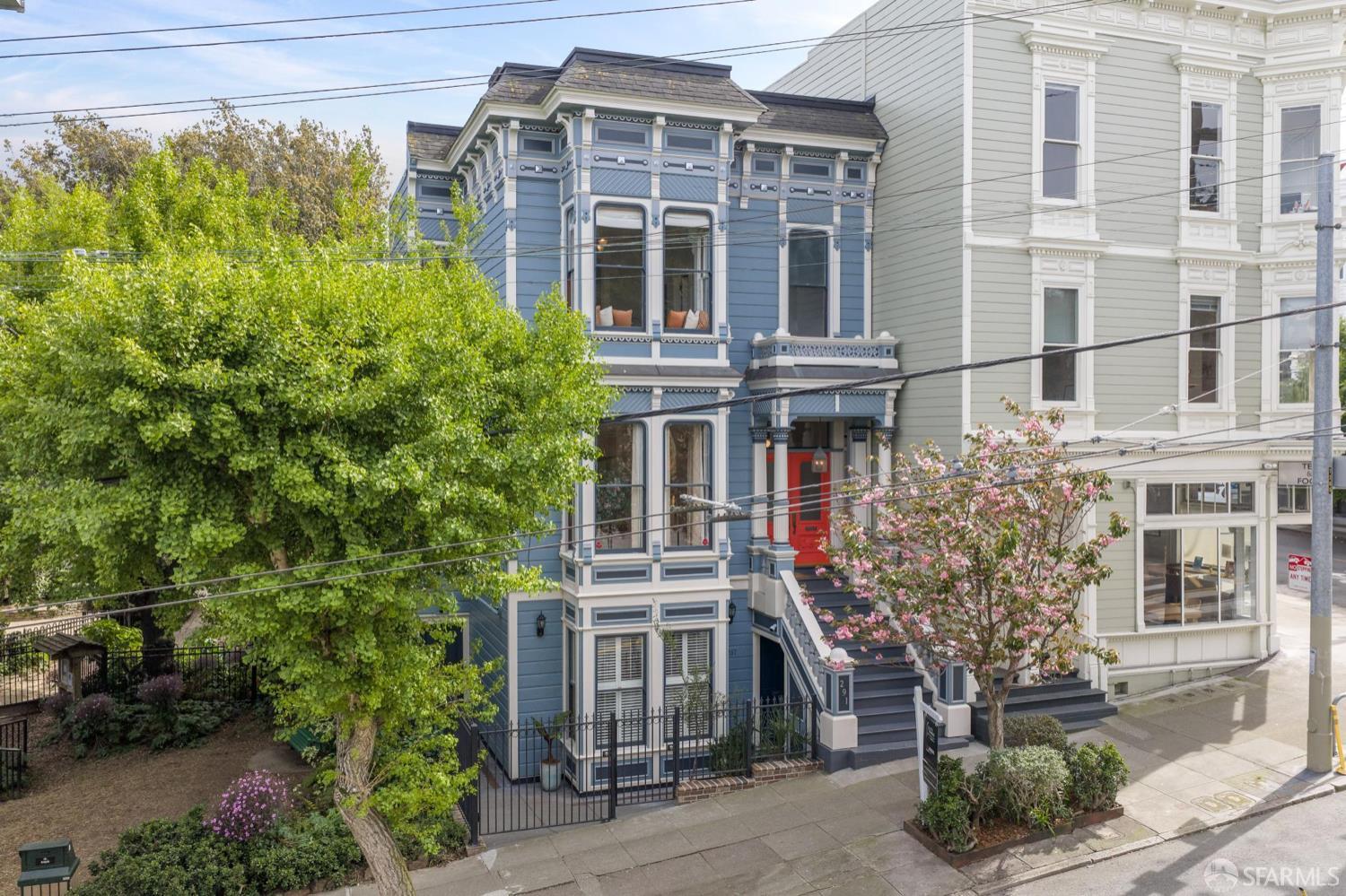 Back in 1885, Hayes Valley was the edge of San Francisco, and it was where the coolest people were moving to build a new kind of mansion -Eastlake Stick – to house their loved ones. Now, as then, it’s much the same – at the very center of San Francisco cultural life and where everyone wants to be. This grand home feels as fresh and exciting as it did 141 years ago. You are welcomed by a double doored entry, elegant entertaining rooms on the left and a sweeping curved staircase to the bedroom level on the right. At the rear of the main floor, past a half/bath, the open dining room/kitchen are perfect for, well, spending most of your time together (w/Viking range & stylish combo walnut/soapstone counters). The upper level features a two-room primary suite at the front, with custom built in closets, romantic window seat and huge bath with a soaking tub, double vanity and step in shower + two more large bedrooms and a bath + laundry. The lower level compliments the main house as 3 more beds/1 bath + a kitchen that goes directly to the rear garden or it can be used as a separate legal 2/1 unit. The home is further enhanced with luxurious conveniences like an outdoor kitchen + built-in firepit and radiant floor heating. And all the center of everything that matters in SF.