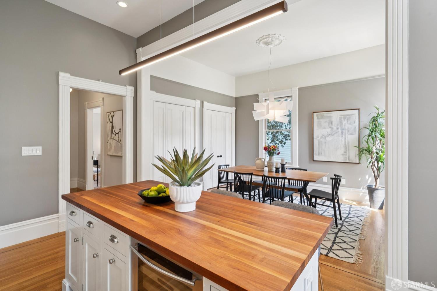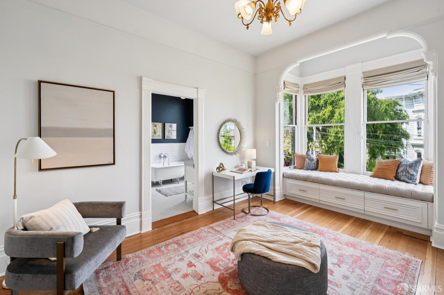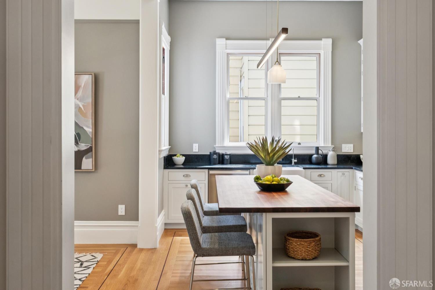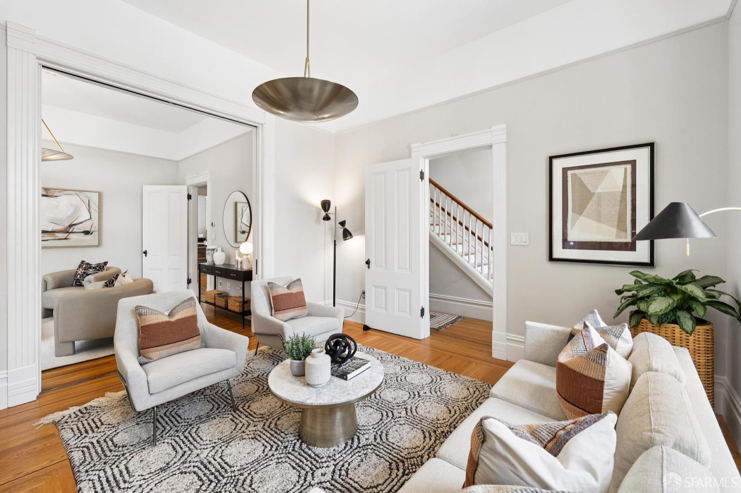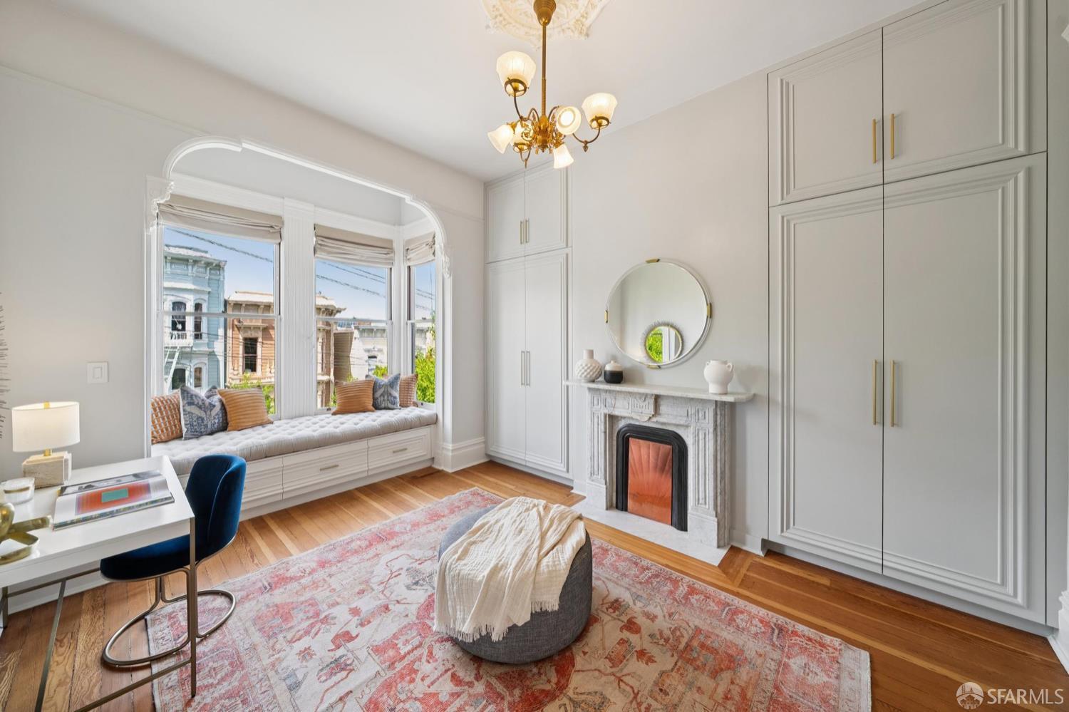 Back in 1885, Hayes Valley was the edge of San Francisco, and it was where the coolest people were moving to build a new kind of mansion -Eastlake Stick – to house their loved ones. Now, as then, it’s much the same – at the very center of San Francisco cultural life and where everyone wants to be. This grand home feels as fresh and exciting as it did 141 years ago. You are welcomed by a double doored entry, elegant entertaining rooms on the left and a sweeping curved staircase to the bedroom level on the right. At the rear of the main floor, past a half/bath, the open dining room/kitchen are perfect for, well, spending most of your time together (w/Viking range & stylish combo walnut/soapstone counters). The upper level features a two-room primary suite at the front, with custom built in closets, romantic window seat and huge bath with a soaking tub, double vanity and step in shower + two more large bedrooms and a bath + laundry. The lower level compliments the main house as 3 more beds/1 bath + a kitchen that goes directly to the rear garden or it can be used as a separate legal 2/1 unit. The home is further enhanced with luxurious conveniences like an outdoor kitchen + built-in firepit and radiant floor heating. And all the center of everything that matters in SF.