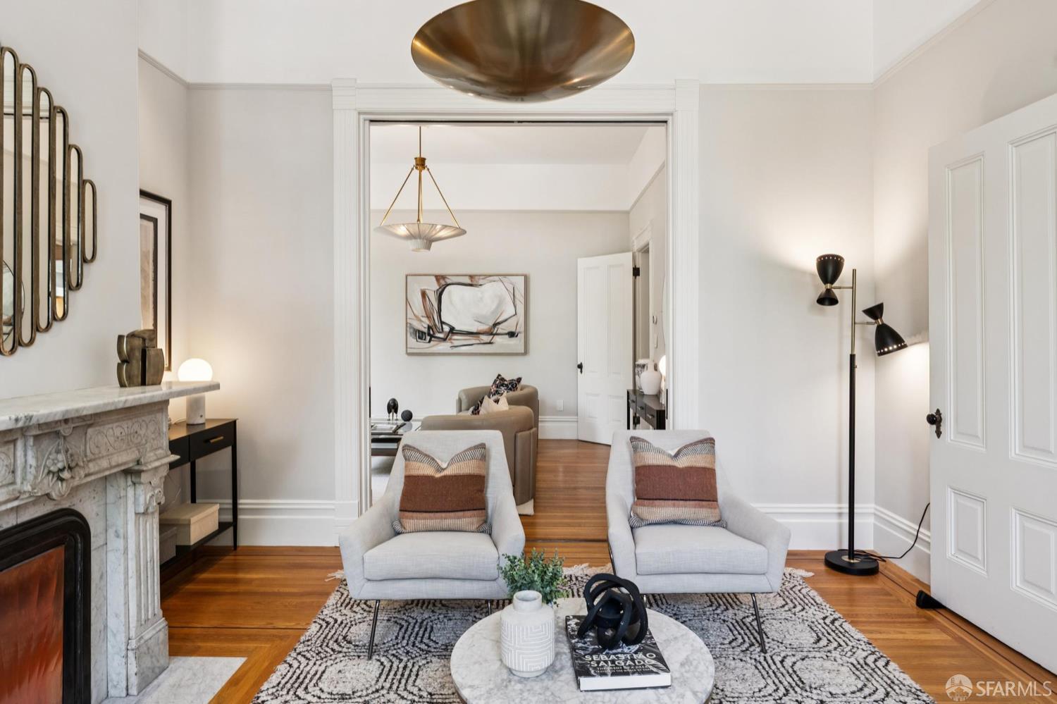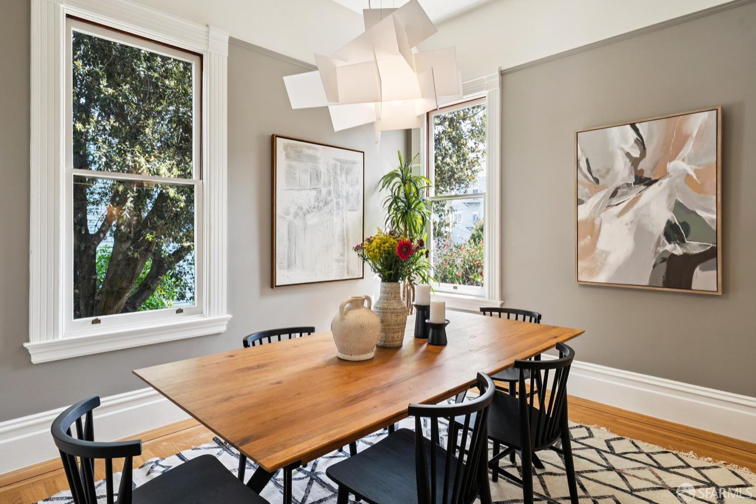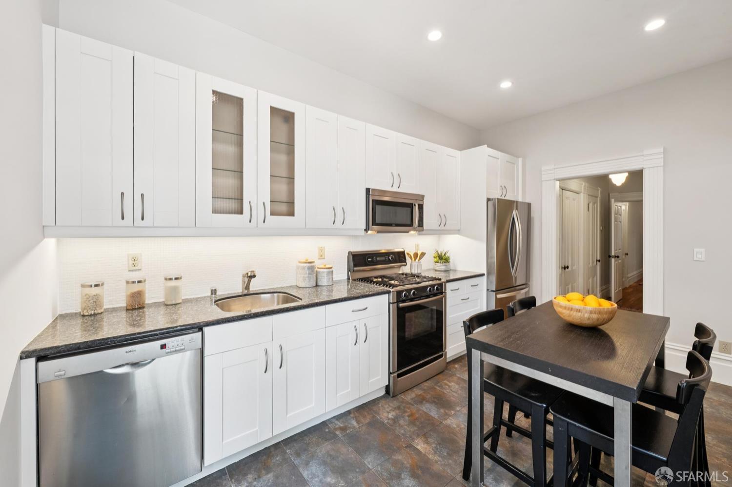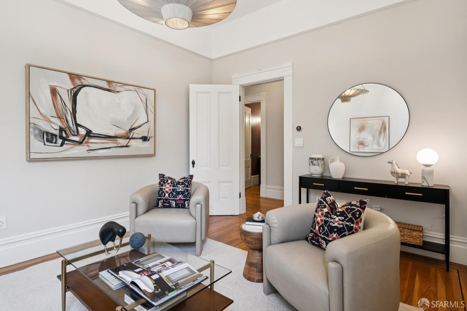 Back in 1885, Hayes Valley was the edge of San Francisco, and it was where the coolest people were moving to build a new kind of mansion -Eastlake Stick – to house their loved ones. Now, as then, it’s much the same – at the very center of San Francisco cultural life and where everyone wants to be. This grand home feels as fresh and exciting as it did 141 years ago. You are welcomed by a double doored entry, elegant entertaining rooms on the left and a sweeping curved staircase to the bedroom level on the right. At the rear of the main floor, past a half/bath, the open dining room/kitchen are perfect for, well, spending most of your time together (w/Viking range & stylish combo walnut/soapstone counters). The upper level features a two-room primary suite at the front, with custom built in closets, romantic window seat and huge bath with a soaking tub, double vanity and step in shower + two more large bedrooms and a bath + laundry. The lower level compliments the main house as 3 more beds/1 bath + a kitchen that goes directly to the rear garden or it can be used as a separate legal 2/1 unit. The home is further enhanced with luxurious conveniences like an outdoor kitchen + built-in firepit and radiant floor heating. And all the center of everything that matters in SF.