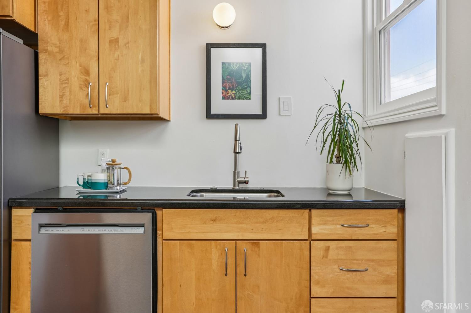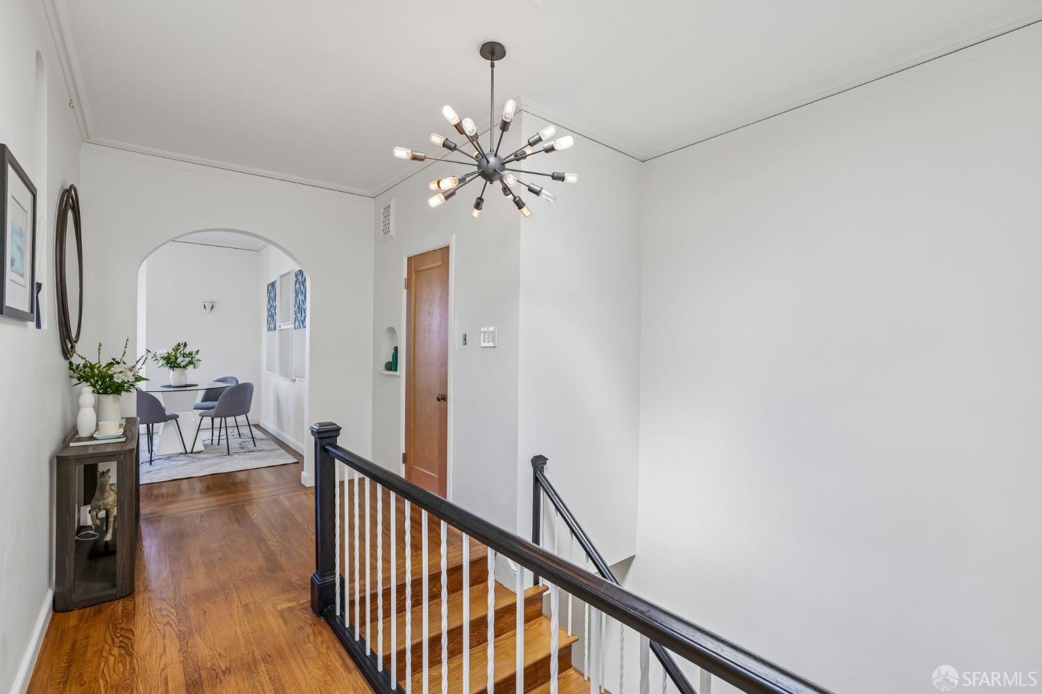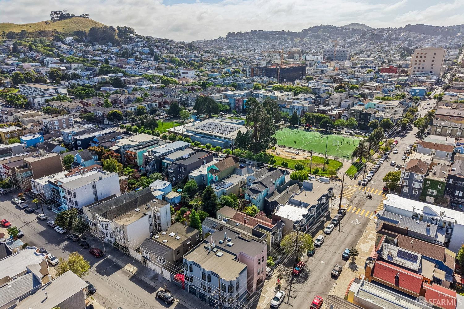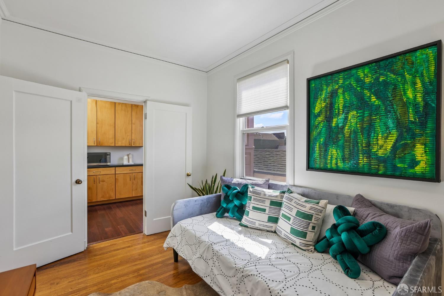 Perched atop a classic Art Deco building in the heart of the Mission, this beautifully updated top-floor 2BD/1BA condo blends timeless character with modern comfort in one of San Francisco’s most vibrant neighborhoods. Just moments from beloved cafes, acclaimed restaurants, parks, murals, and the cultural touchstones that define the Mission, the location is as dynamic as the home itself. Very close to Garfield Square Park with its recently renovated public pool and Precita Park with an excellent children’s playground. The location also offers easy access to freeways both north and south, as well as convenient public transportation including BART. Natural light pours in from every direction, enhanced by three skylights and windows on multiple exposures. Framed views of Sutro Tower and Bernal Hill create a stunning backdrop to daily life. A spacious landing with an oversized hallway closet welcomes you at the top of the stairs and opens to a generous living room featuring light on two sides, elegant bay windows, and inviting scale. Gorgeous period details including graceful arches, charming nooks, and classic Art Deco lines add warmth and personality throughout. The remodeled kitchen and bath pair clean, modern finishes with the home’s original style, creating a seamless blend of old and new. The sun-filled south-facing primary bedroom enjoys beautiful natural light and views toward Bernal Hill, while the second bedroom offers flexibility as a guest room, nursery, or home office. Part of a charming two-unit HOA, this residence offers the rare combination of low monthly dues and exceptional amenities. Enjoy a shared south-facing backyard, an oversized tandem parking space in the two-car garage, and substantial additional storage. A special Mission home filled with light, character, and convenience, this is city living at its best.