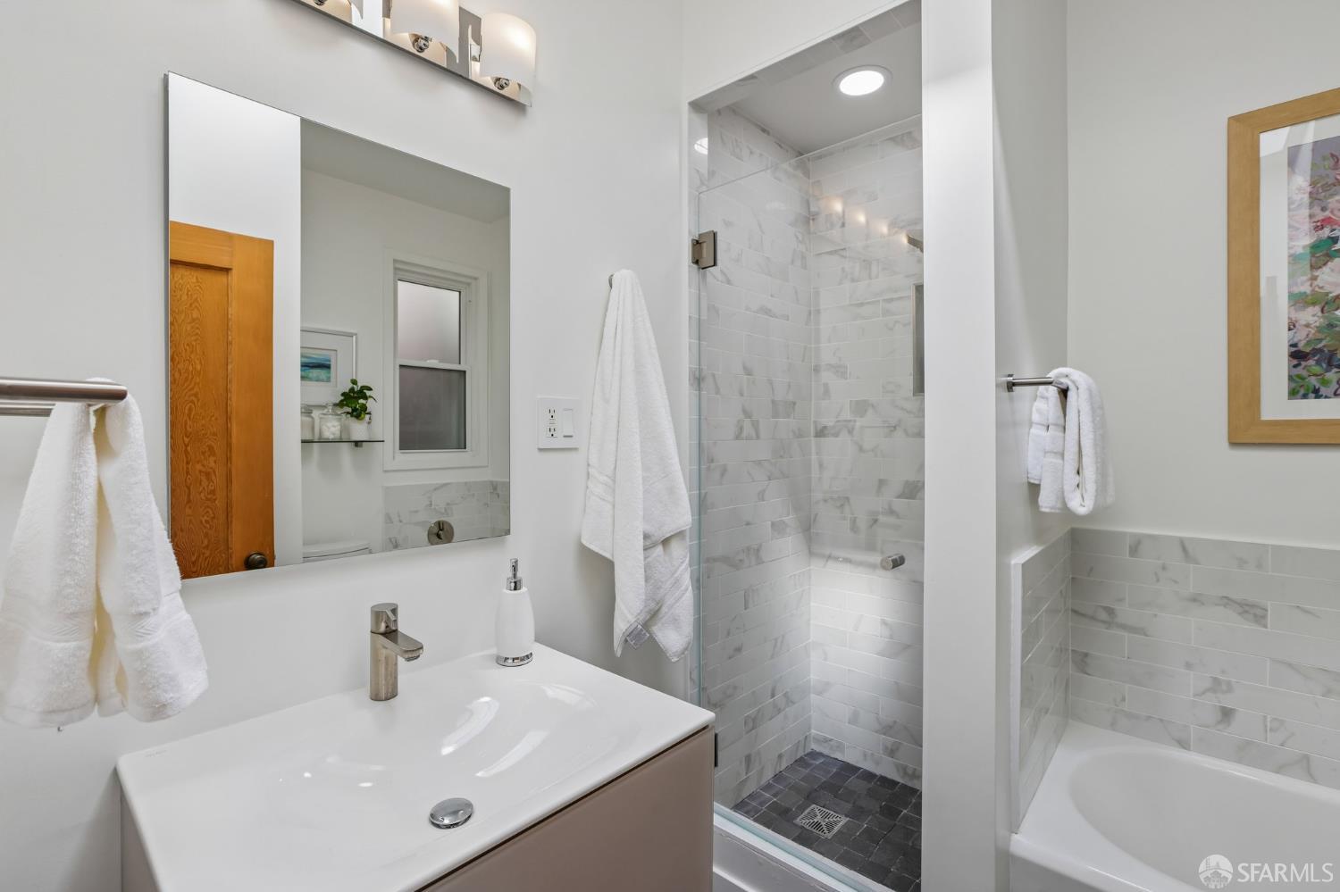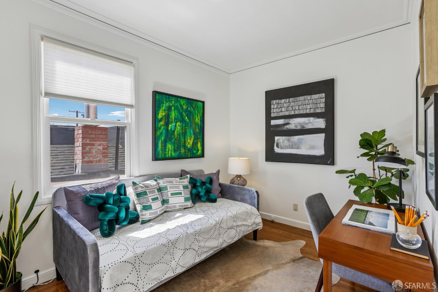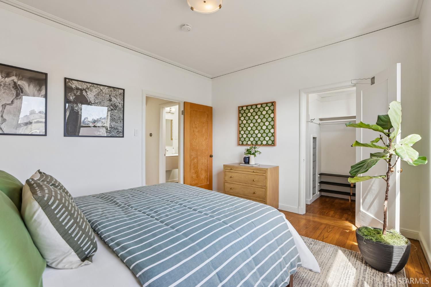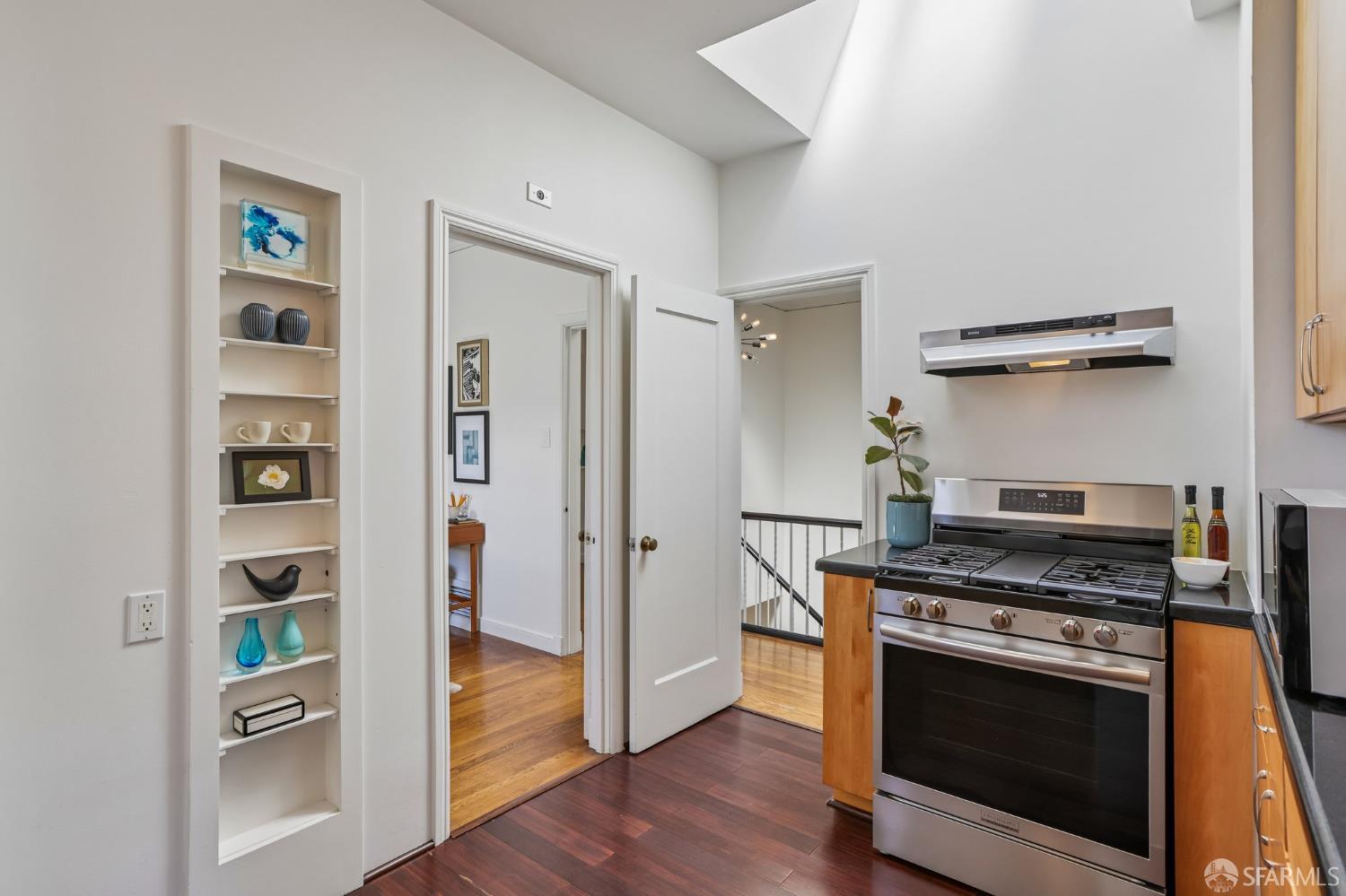 Perched atop a classic Art Deco building in the heart of the Mission, this beautifully updated top-floor 2BD/1BA condo blends timeless character with modern comfort in one of San Francisco’s most vibrant neighborhoods. Just moments from beloved cafes, acclaimed restaurants, parks, murals, and the cultural touchstones that define the Mission, the location is as dynamic as the home itself. Very close to Garfield Square Park with its recently renovated public pool and Precita Park with an excellent children’s playground. The location also offers easy access to freeways both north and south, as well as convenient public transportation including BART. Natural light pours in from every direction, enhanced by three skylights and windows on multiple exposures. Framed views of Sutro Tower and Bernal Hill create a stunning backdrop to daily life. A spacious landing with an oversized hallway closet welcomes you at the top of the stairs and opens to a generous living room featuring light on two sides, elegant bay windows, and inviting scale. Gorgeous period details including graceful arches, charming nooks, and classic Art Deco lines add warmth and personality throughout. The remodeled kitchen and bath pair clean, modern finishes with the home’s original style, creating a seamless blend of old and new. The sun-filled south-facing primary bedroom enjoys beautiful natural light and views toward Bernal Hill, while the second bedroom offers flexibility as a guest room, nursery, or home office. Part of a charming two-unit HOA, this residence offers the rare combination of low monthly dues and exceptional amenities. Enjoy a shared south-facing backyard, an oversized tandem parking space in the two-car garage, and substantial additional storage. A special Mission home filled with light, character, and convenience, this is city living at its best.