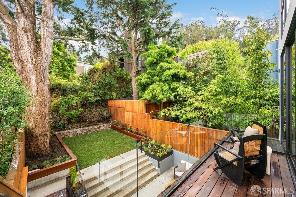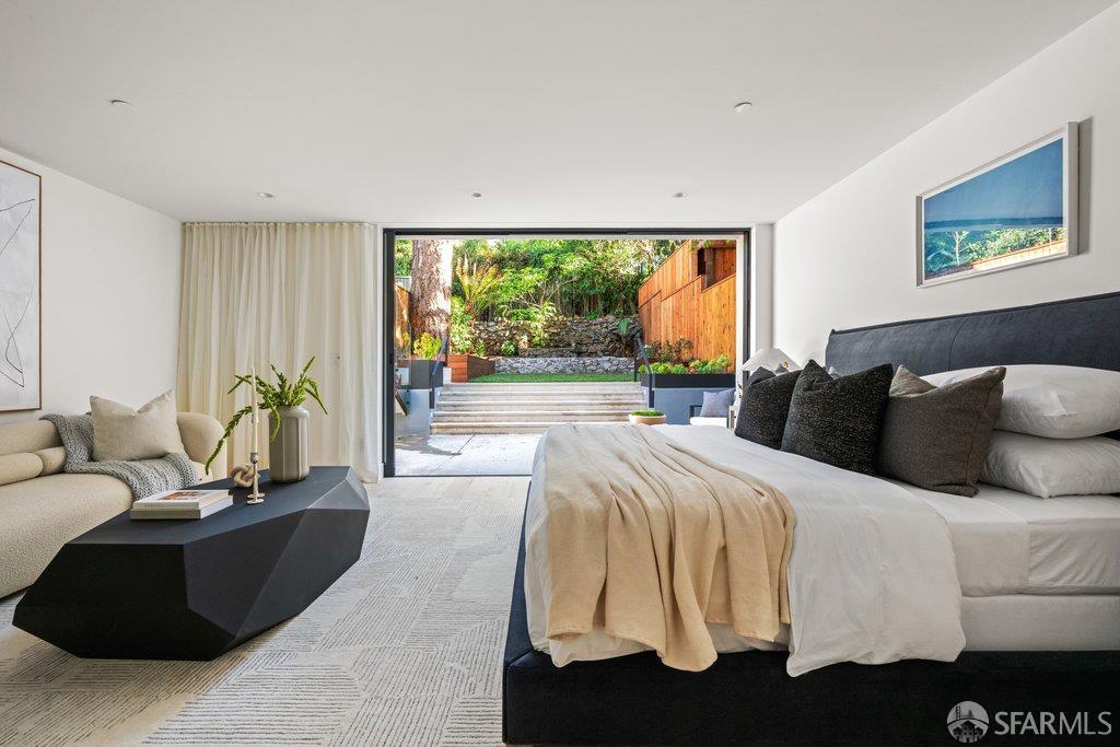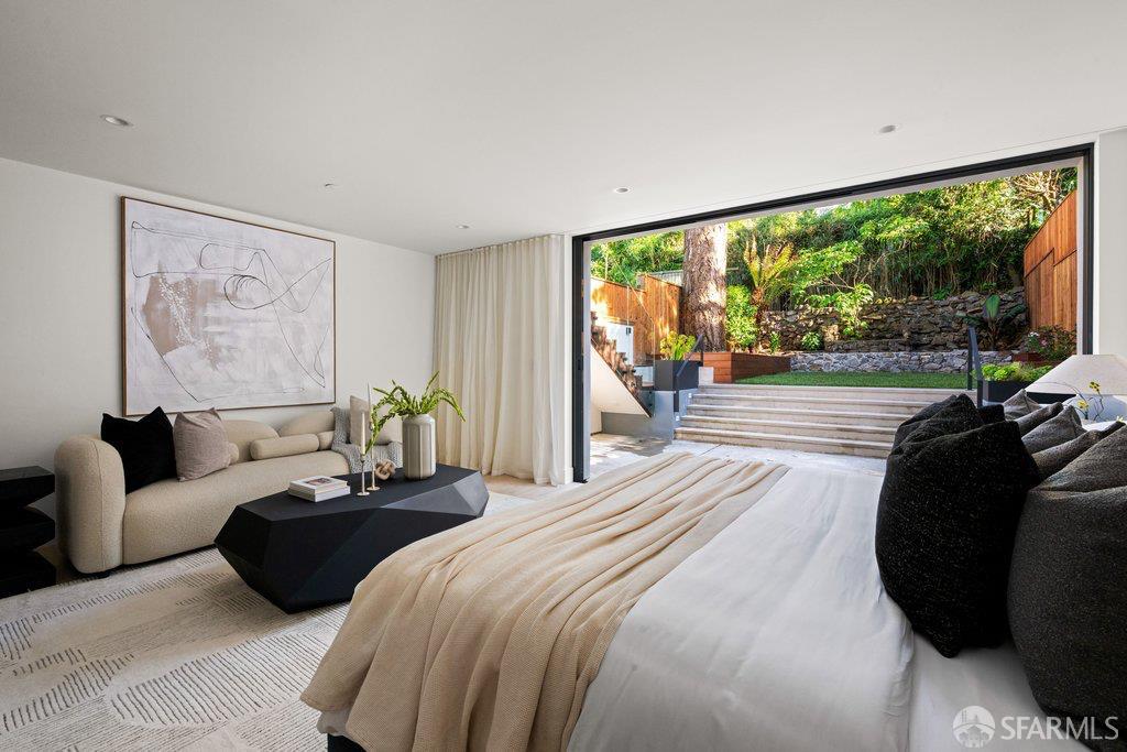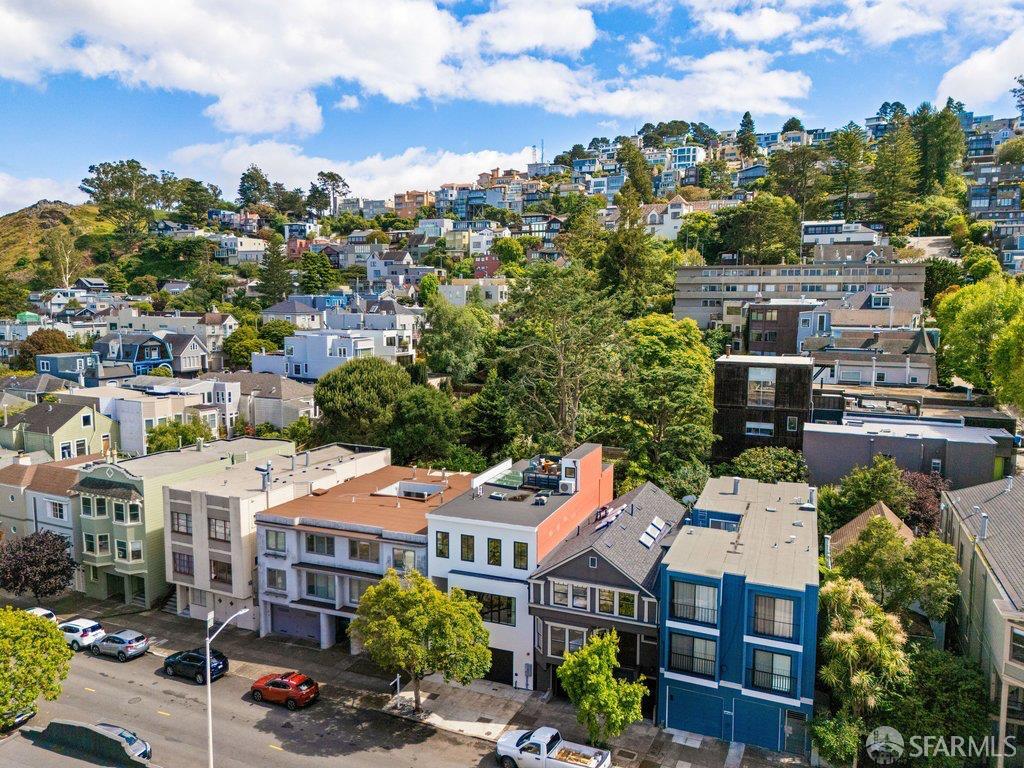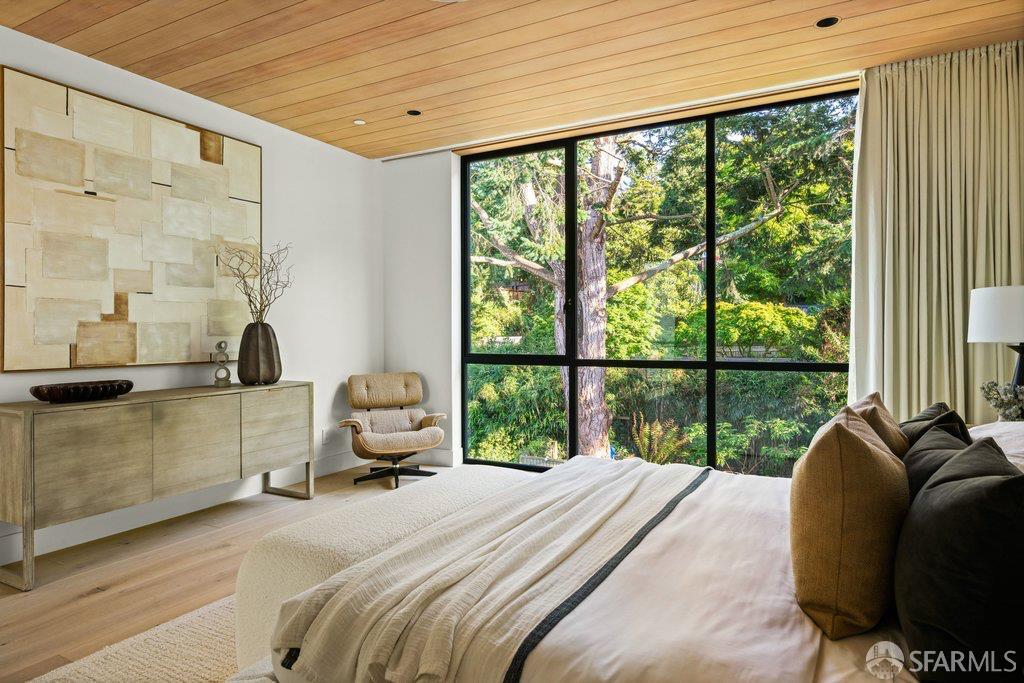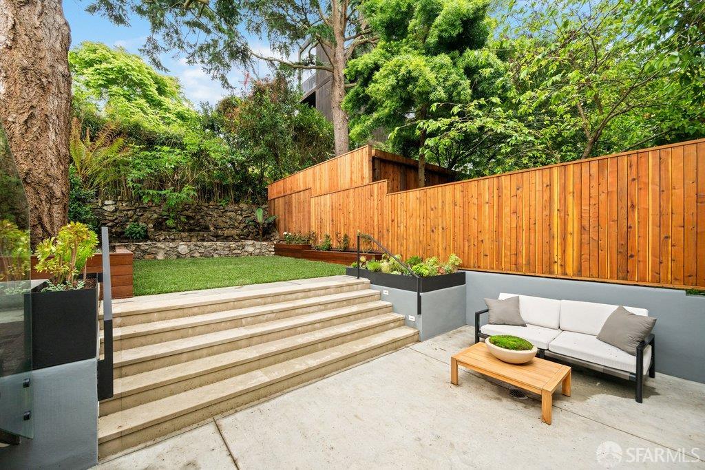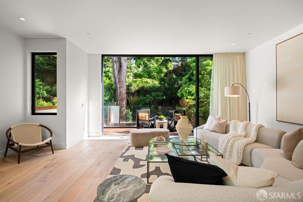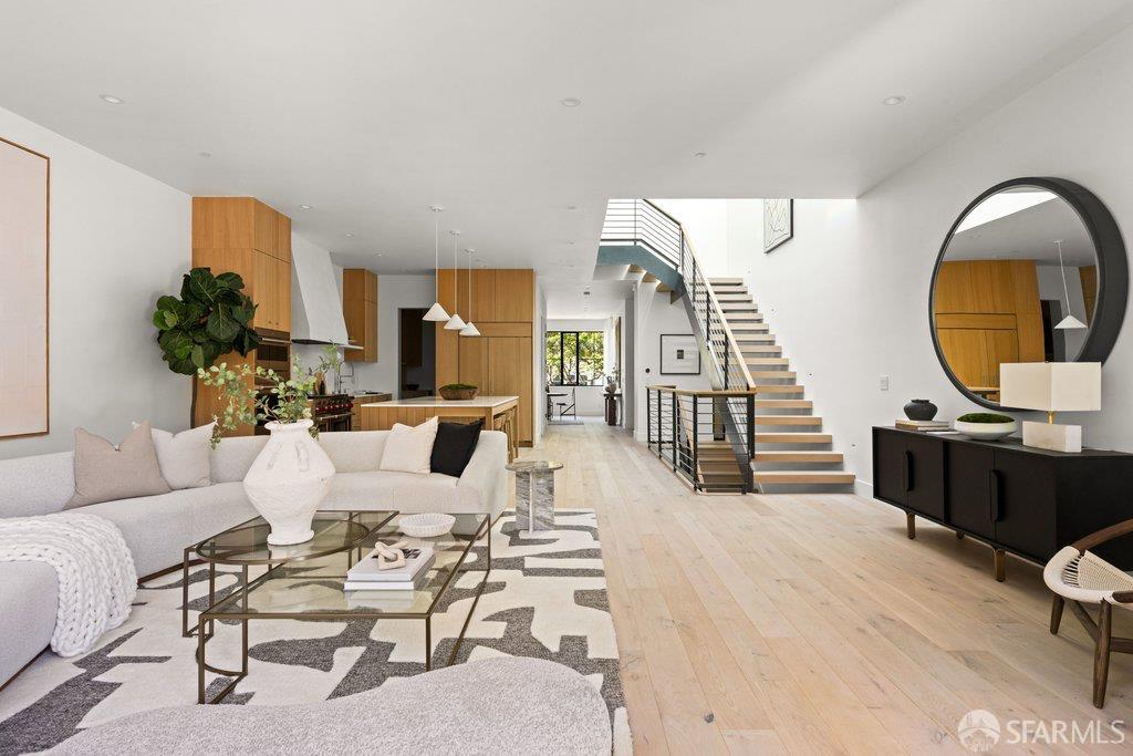 A Striking Nearly New Single Family Residence, gorgeously rebuilt by the current owner, under the creative eye of McElroy Architecture. The home features all of the elements of luxurious urban living: beautiful open concept floor plan with exceptional volume, custom floor to ceiling retractable door system with brilliant natural light, exquisite fit and finish throughout, and phenomenal indoor/outdoor components including a panoramic view roof deck, and an intimate connection to the lush, verdant garden. Sophisticated, organic warmth comes through in every space of this newly rebuilt residence, driven by a refined palette of Henrybuilt rift-sawn white oak cabinetry and European oak floors. The welcoming tone is balanced by a crisp architectural aesthetic that feels sleek and modern with ceiling heights reaching 11 feet. Finishes have been thoughtfully curated throughout, including herringbone-patterned marble floors in the baths, and a custom, floating center stairway under an over-sized skylight, and handsome natural wood ceiling accents in the primary bedroom and entry. The layout offers both flexibility and scale with four bedrooms, a dedicated office, and expansive living spaces suited to both daily living and entertaining. A striking kitchen anchors the main level, complemented by a dining room with built-in wine bar and a ground-level wine cellar. The retractable Fleetwood glass door system opens wide to a generous deck with stairs leading to the rear garden, where a vintage stone wall adds a sense of history and character. The new owner will love the upper bedroom level, highlighted by a luxurious primary suite with spacious walk in closet, two bedrooms down the hall that share a hall bath, an office with desk built-in, and a fourth bedroom with en suite bath that is privately positioned on the ground level. A rooftop deck sits above with views that extend beyond the neighborhood to St. Ignatius Cathedral, Angel Island, and the Downtown San Francisco Skyline. Just moments from the museums and gardens of Golden Gate Park, and the cafes/shopping on Cole Street, this home offers a compelling combination of state of the art design, excessive comfort, and central convenient location.
