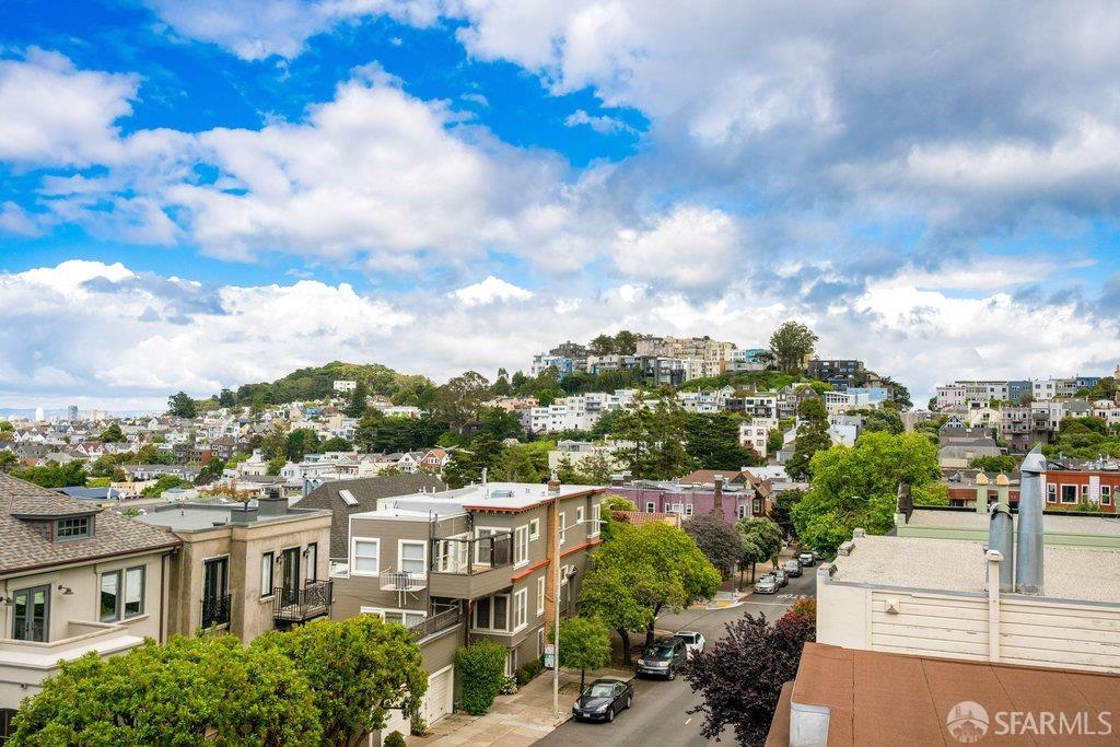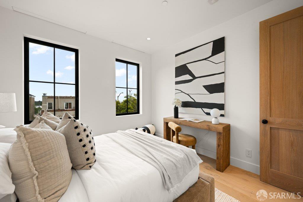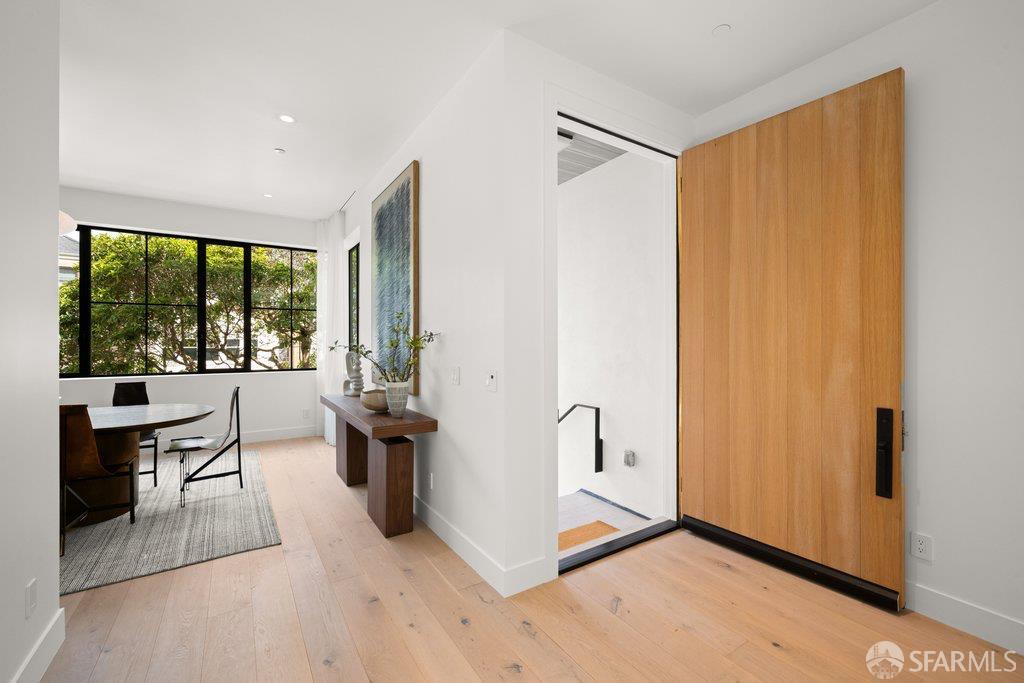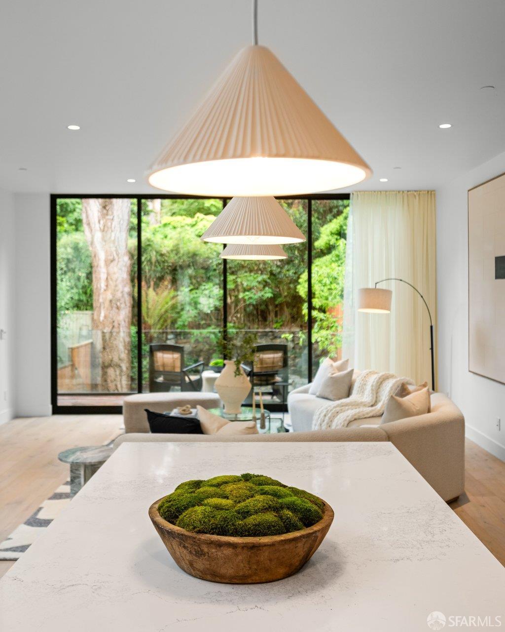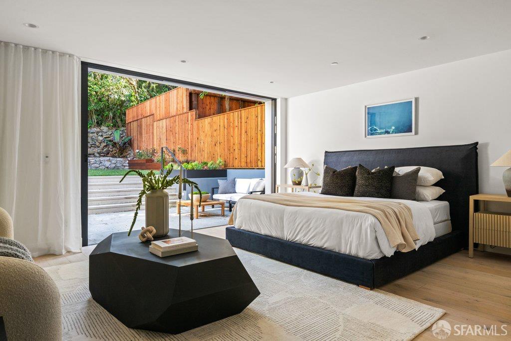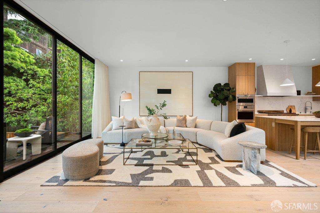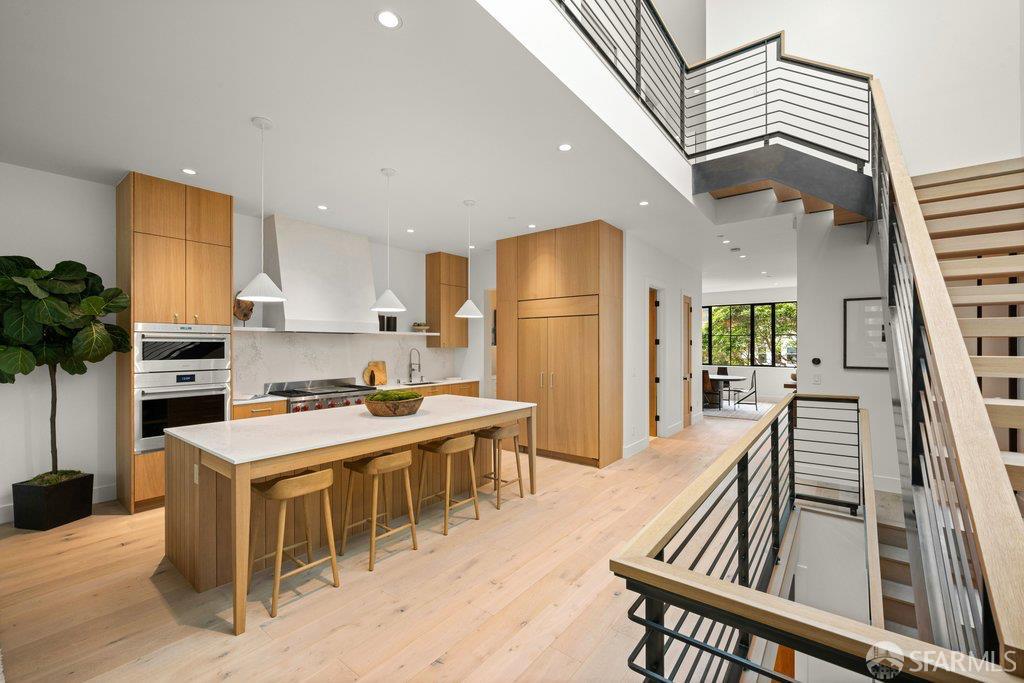A Striking Nearly New Single Family Residence, gorgeously rebuilt by the current owner, under the creative eye of McElroy Architecture. The home features all of the elements of luxurious urban living: beautiful open concept floor plan with exceptional volume, custom floor to ceiling retractable door system with brilliant natural light, exquisite fit and finish throughout, and phenomenal indoor/outdoor components including a panoramic view roof deck, and an intimate connection to the lush, verdant garden. Sophisticated, organic warmth comes through in every space of this newly rebuilt residence, driven by a refined palette of Henrybuilt rift-sawn white oak cabinetry and European oak floors. The welcoming tone is balanced by a crisp architectural aesthetic that feels sleek and modern with ceiling heights reaching 11 feet. Finishes have been thoughtfully curated throughout, including herringbone-patterned marble floors in the baths, and a custom, floating center stairway under an over-sized skylight, and handsome natural wood ceiling accents in the primary bedroom and entry. The layout offers both flexibility and scale with four bedrooms, a dedicated office, and expansive living spaces suited to both daily living and entertaining. A striking kitchen anchors the main level, complemented by a dining room with built-in wine bar and a ground-level wine cellar. The retractable Fleetwood glass door system opens wide to a generous deck with stairs leading to the rear garden, where a vintage stone wall adds a sense of history and character. The new owner will love the upper bedroom level, highlighted by a luxurious primary suite with spacious walk in closet, two bedrooms down the hall that share a hall bath, an office with desk built-in, and a fourth bedroom with en suite bath that is privately positioned on the ground level. A rooftop deck sits above with views that extend beyond the neighborhood to St. Ignatius Cathedral, Angel Island, and the Downtown San Francisco Skyline. Just moments from the museums and gardens of Golden Gate Park, and the cafes/shopping on Cole Street, this home offers a compelling combination of state of the art design, excessive comfort, and central convenient location.