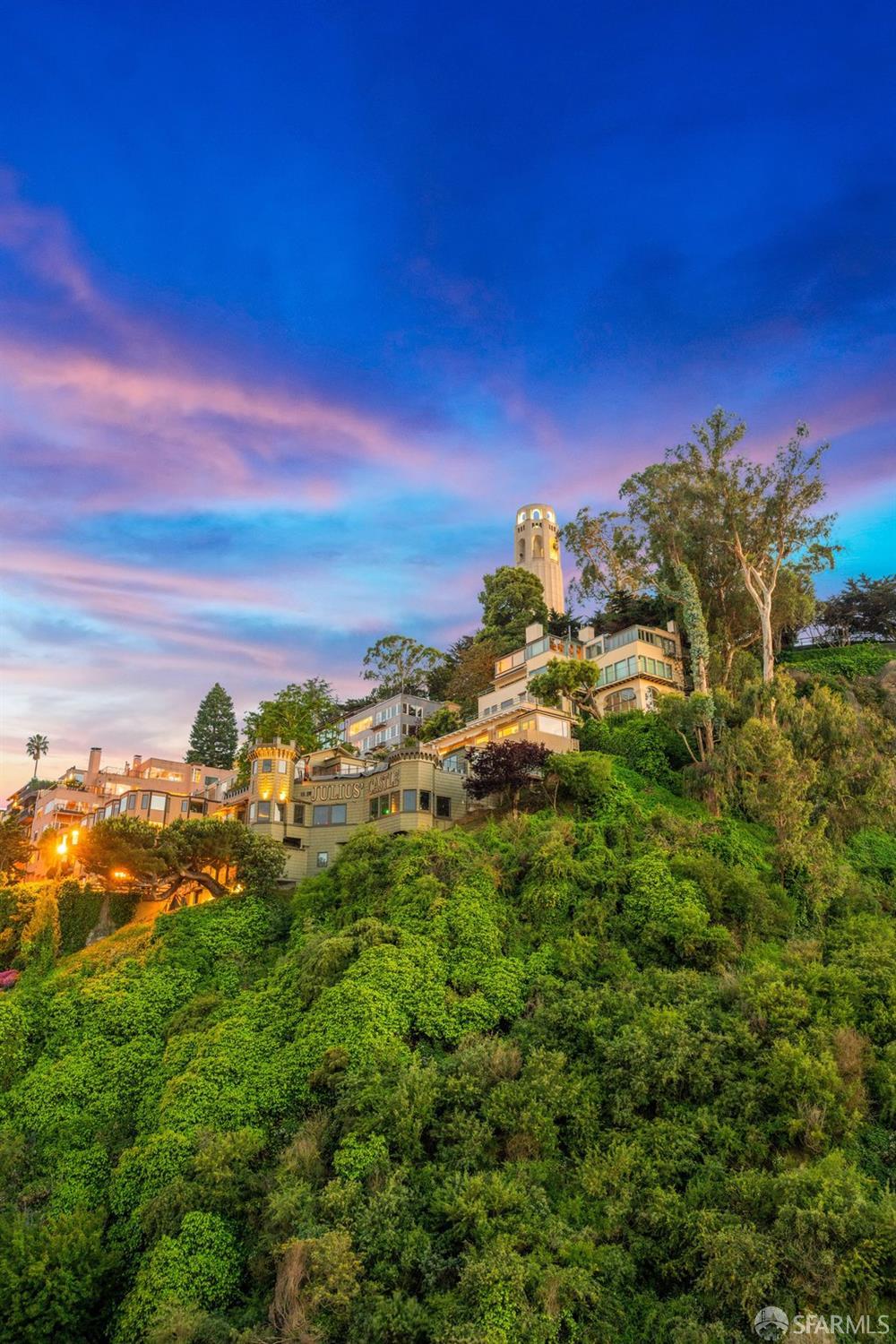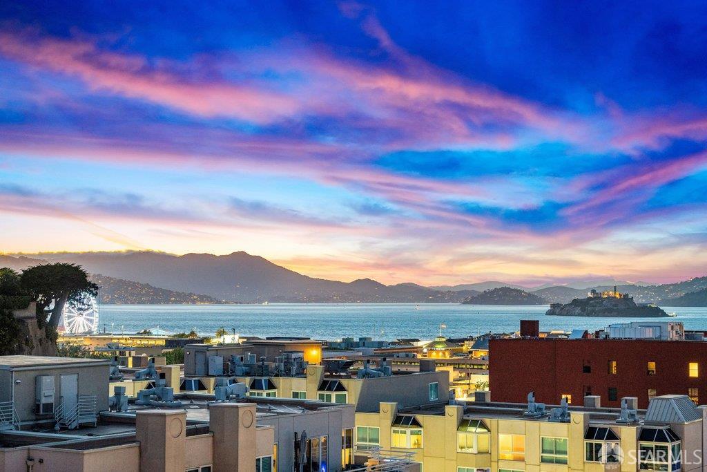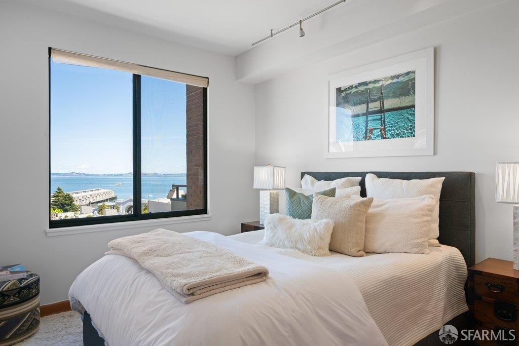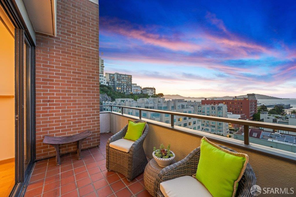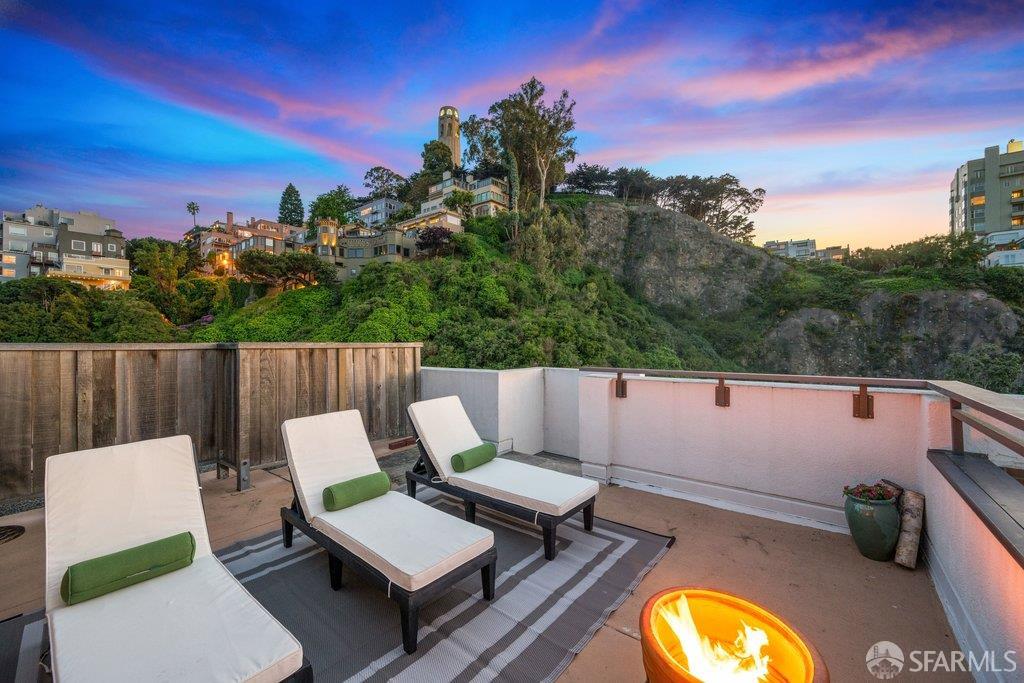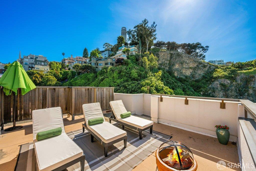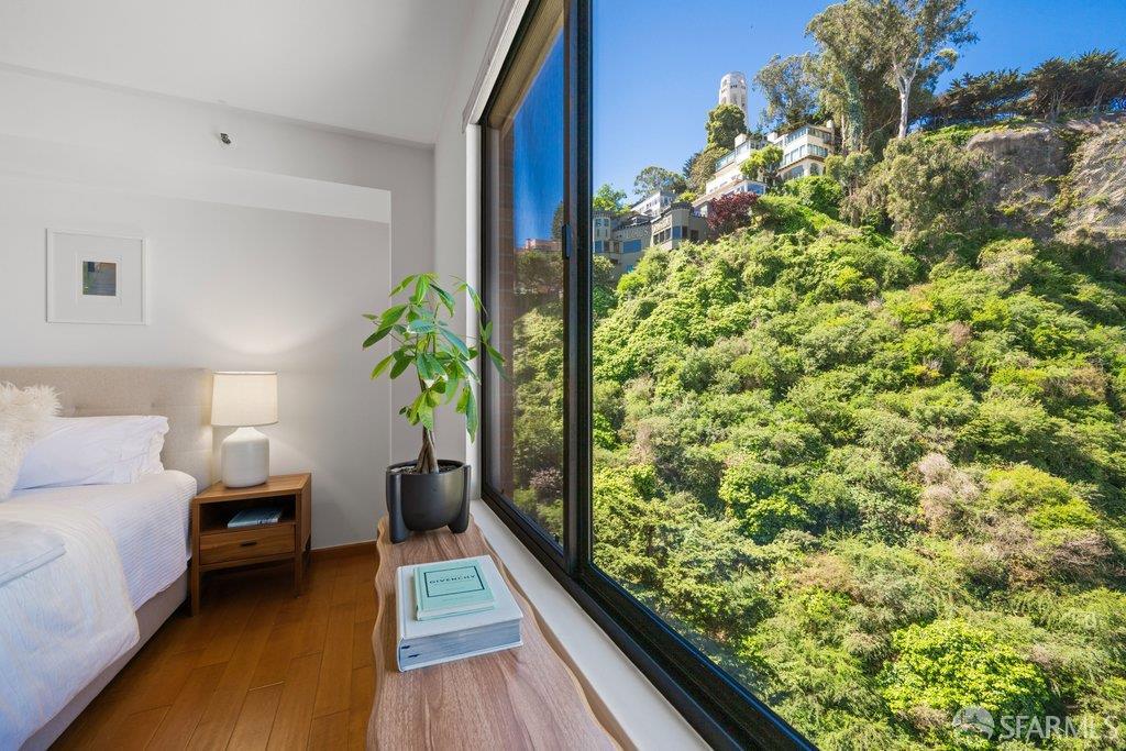 Perched under Telegraph Hill, right under Julius Castle in a beautifully renovated penthouse, this sophisticated residence offers truly spectacular views of the Bay, Alcatraz Island, and Telegraph Hill. Tucked into a hidden enclave along Lower Lombard, this light-filled corner condo combines privacy with iconic scenery. The open-concept kitchen, dining, and living areas are designed to showcase the sweeping vistas, featuring a cozy wood-burning fireplace and seamless access to a spacious deck, perfect for alfresco dining. A washer and dryer are also conveniently included, adding ease to everyday living. Upstairs, another large private roof deck delivers panoramic views that capture the essence of San Francisco living. Both bedrooms are thoughtfully positioned on opposite corners for maximum privacy, each with its own en-suite bath. Residents of 101 Lombard enjoy an exceptional collection of amenities, including a stunning heated pool, Chacuzzi, 24-hour doorman and security, onsite property management, a private library, and an inviting community room, all set amidst the lush, serene surroundings of Telegraph Hill. Life at 101 Lombard feels effortlessly luxurious. Imagine lounging poolside with a great book, soaking in the calm, spa-like atmosphere, or unwinding on your own private deck, an exclusive retreat where you can take in breathtaking views of the city skyline and the sparkling bay. Don’t miss the beautiful garden walk with beautiful Redwood trees that belongs to 101 Lombard hidden in the back of the property. This is elevated living at its finest. Ideally located in one of the city’s sunniest pockets, this home boasts a Walk Score of 99, placing the best of San Francisco right at your doorstep. Self managed by 101 Lombard Condo assoc Hoa Dues are 1750 a month they include Water, Cable, 24 hour front door Service, Janitorial, Window Washing twice a year, ON site management and staff, including janitorial and Chief building Engineer, upkeep of gardens, landscape, pool and spa