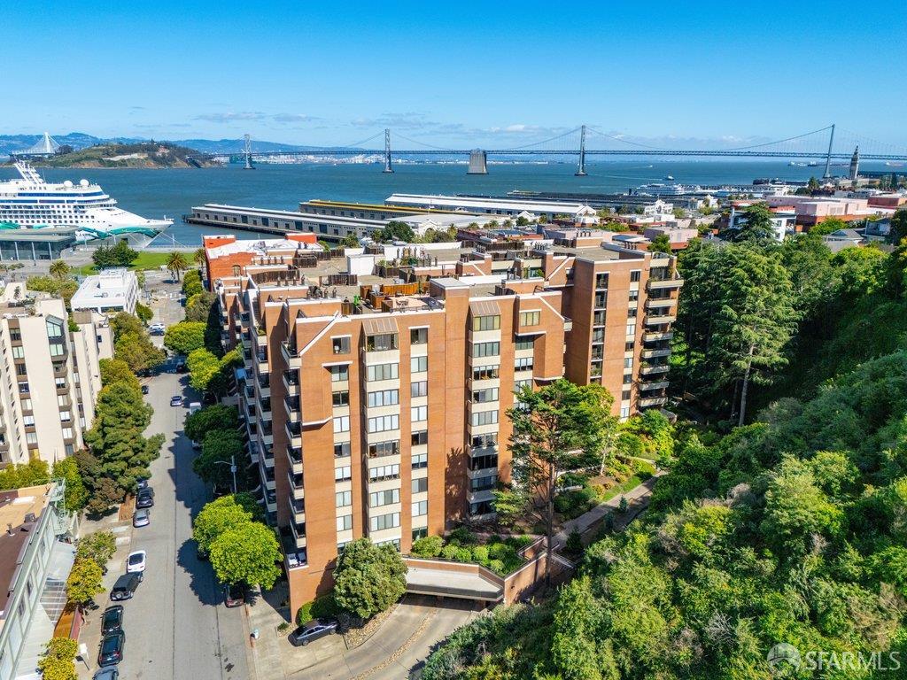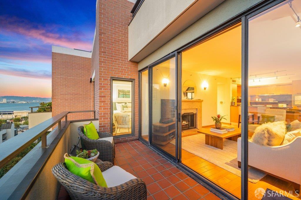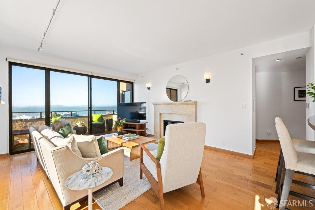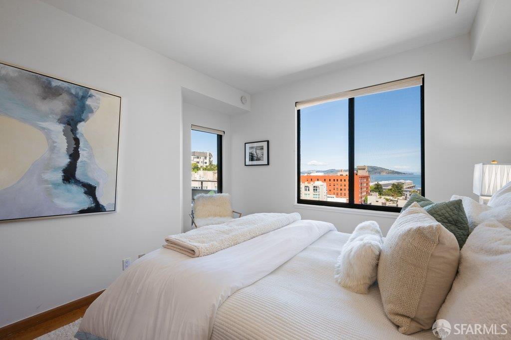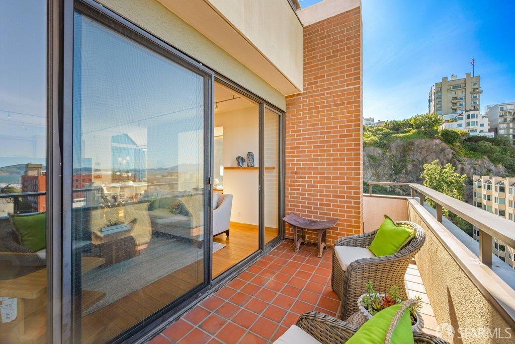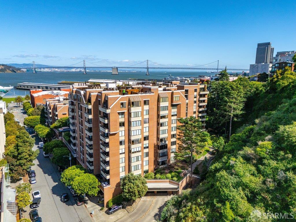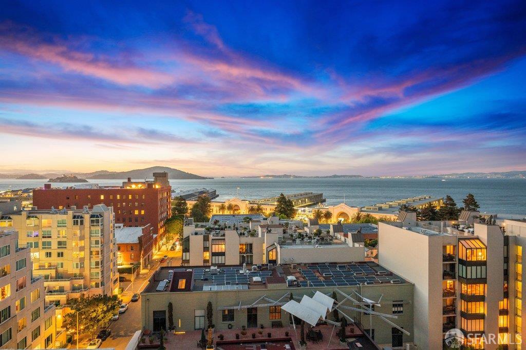 Perched under Telegraph Hill, right under Julius Castle in a beautifully renovated penthouse, this sophisticated residence offers truly spectacular views of the Bay, Alcatraz Island, and Telegraph Hill. Tucked into a hidden enclave along Lower Lombard, this light-filled corner condo combines privacy with iconic scenery. The open-concept kitchen, dining, and living areas are designed to showcase the sweeping vistas, featuring a cozy wood-burning fireplace and seamless access to a spacious deck, perfect for alfresco dining. A washer and dryer are also conveniently included, adding ease to everyday living. Upstairs, another large private roof deck delivers panoramic views that capture the essence of San Francisco living. Both bedrooms are thoughtfully positioned on opposite corners for maximum privacy, each with its own en-suite bath. Residents of 101 Lombard enjoy an exceptional collection of amenities, including a stunning heated pool, Chacuzzi, 24-hour doorman and security, onsite property management, a private library, and an inviting community room, all set amidst the lush, serene surroundings of Telegraph Hill. Life at 101 Lombard feels effortlessly luxurious. Imagine lounging poolside with a great book, soaking in the calm, spa-like atmosphere, or unwinding on your own private deck, an exclusive retreat where you can take in breathtaking views of the city skyline and the sparkling bay. Don’t miss the beautiful garden walk with beautiful Redwood trees that belongs to 101 Lombard hidden in the back of the property. This is elevated living at its finest. Ideally located in one of the city’s sunniest pockets, this home boasts a Walk Score of 99, placing the best of San Francisco right at your doorstep. Self managed by 101 Lombard Condo assoc Hoa Dues are 1750 a month they include Water, Cable, 24 hour front door Service, Janitorial, Window Washing twice a year, ON site management and staff, including janitorial and Chief building Engineer, upkeep of gardens, landscape, pool and spa